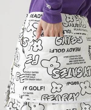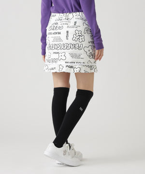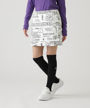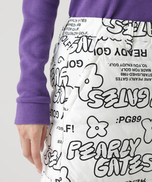 NyストレッチBIGリップストップ中綿ラップ風スカート <ロゴ×花柄>