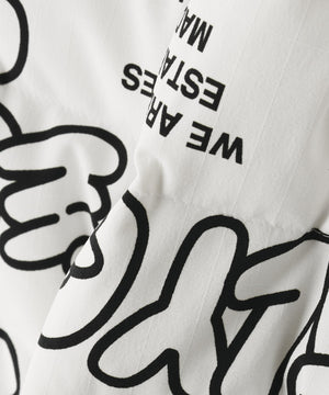 放電テープ使用により快適な着心地を叶えてくれる、ロゴ×花柄 NyストレッチBIGリップストップ中綿ラップ風スカート。