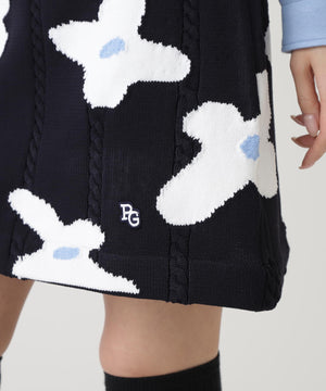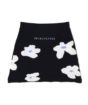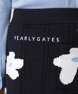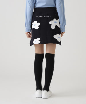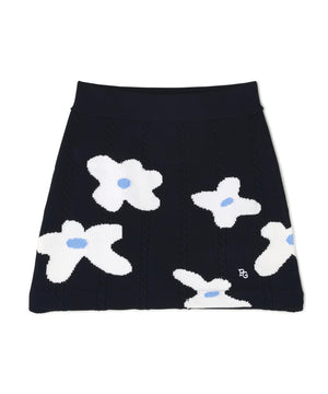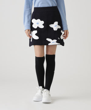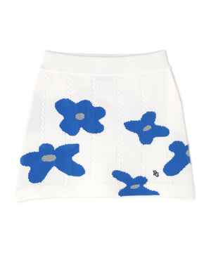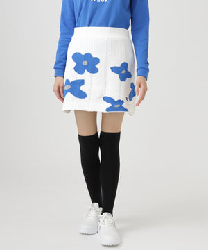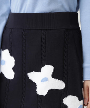 アラン柄×インターシャニットスカート <ランダム編みフラワー柄>