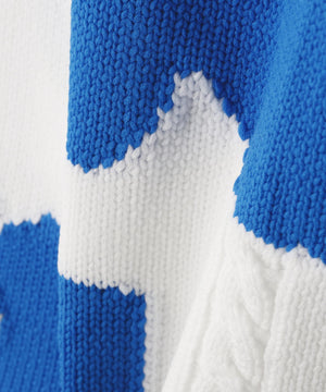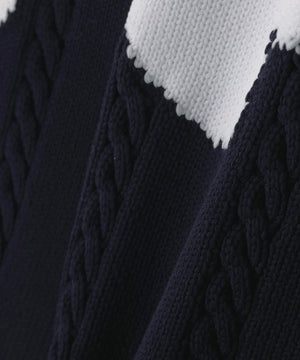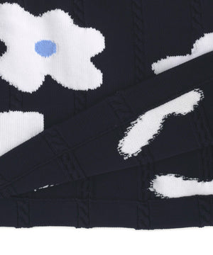 トラッドなアラン柄とひとひねりしたフラワーモチーフをランダムに組み合わせて、柔らかさと暖かさを感じる冬ならではのニュアンスを加えてバランスよく仕上げています。