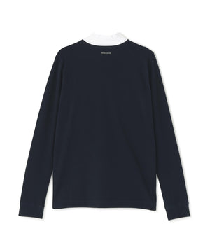 首元のバイカラーデザインや、トラッドな雰囲気を演出できるエンブレムを取り入れたフロントロゴがポイントです。