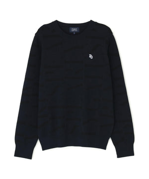 ダブルJQロゴ総柄クルーネックニットプルオーバー