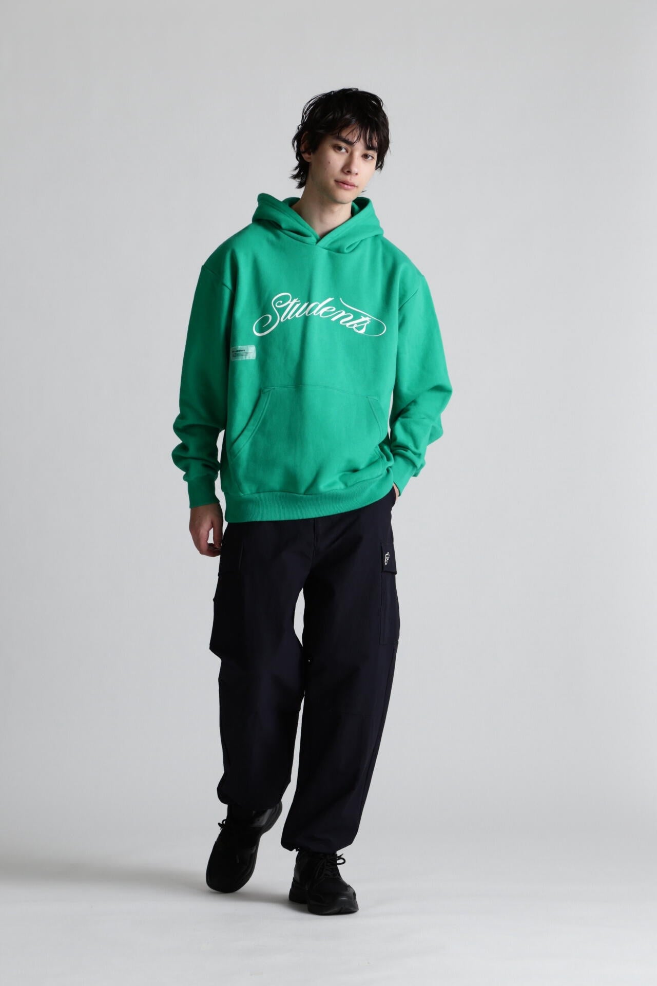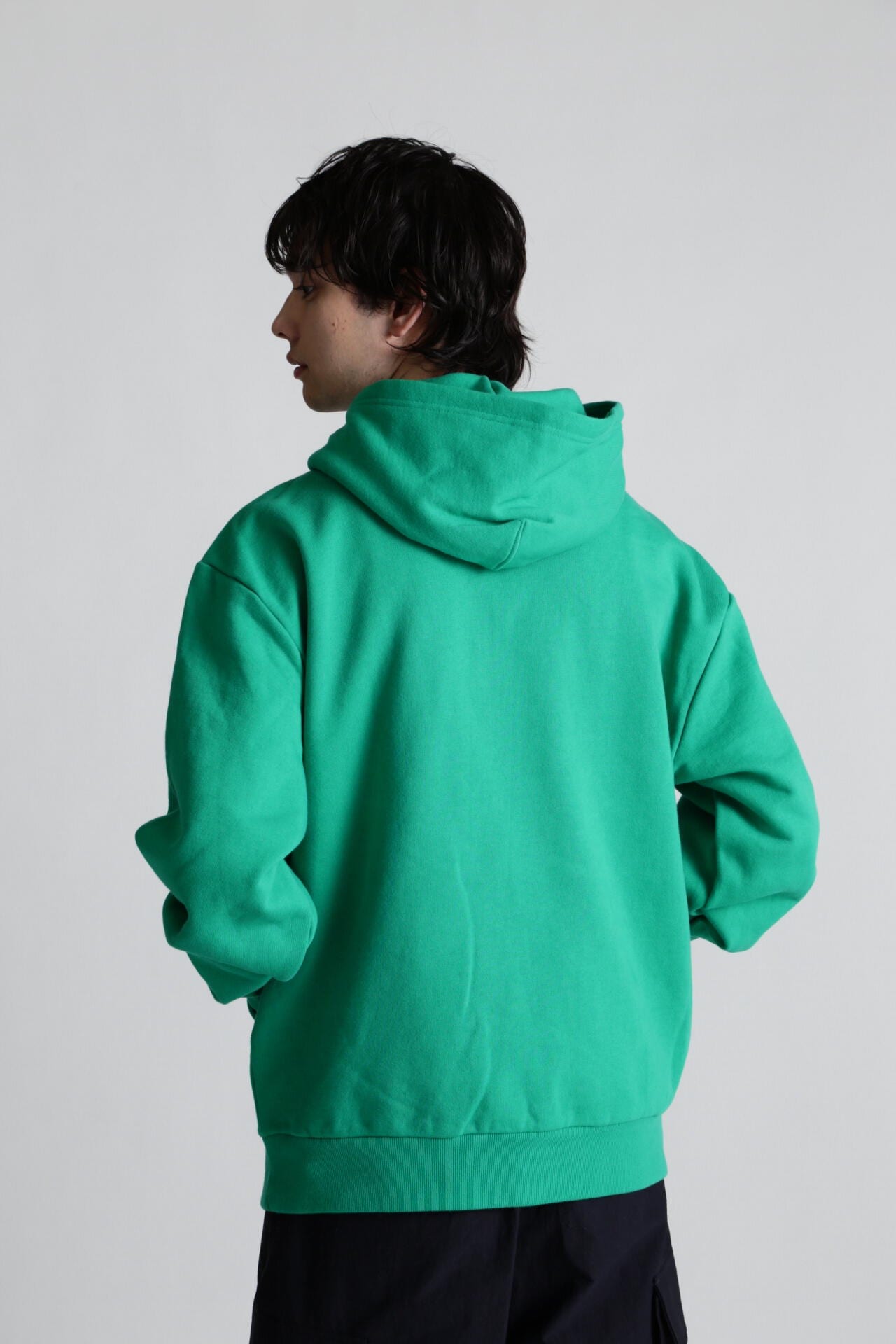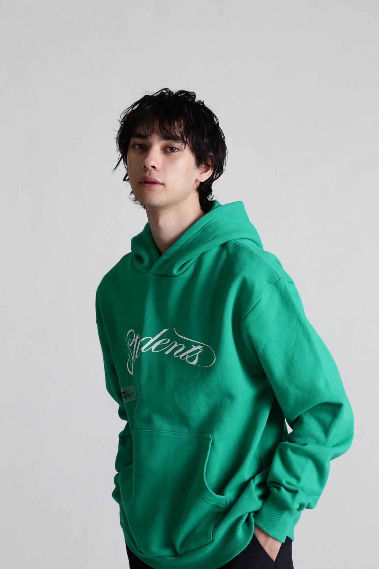 お洒落な筆記体ロゴがデザインされたプルオーバーパーカー。上質なコットン100%を使用したしっかりとした生地感。ややゆとりを持たせた楽な着心地です。