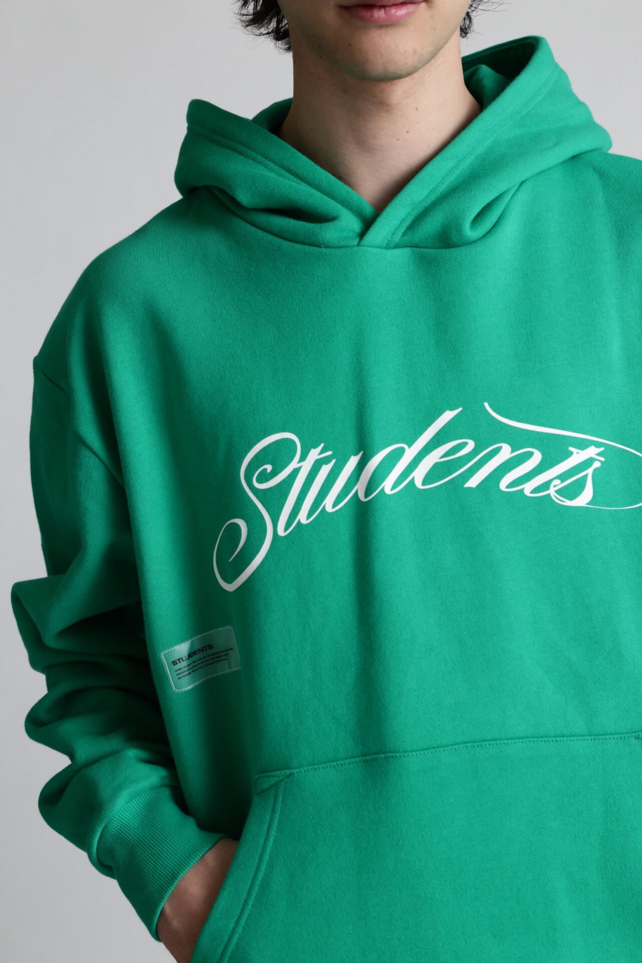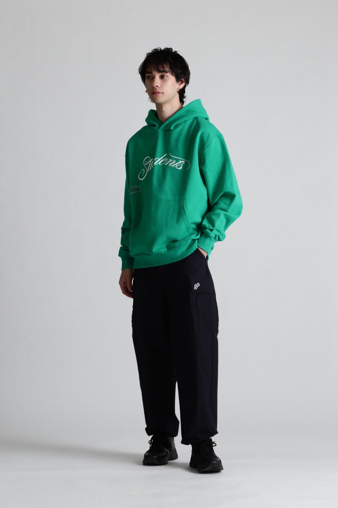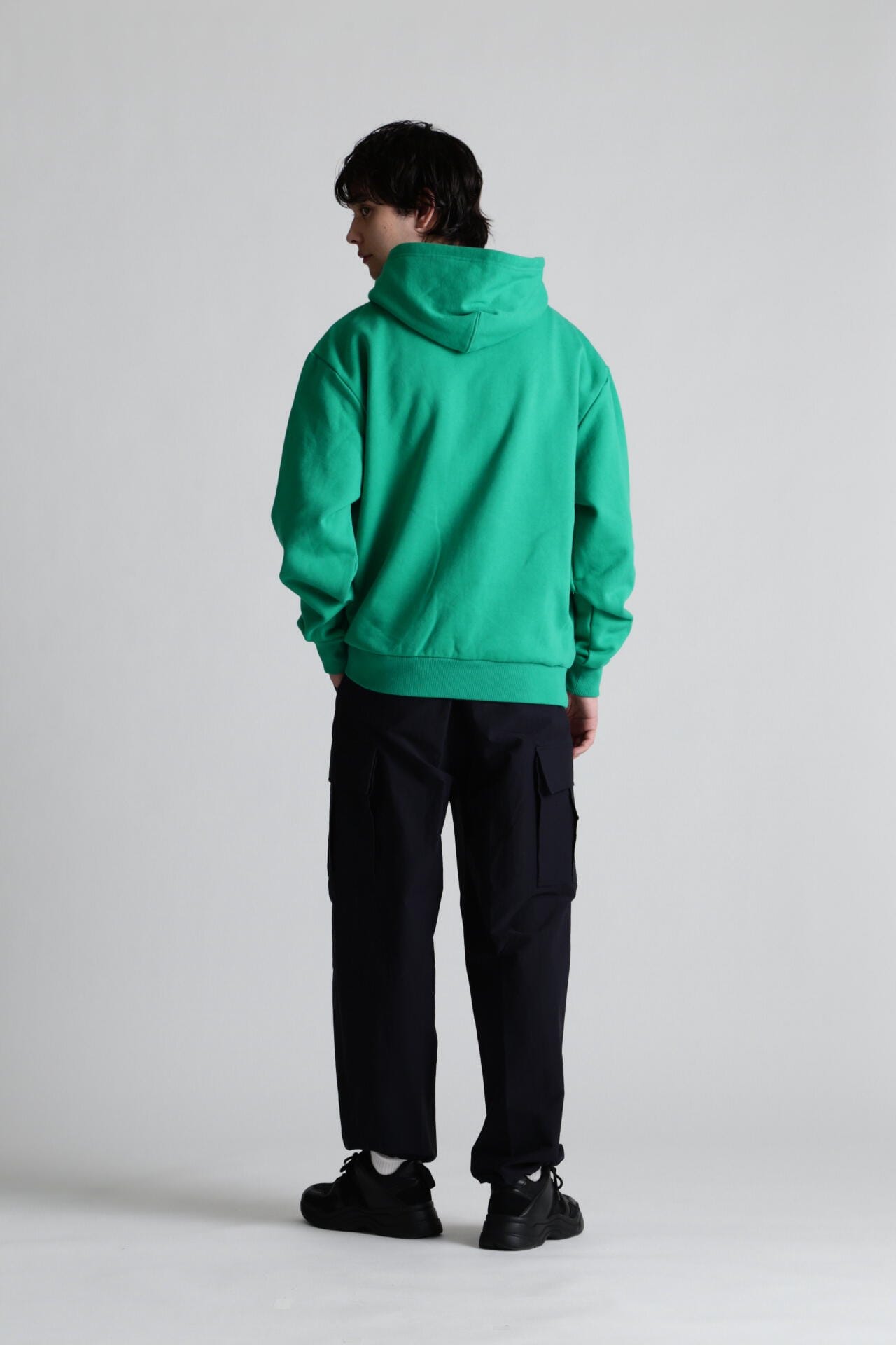 お洒落な筆記体ロゴがデザインされたプルオーバーパーカー。上質なコットン100%を使用したしっかりとした生地感。ややゆとりを持たせた楽な着心地です。