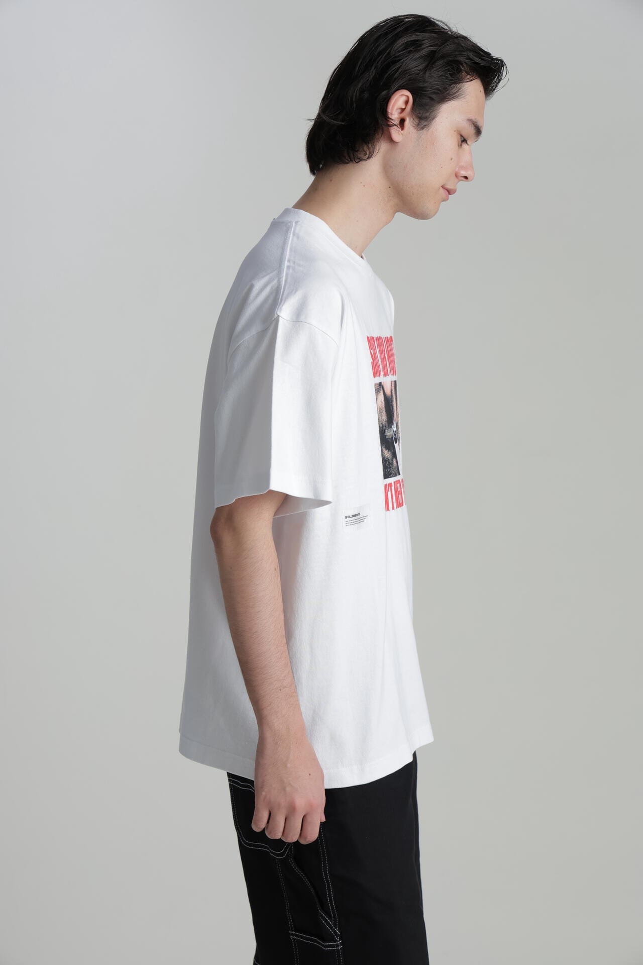 独自の世界観を表現したTシャツ。スタイリングの主役として着こなせる存在感抜群のデザインです。丁度良い厚さの柔らかい生地で、サラリとした肌触りが心地良い快適な着用感。