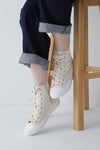 ハイカットにカラーソックスを合わせたり、クロップド丈やロールアップにしたパンツと合わせて、ハイカットを見せる着こなしもオススメです。