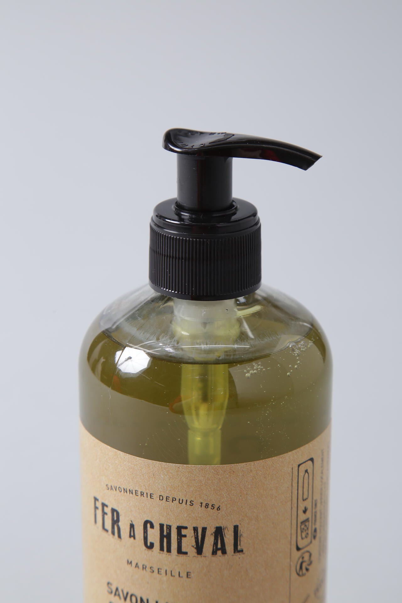 熟年ソープ職人の技のもと大釜で丁寧に作られた、フランスの芸術的な職人技の遺産ともいえるマルセイユソープの液体タイプ。