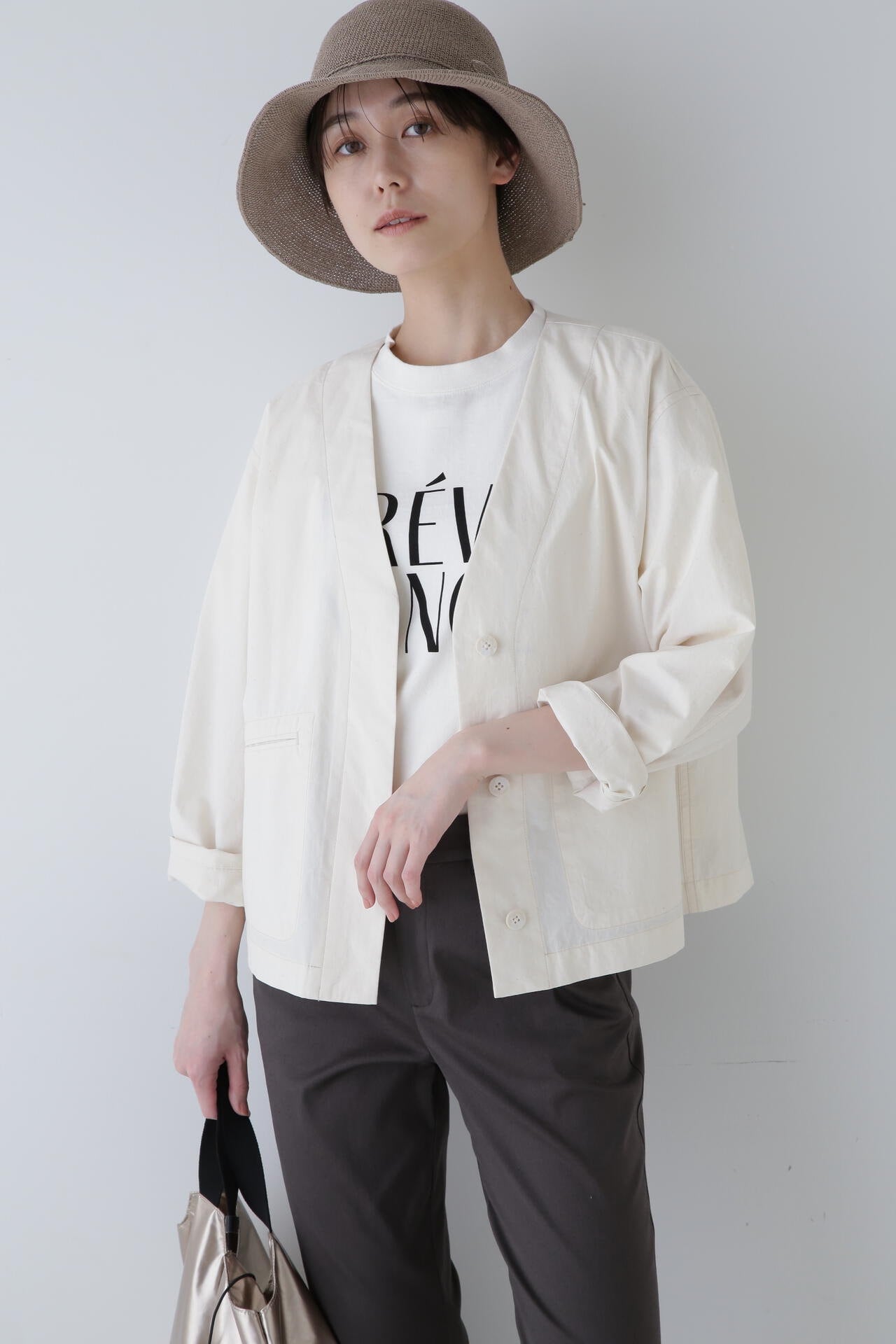 シャツ感覚で羽織ることができ、季節の変わり目に重宝する一枚。素材の風合いを楽しんでいただきたいのでTシャツの上にシンプルに羽織ったスタイリングがおすすめです。