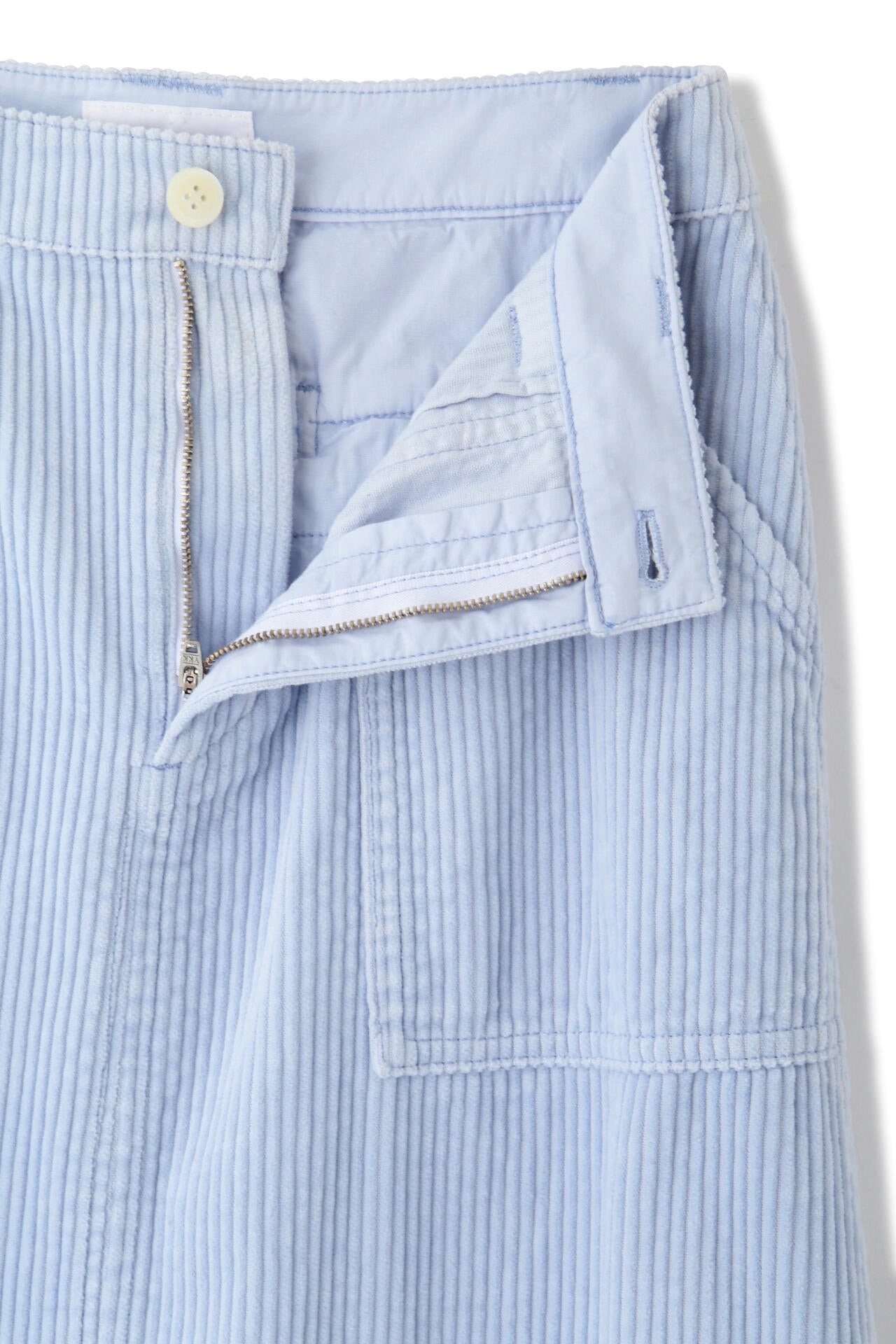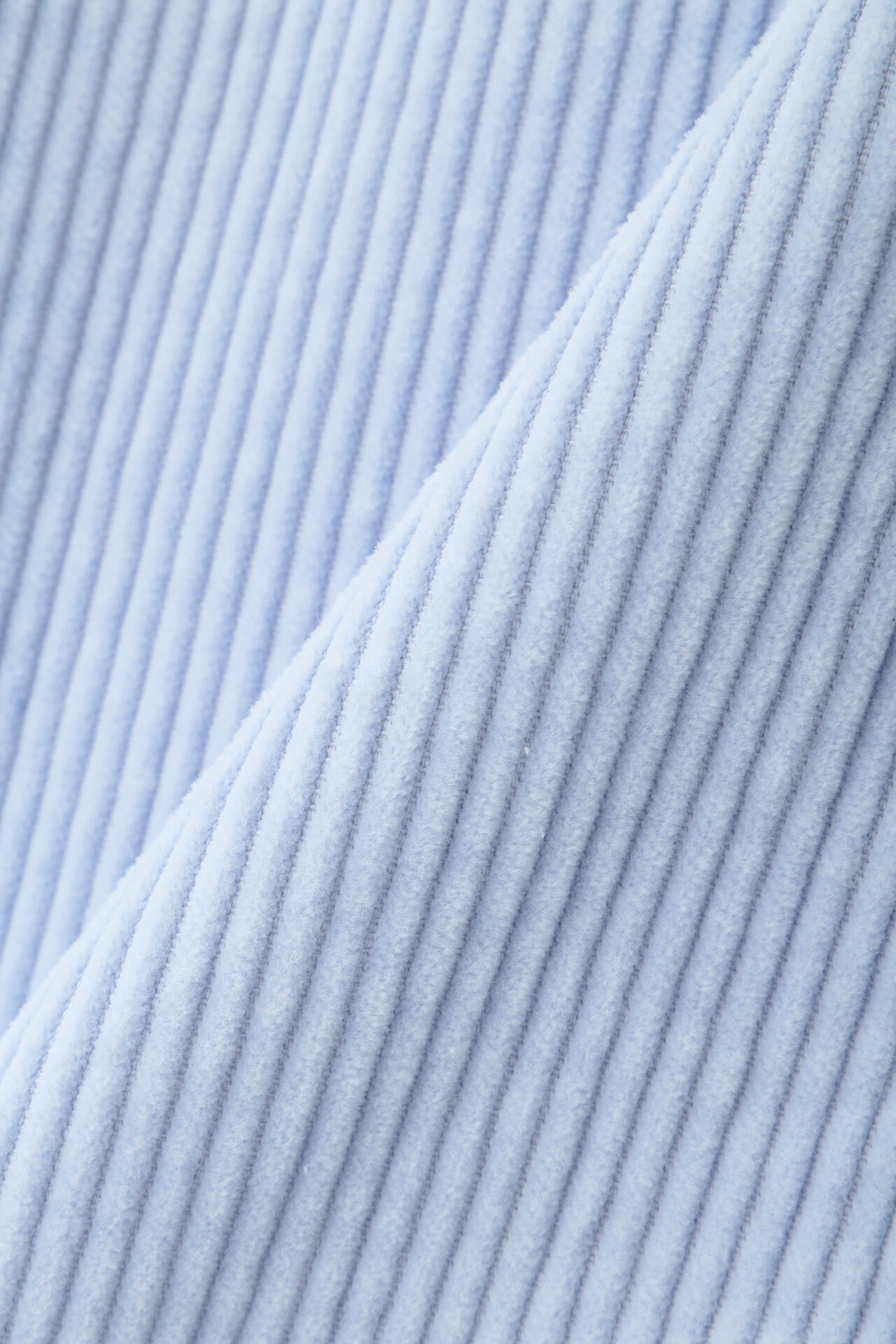 6コールの太畝コーデュロイの素材を製品染めしています。ふわっとした風合いと色合いが独特の雰囲気を演出します。春らしいブルーとライトグレーの2色展開です。