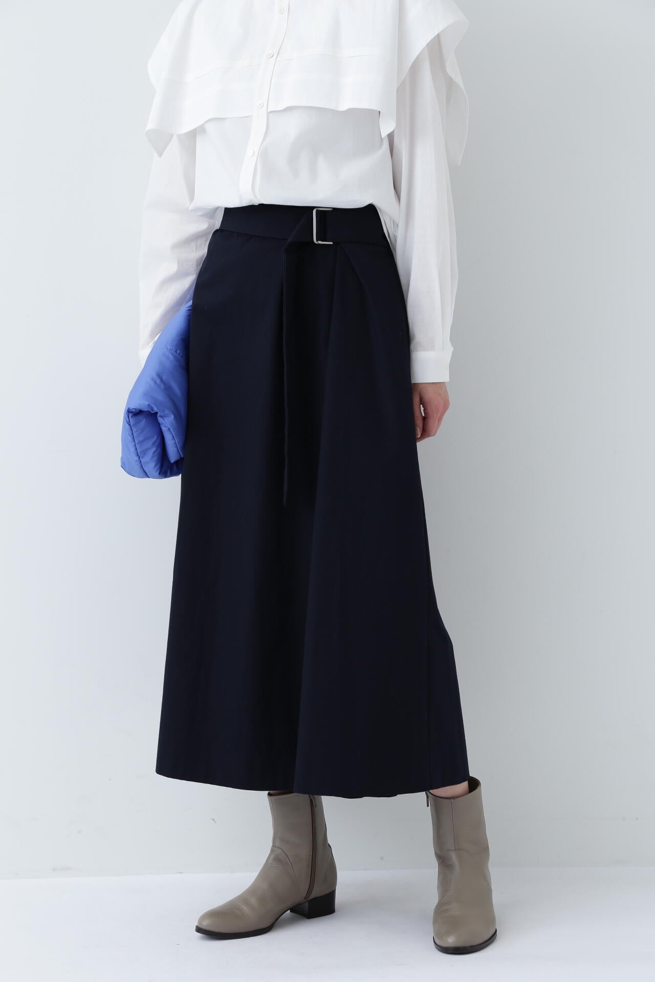 ウエストの共布ベルトがポイントのラップ風スカートです。すっきりとした印象の続きベルト仕様ですが、後ろにゴムを施すことで履き心地にもこだわりました。