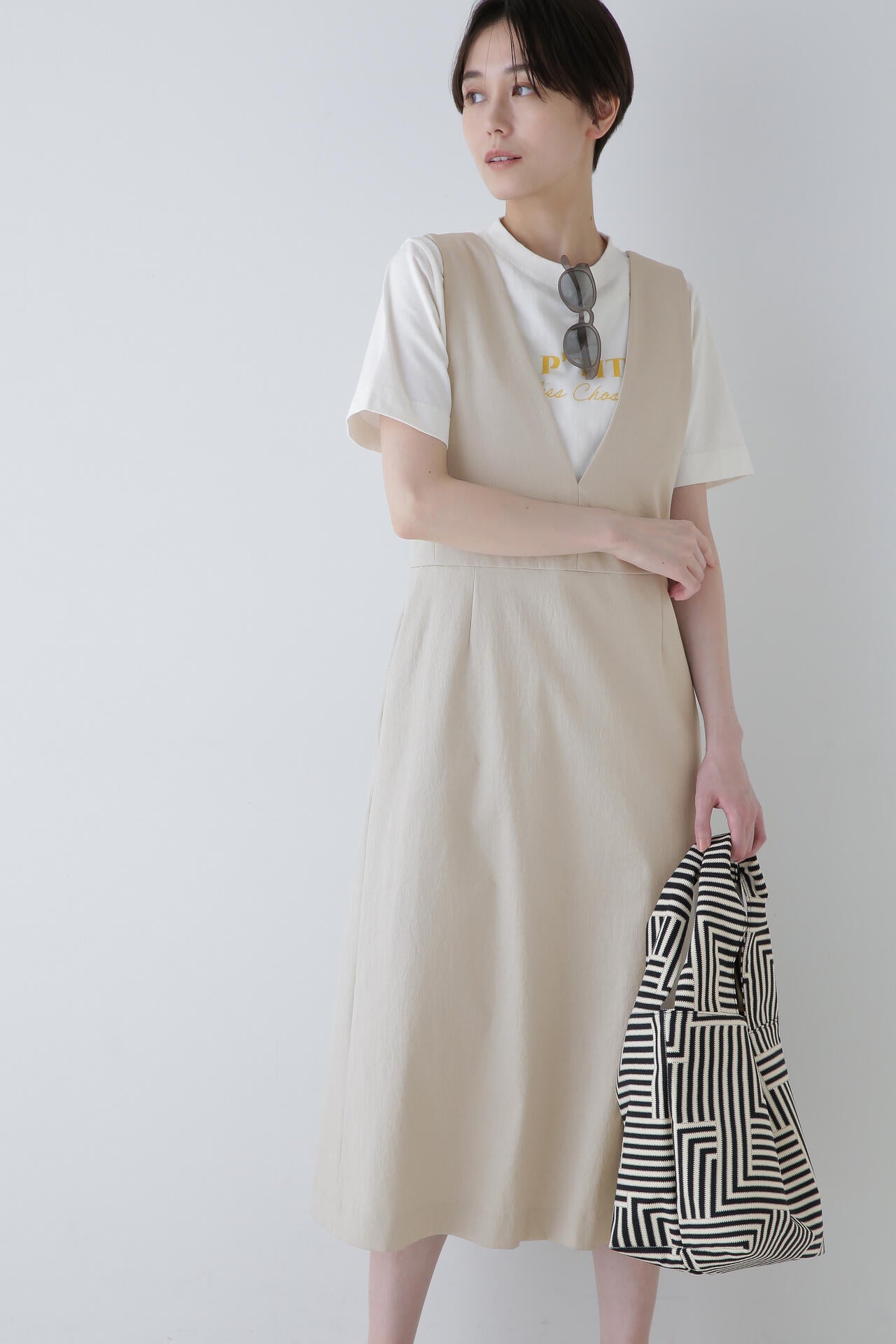きれい目ブラウスとのレイヤードや、暑い季節にはさらっとプリントTシャツなどを合わせたカジュアルな着こなしもおすすめです。