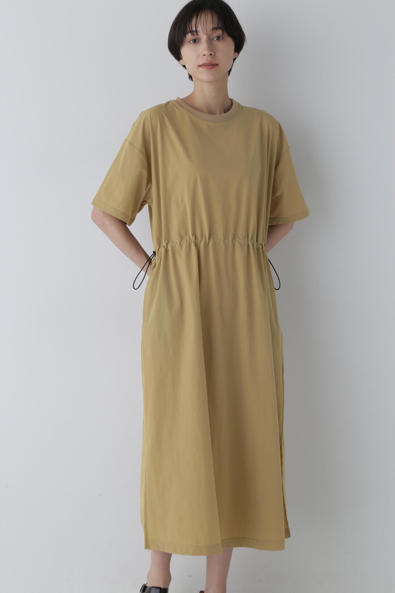 KELTY×human womanコラボのワンピースはさらっと着られる体のラインを拾いすぎないシルエットです。ウエストのスピンドルでボリュームの調整が可能。別注としてスリットの長さをアレンジ、ワッペンをモノトーンに変更、ワッペンの位置も袖口にアレンジしています。