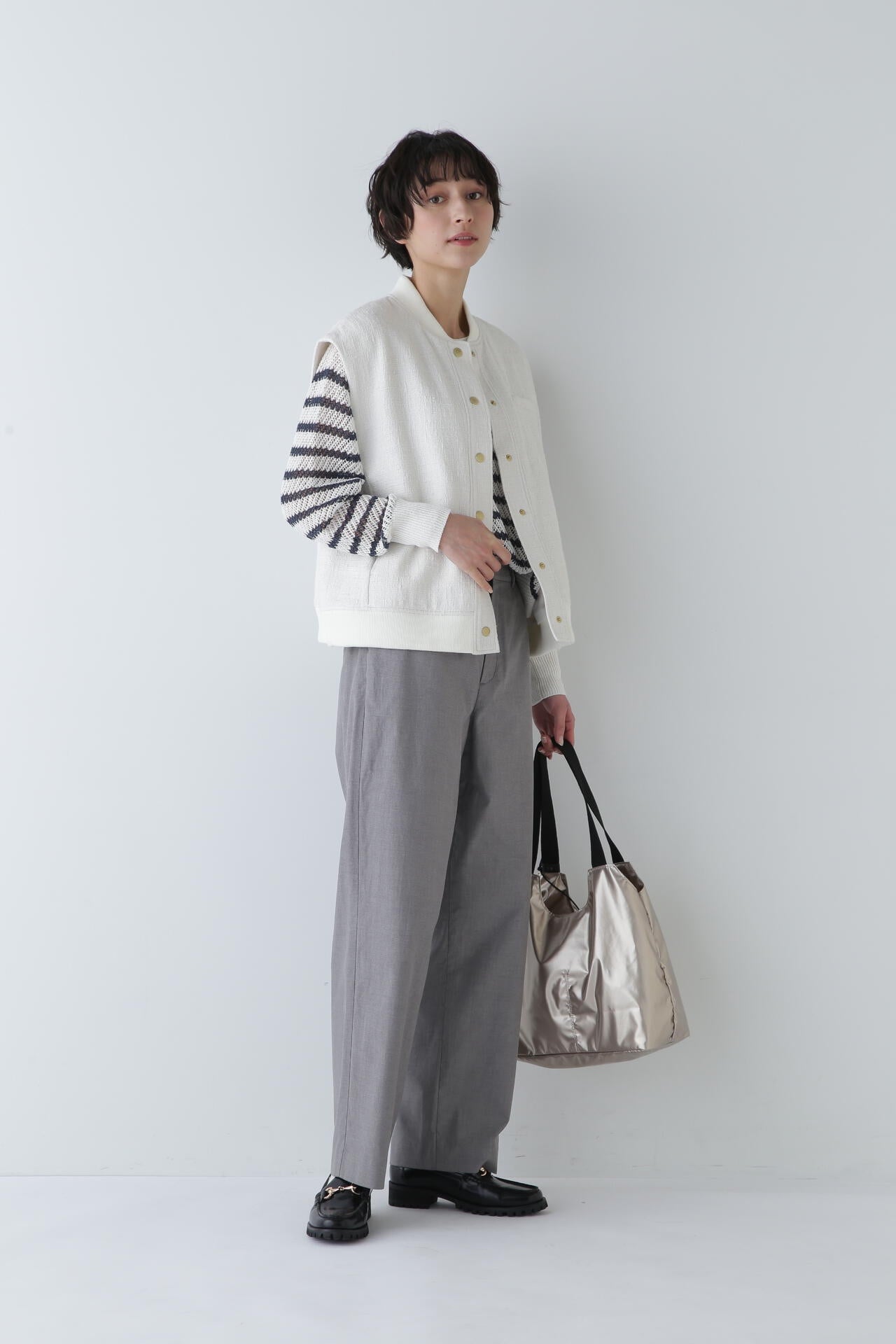 カジュアルになり過ぎないようトレンド感のあるコットン勝ちのツィードを使用しています。