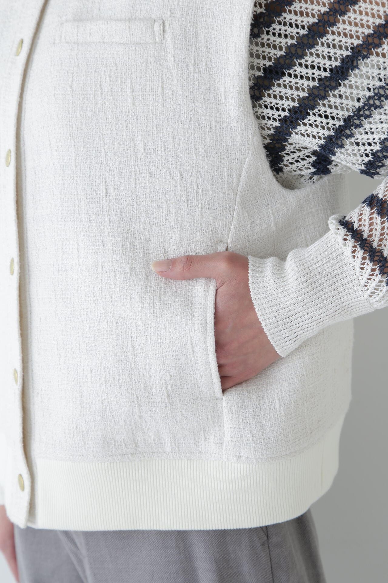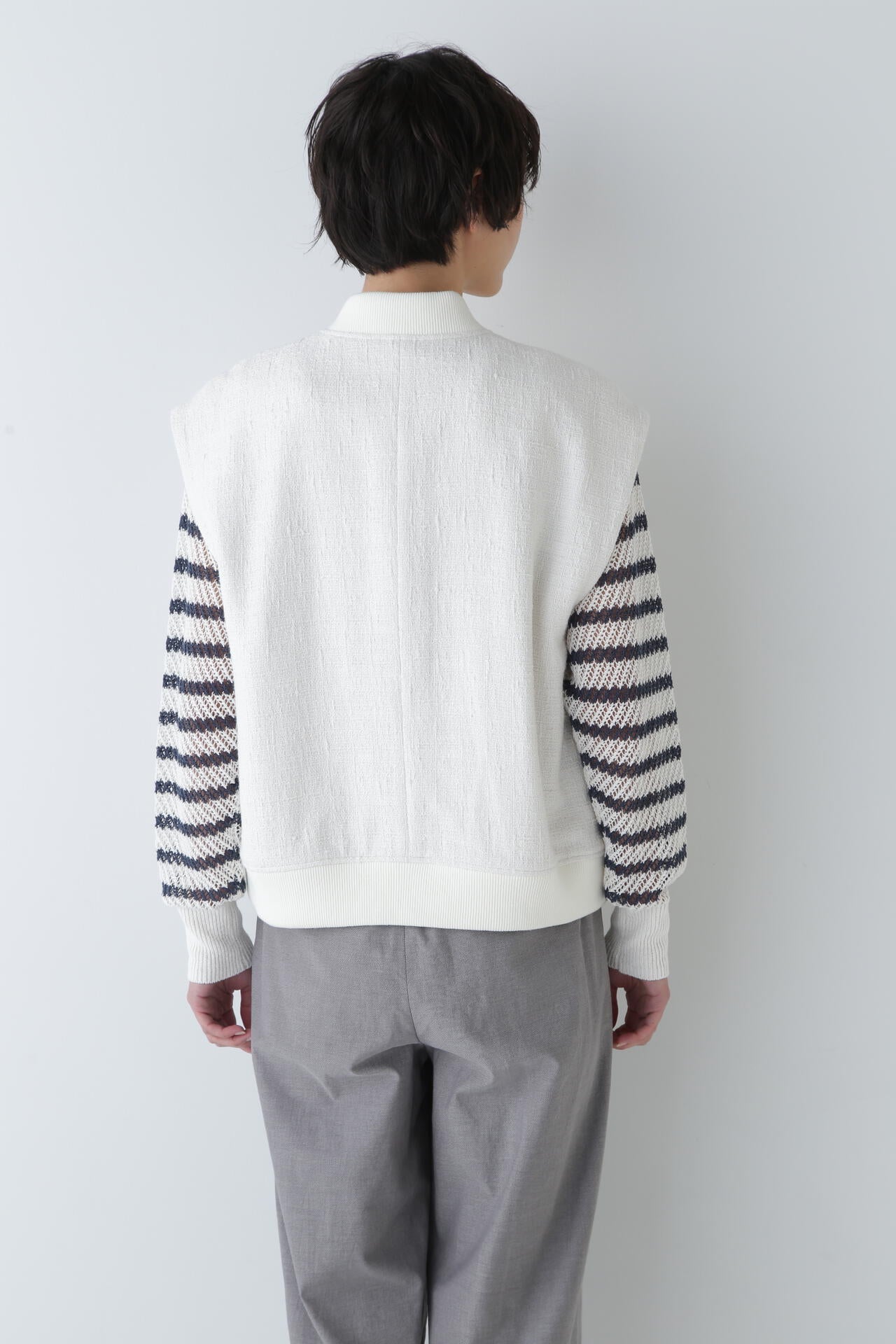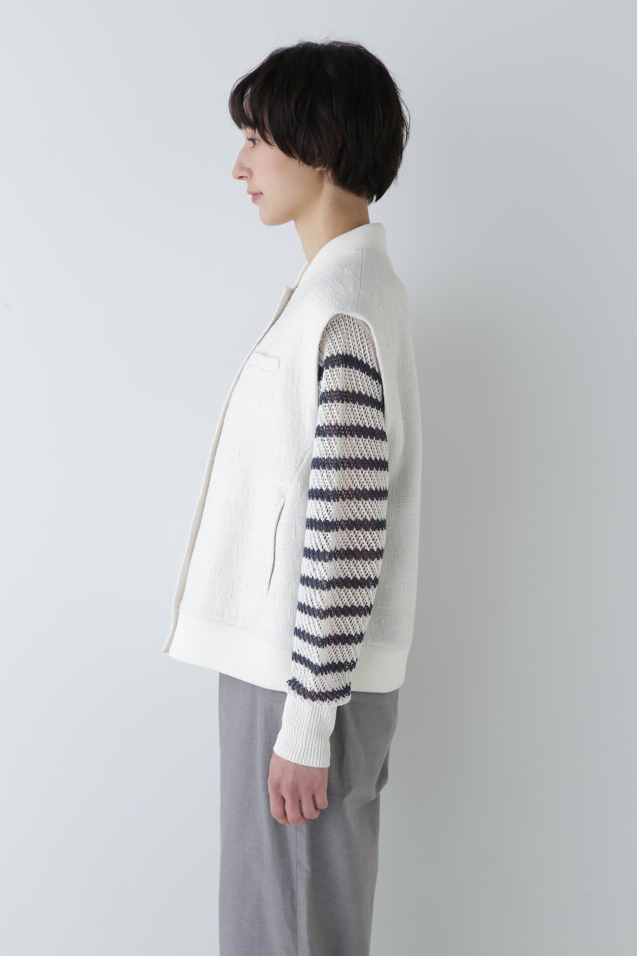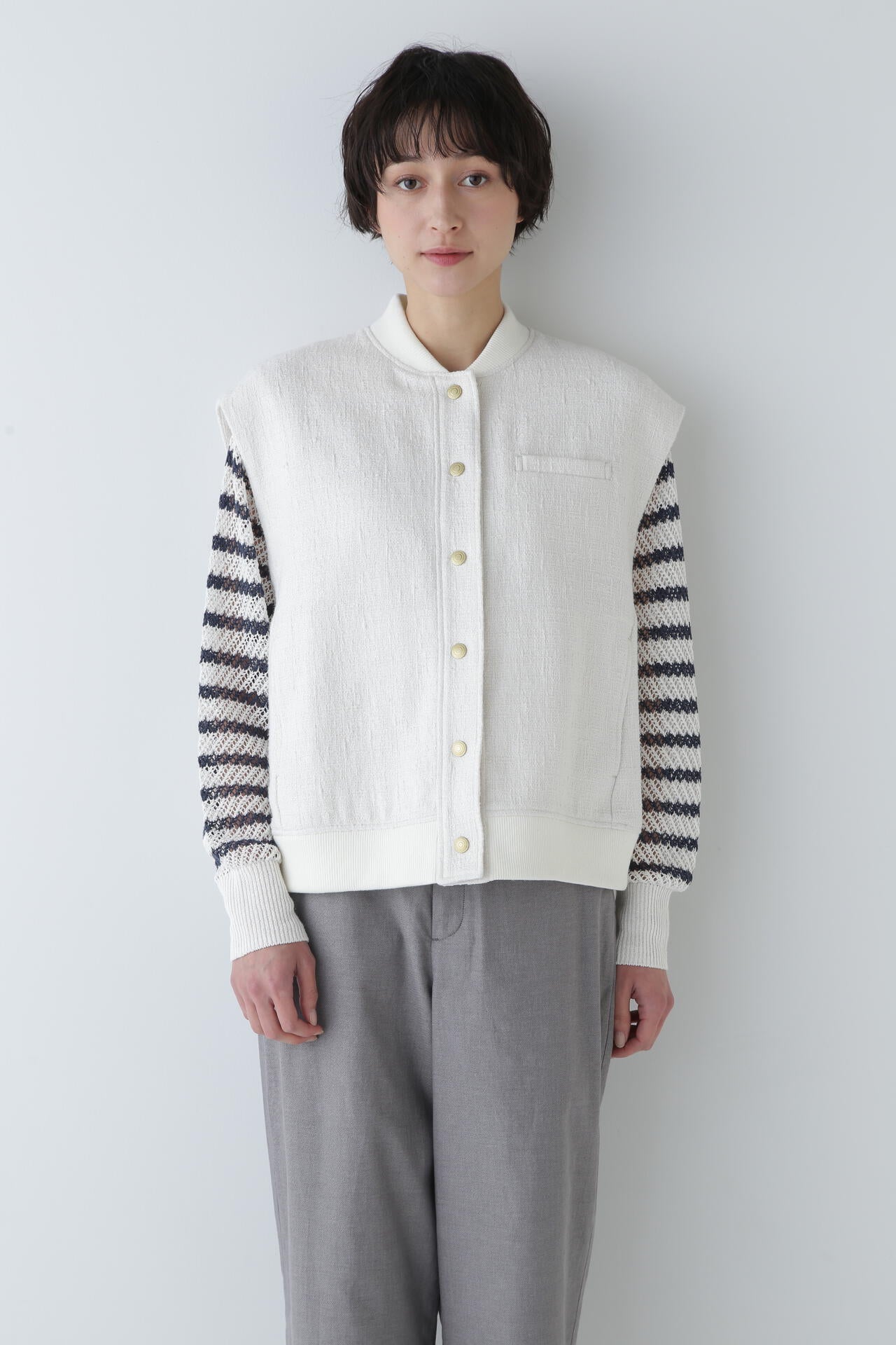 ブルゾンの袖をカットしたようなカジュアルディテールのスポーティーなジレアイテムです。