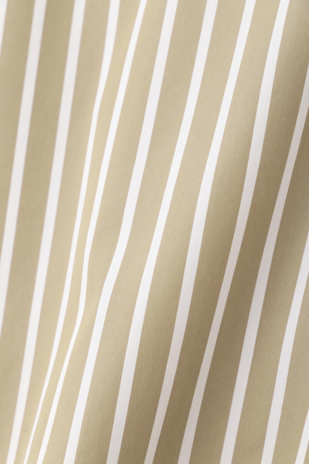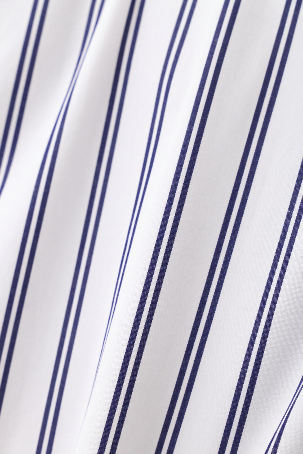ストライプ柄がトラッドな雰囲気を持つアイテムなので、チノパンを合わせたクリーンなカジュアルスタイルがおすすめです。ボタンを留めてプルオーバー風に着たり、ボタンの開け具合でも印象の変化を楽しめます。