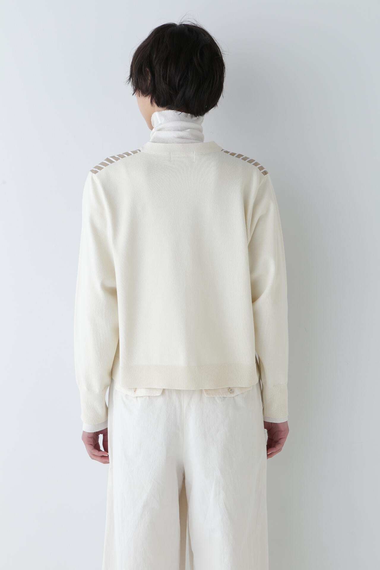 ニットはプレーティングすることで柔らかい風合いですが厚みもありインナーをひろわない肉感で、マットな質感も特徴です。布帛はしっかり目のシャツ生地を使用しています。3色ごとに組織も違い、風合いが異なります。