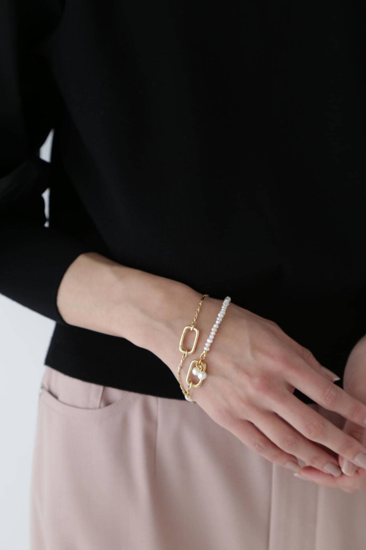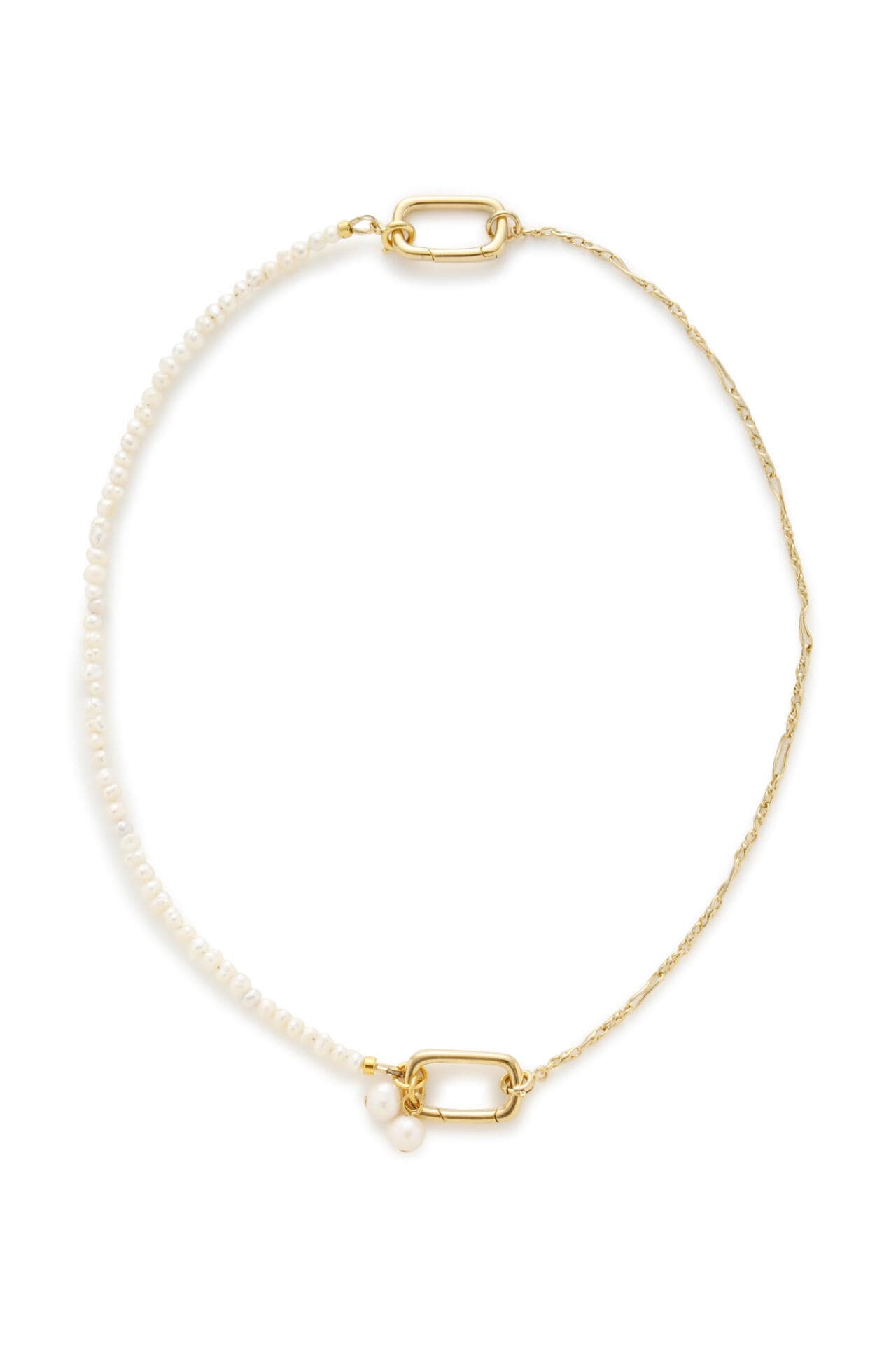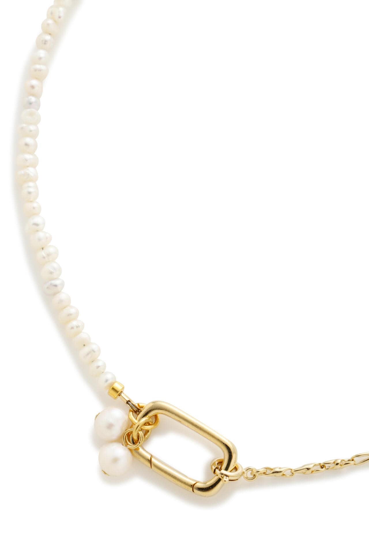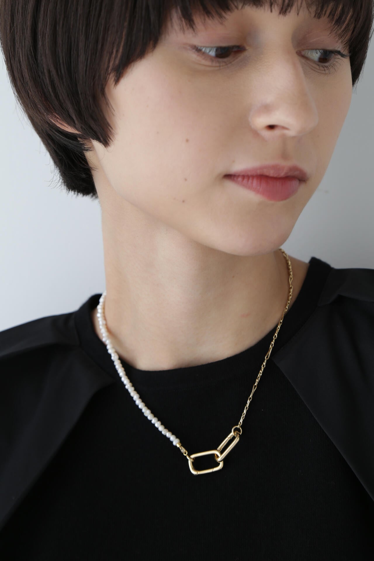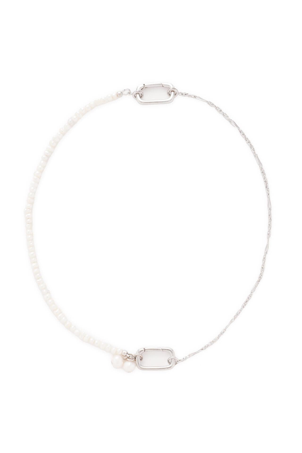 パール・チェーンの2つパーツからなるネックレスは全てが取り外し可能。ネックレスの長さやデザインを変化させることができ、様々なスタイルに合わせて、アレンジすることができます。ブレスレットとしても着用可能。