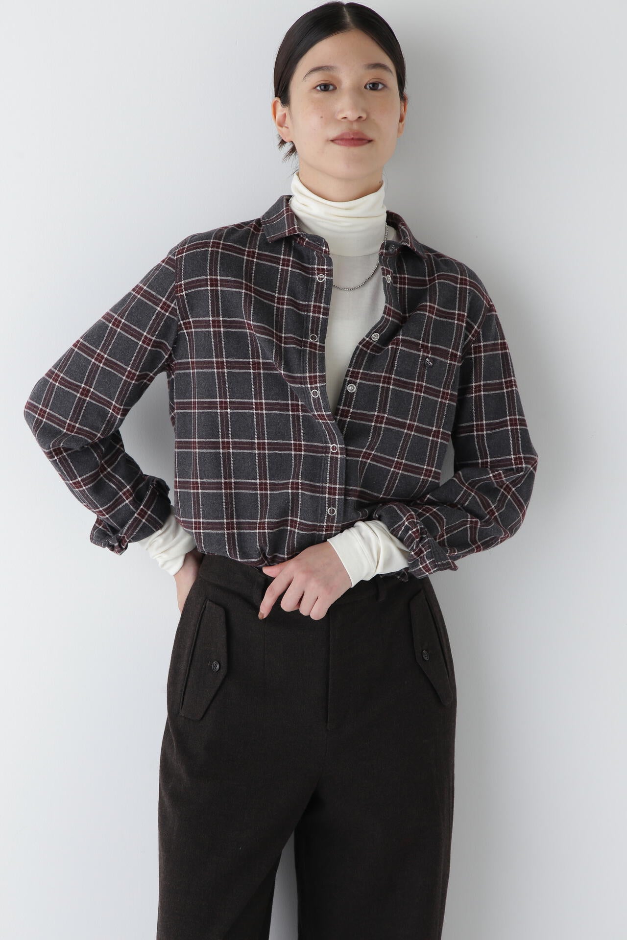 human woman定番のオリジナルコットンシャギーチェックです。今期は変形ウィンドペンで表現しており、ネイビーと今年らしいトップグレーの2色展開です。