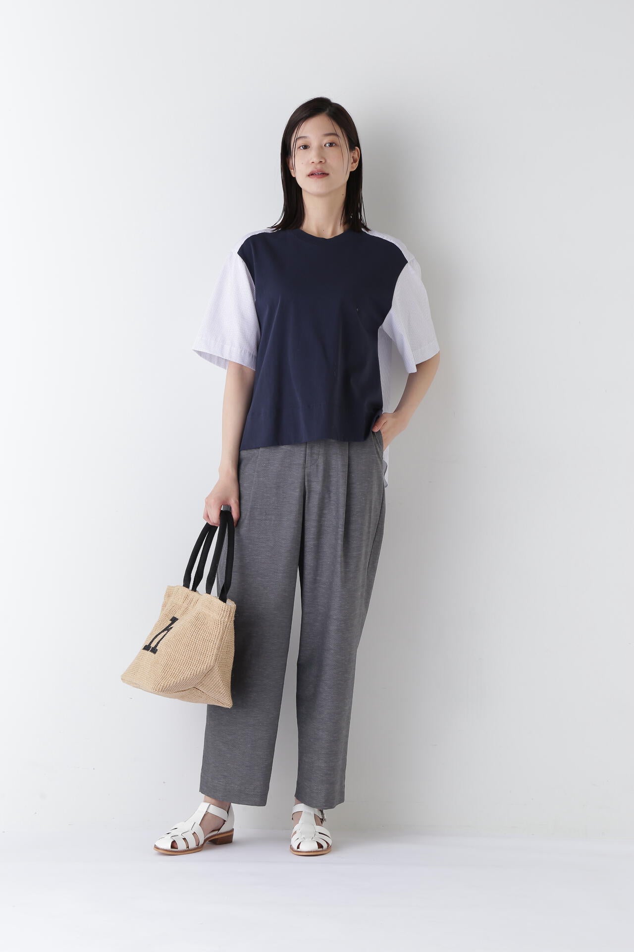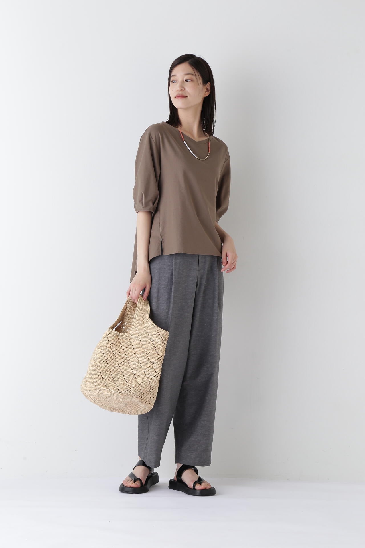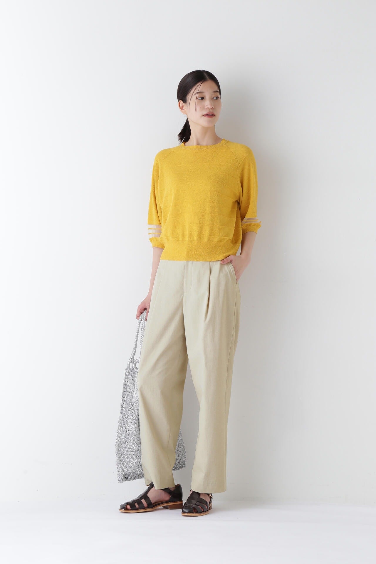 薄いですが透けにくく、清涼感のある夏にピッタリの素材です。