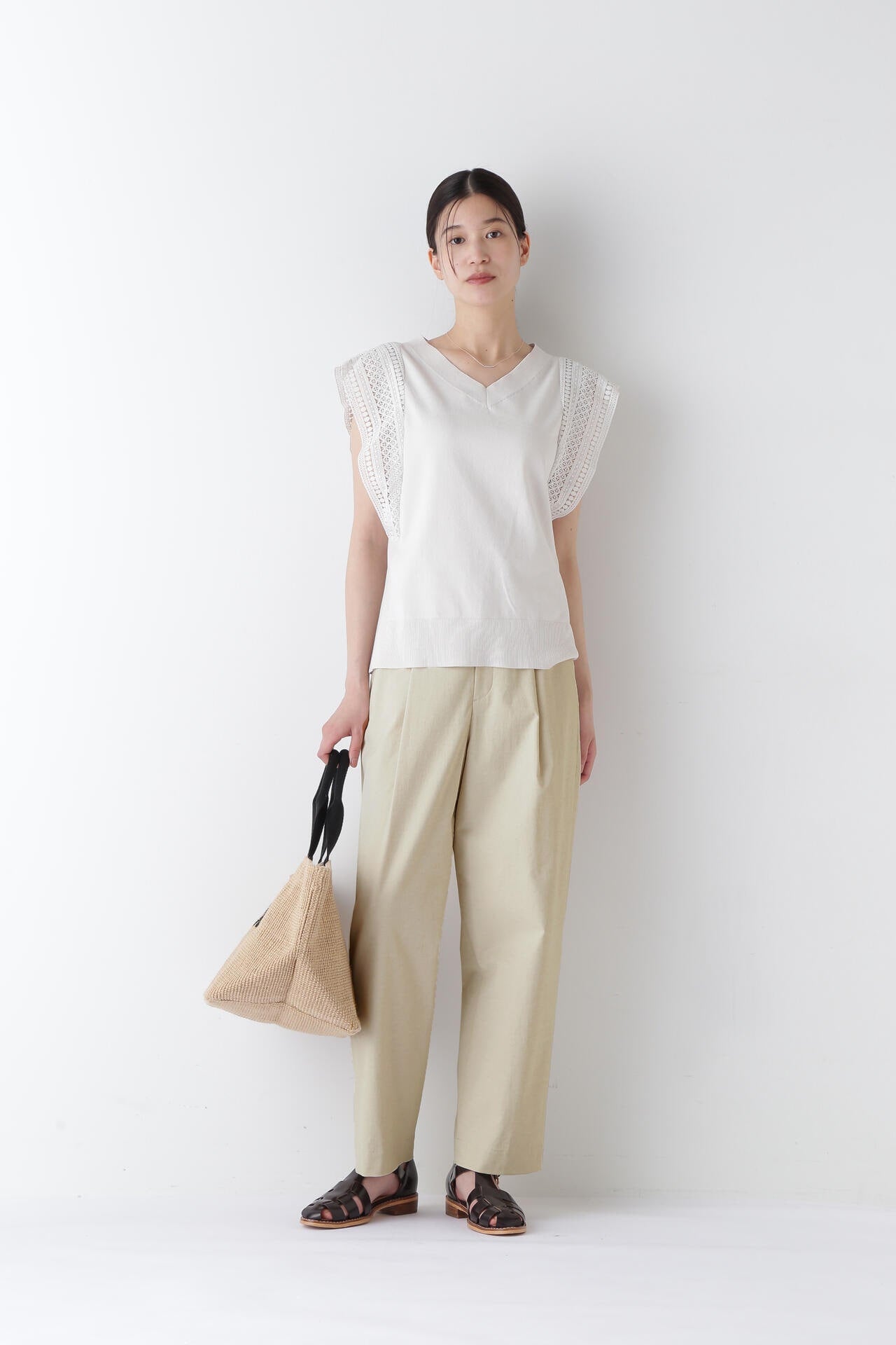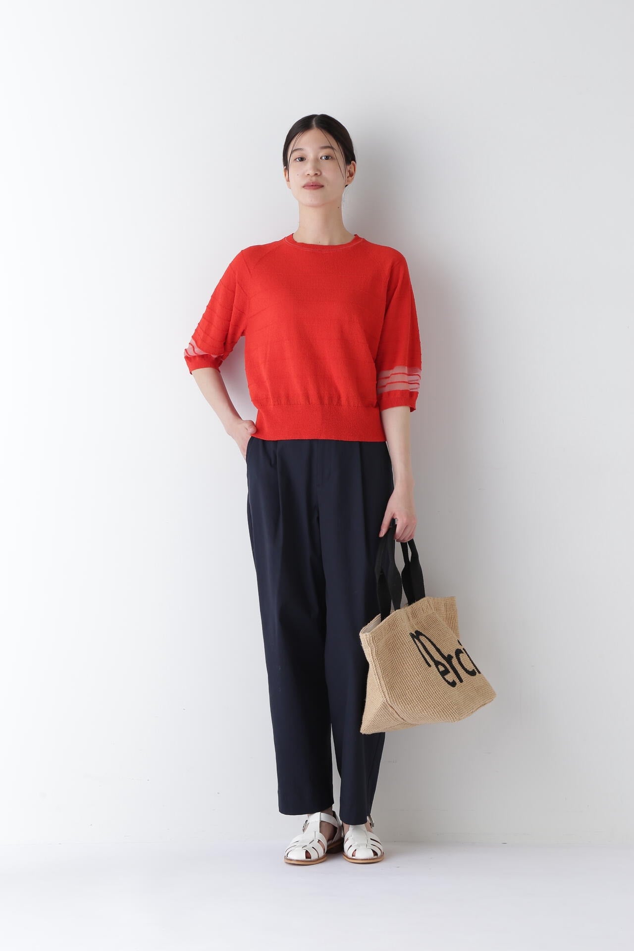 Tシャツを合わせたリラクシーな着こなしから、ブラウスを合わせたクリーンなスタイルまで幅広く活躍する一枚。同時期展開のモロッカンプリントのブラウスやレーストップスとのスタイリングもおすすめです。