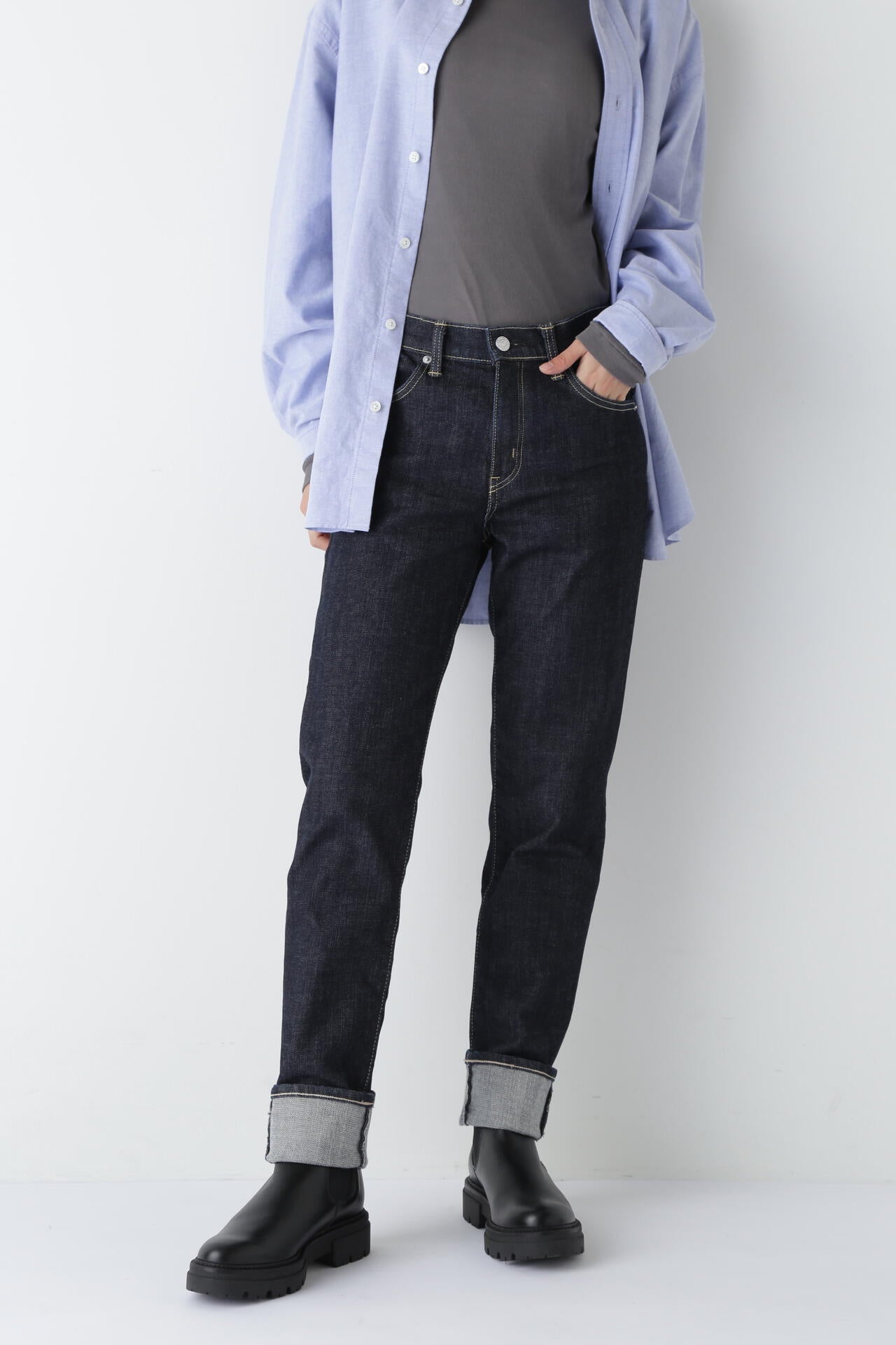 EDWIN503とのコラボアイテムです。1997年にスタートした503ジーンズ。きれい目に見えるインディゴカラーとストレートフィットシルエットにこだわった日本マーケットに向けて作られたこだわりの1本です。ポケット袋布のストライプとサイズカードのデザインを別注しています。更にS(26)、SS(25)サイズはhuman womanでしか展開しないサイズです。