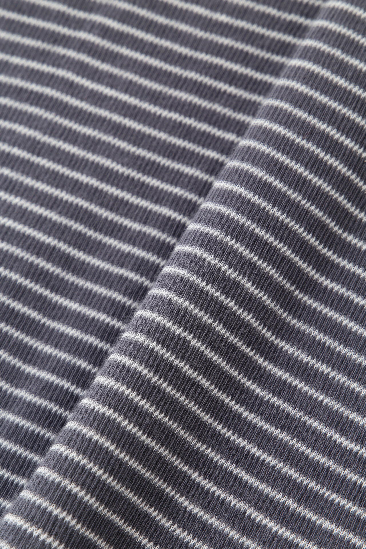 細番手の糸で編み上げたシアーテレコの素材は着用感がとても軽くてストレスフリーな着心地です。新色のライトグレー、チャコール、レッド、ブルーに加え、今期はボーダーも2色新色で入れています。
