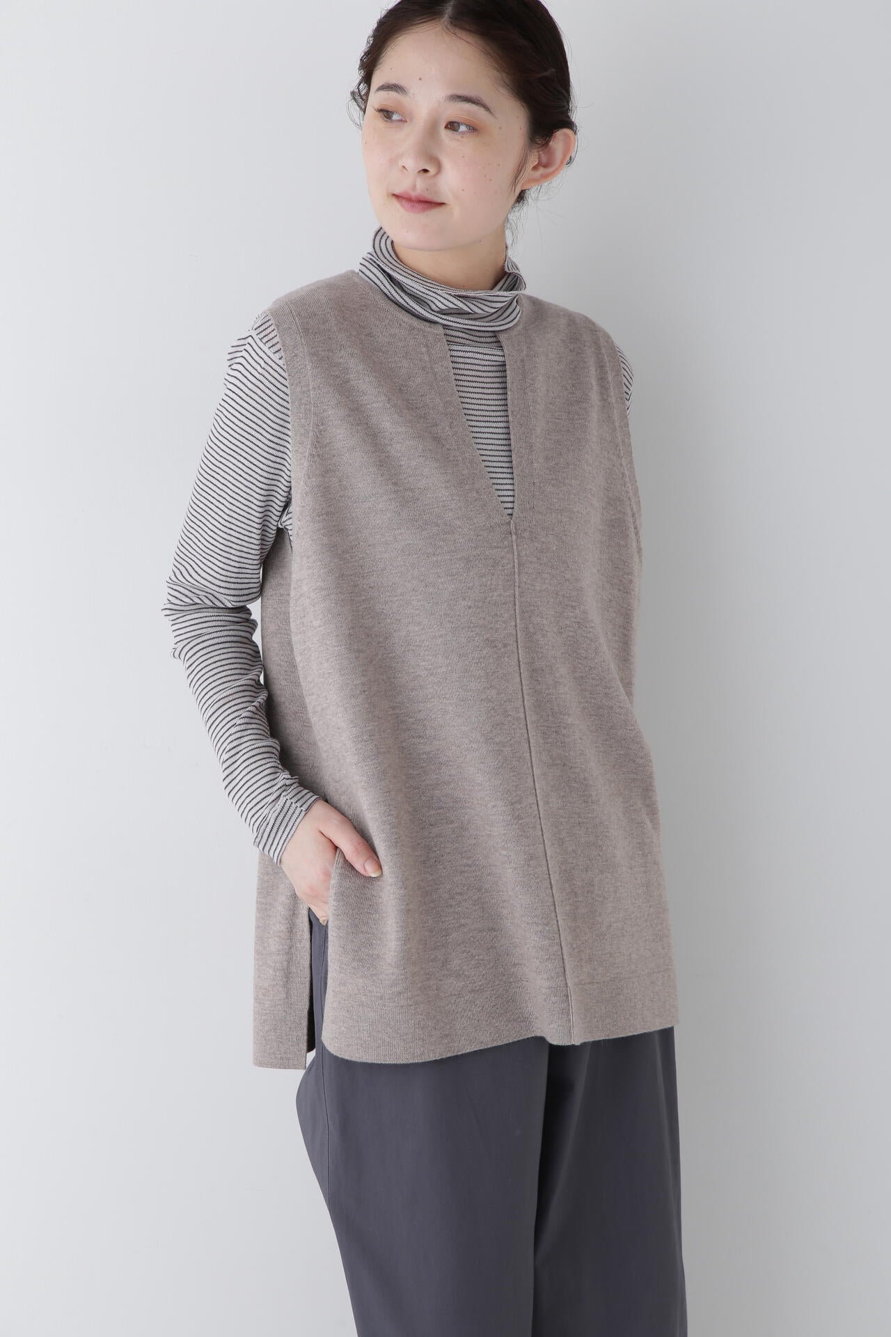 タートルネックやシャツ、ワンピースなどに重ねて様々なレイヤードスタイルが楽しめます。すっきりとしたシルエットなので、細めのパンツなもちろん落ち感のあるワイドパンツとのコーディネートもおすすめです。