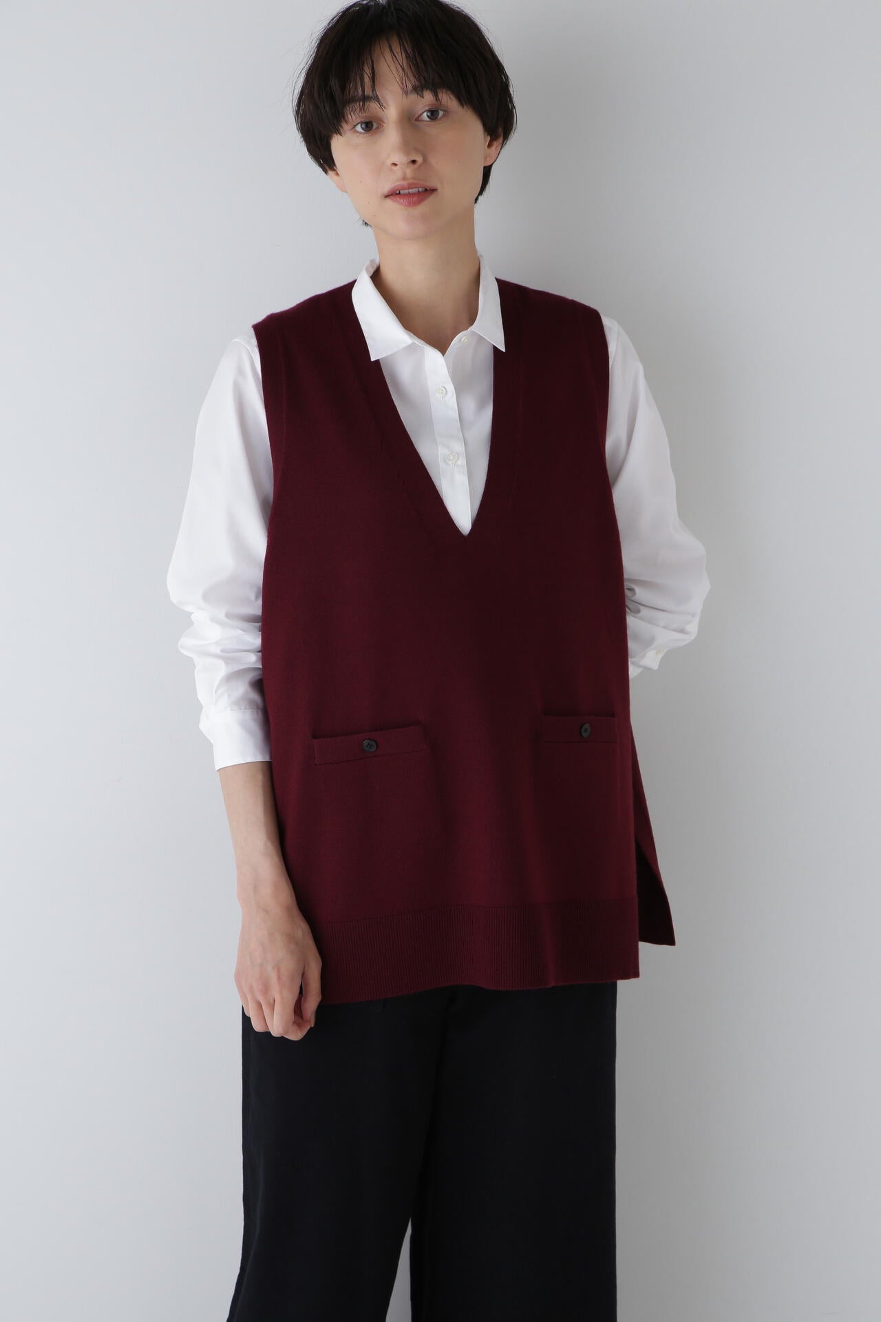 すっきり見えのレイヤードが叶うVネックのニットベスト