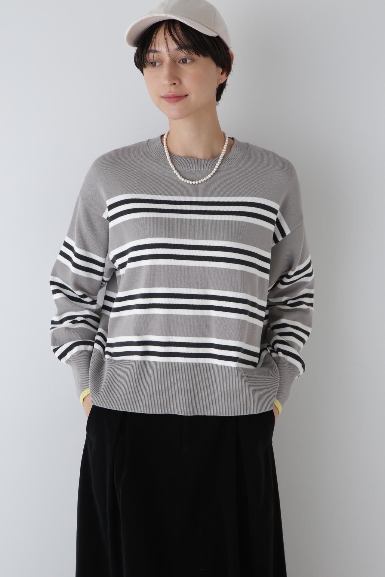 ボーダーピッチに遊びのある、1枚でさまになるクルーネックプルオーバーです。袖口にもアクセントカラーを入れています。