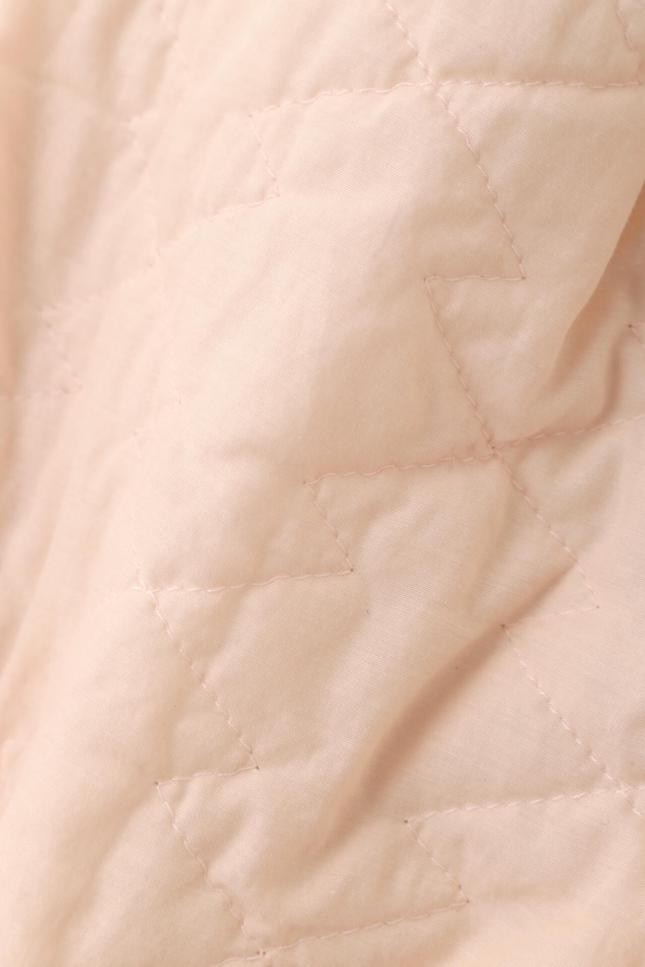 少ないメーター数で染め、柔らかい風合いに仕上げた上品な光沢のあるコットンキュプラ素材を使用。他にあまり見かけることのない変形ダイヤ柄のキルティング刺繍を施しています。