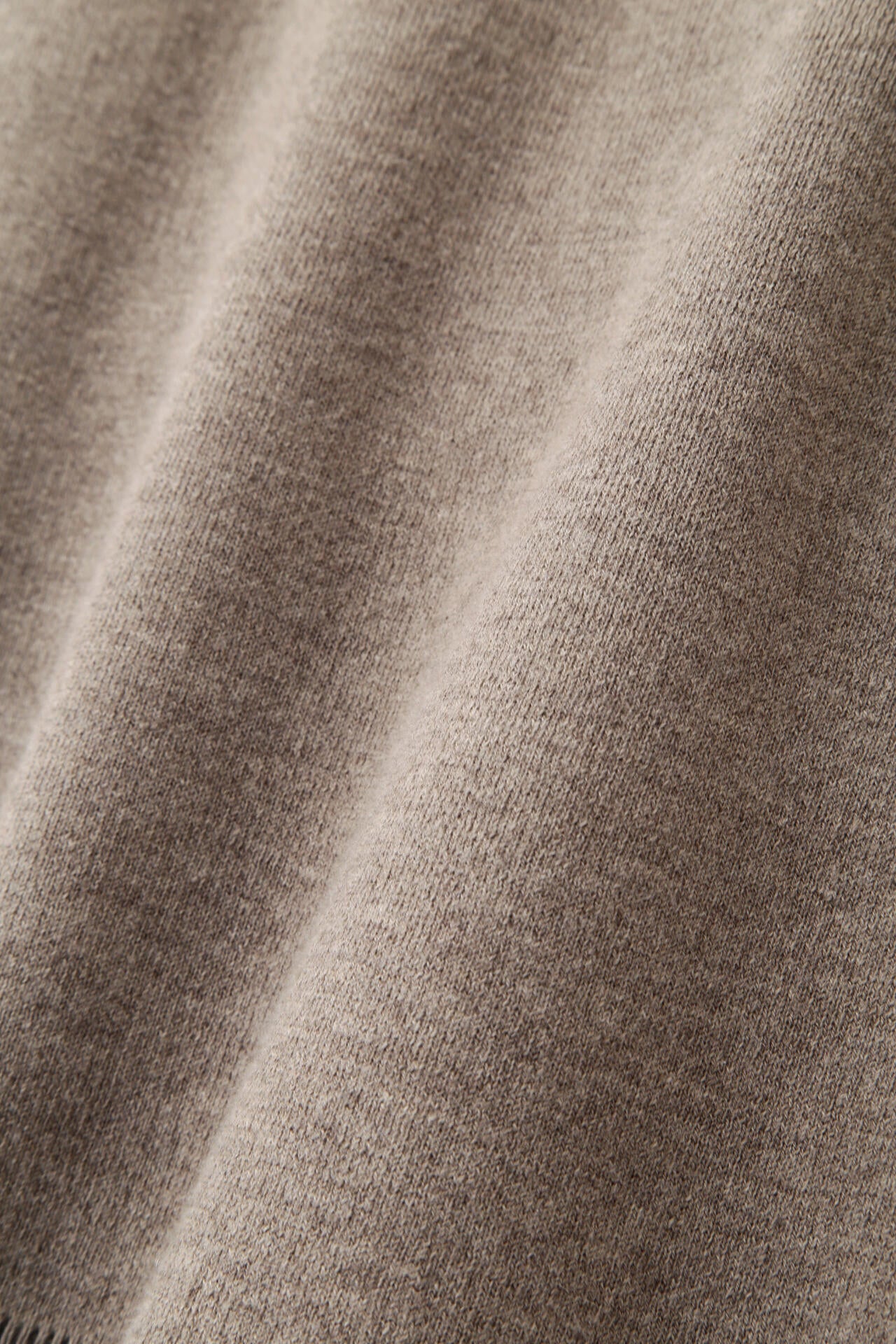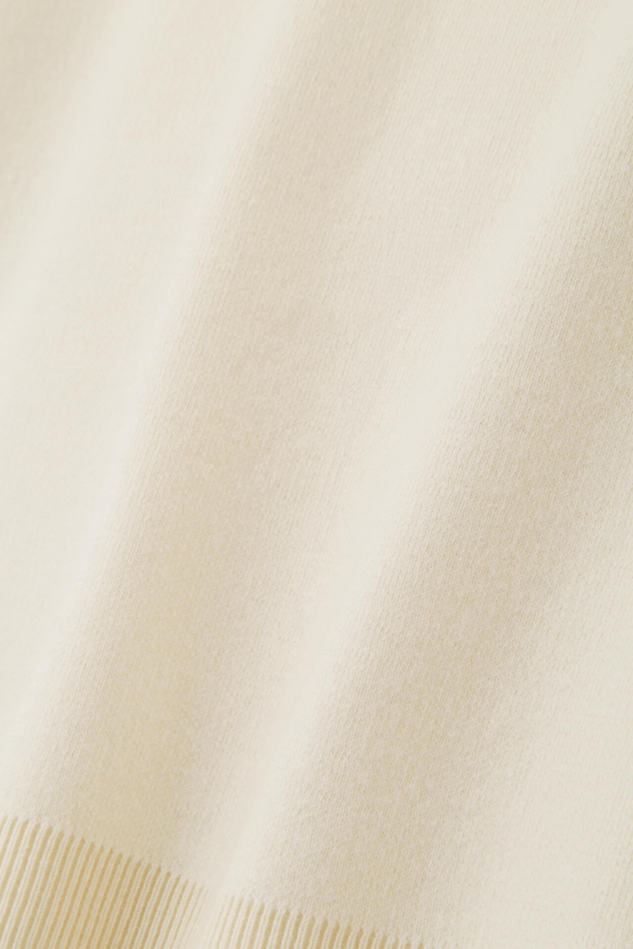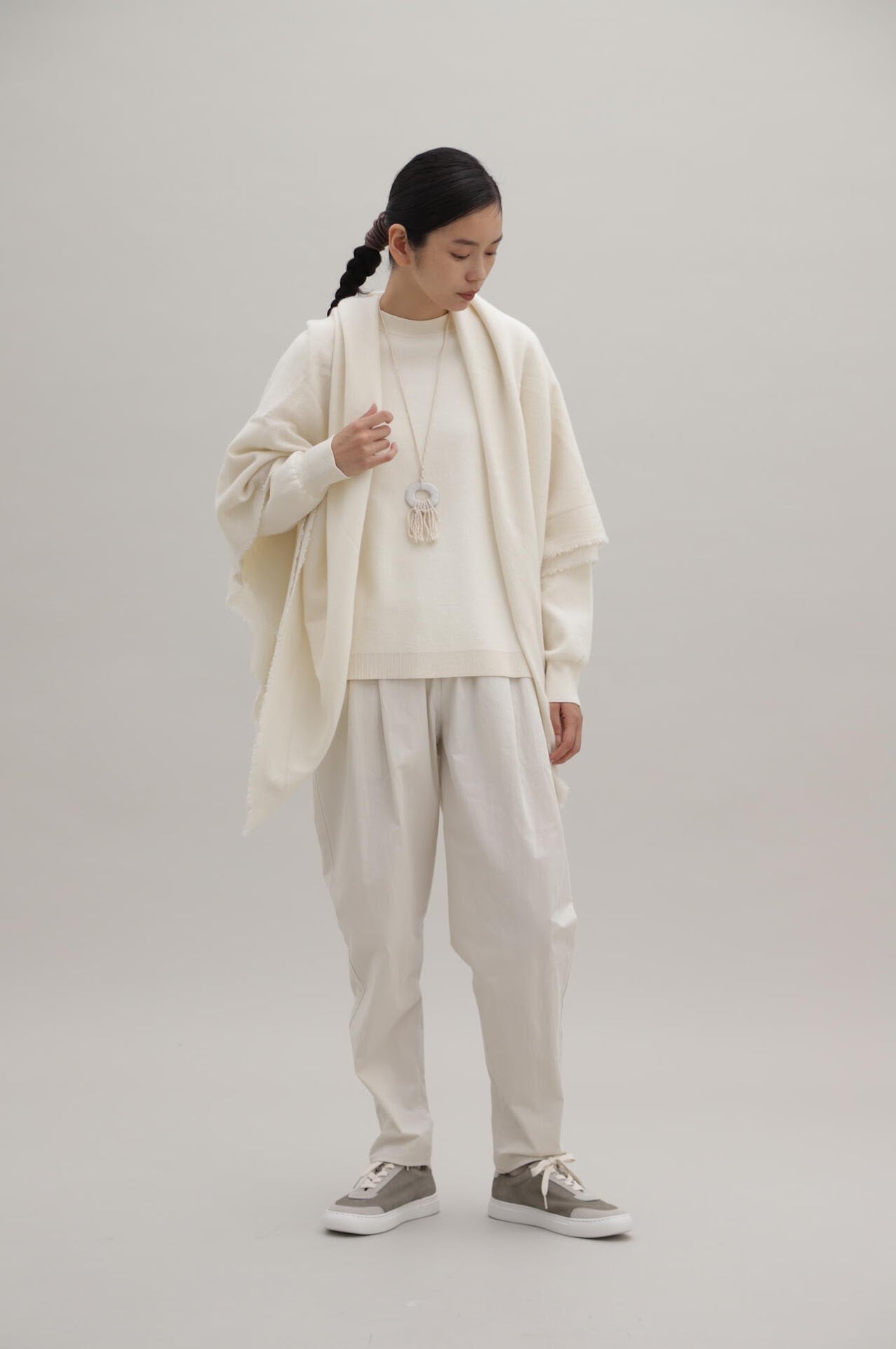 コットンカシミヤの柔らかい糸を使用。裏側にポリエステルの糸で接結編みにすることでハリを出しつつ軽さのある編地が特徴です。