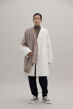 使い続けていくことで表面の毛が少しずつ立ち上がり、やわらかさが出てきます。平織できっちり織っているので、扱いが少し雑でも大丈夫。気候が安定しない季節に持ち歩くのに便利な1枚です。じんわりとゆるやかに暖かさが伝わります。