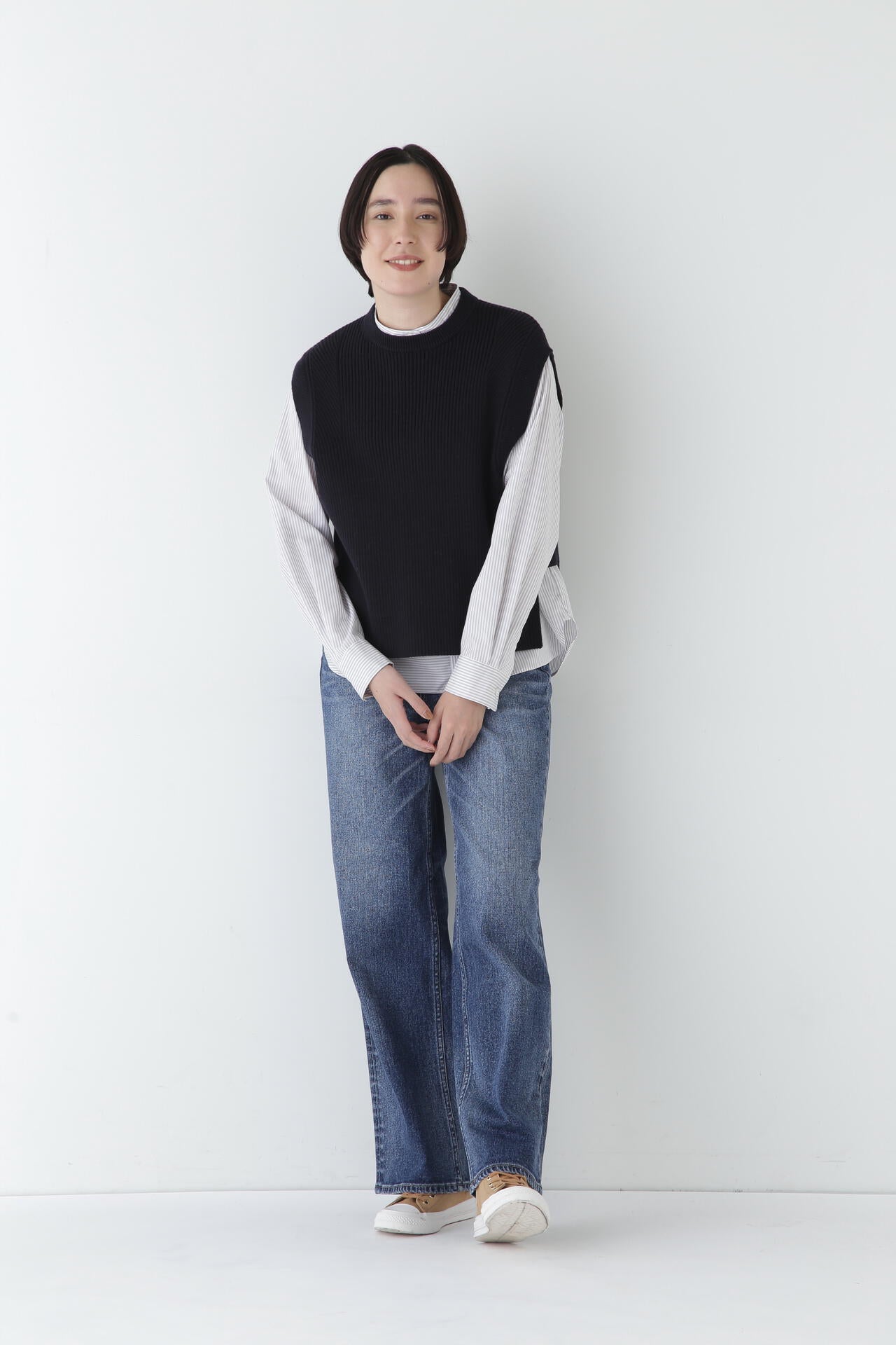 一枚着として着用できるシルエット感かつ、ニットやカーディガンのインナーとしても着回しの効くブラウスです。カジュアルからオフィススタイルまで幅広いシーンで活躍します。
