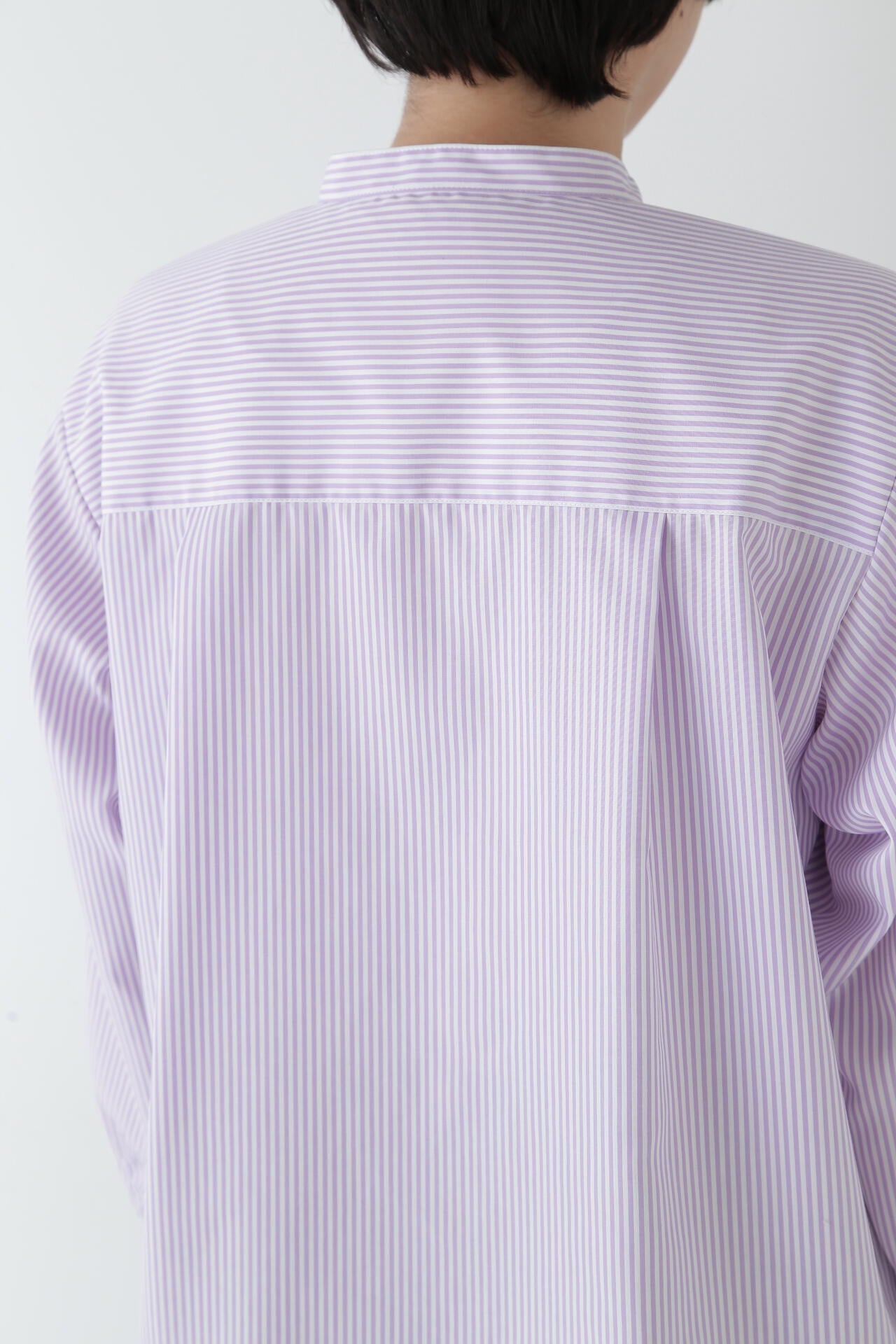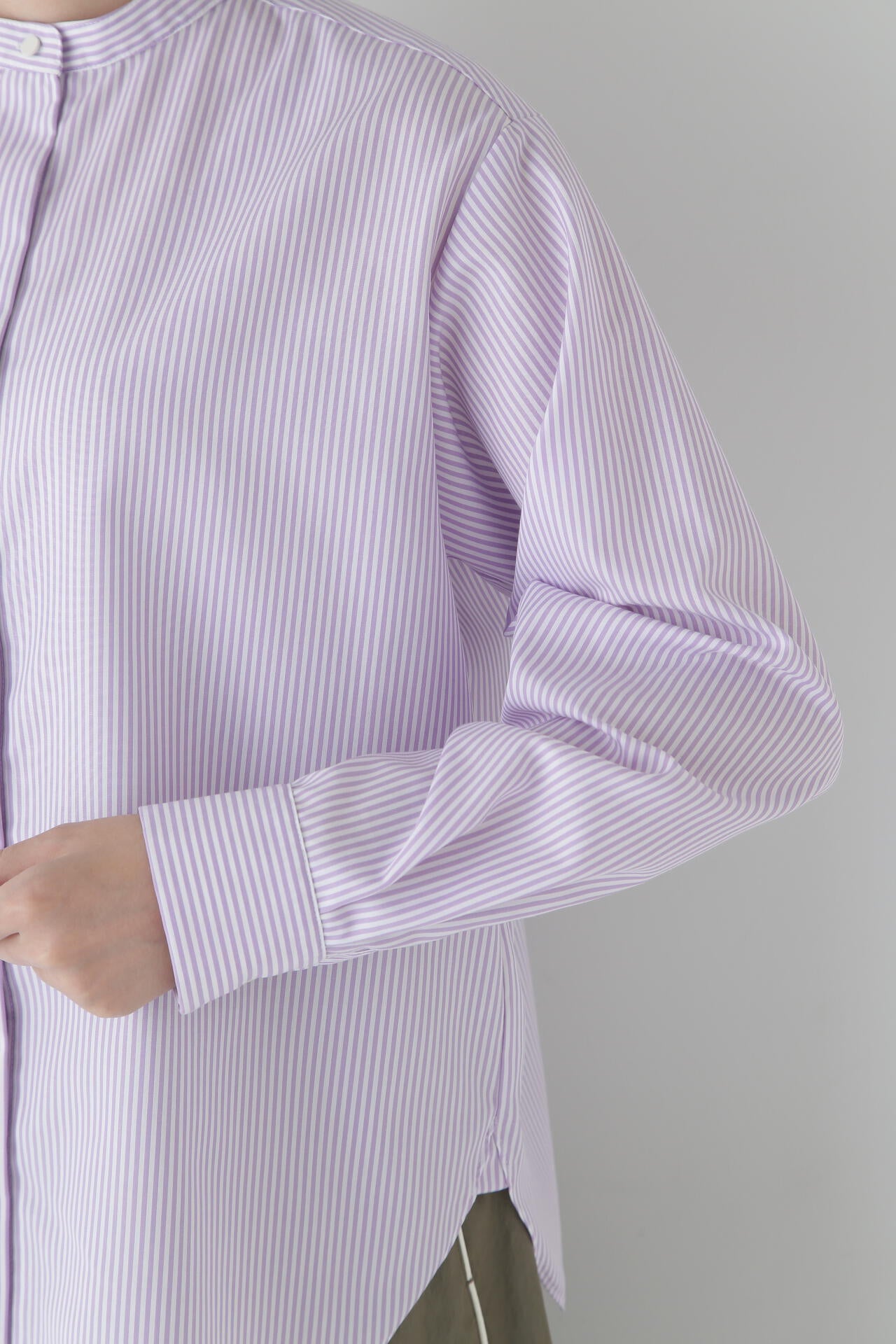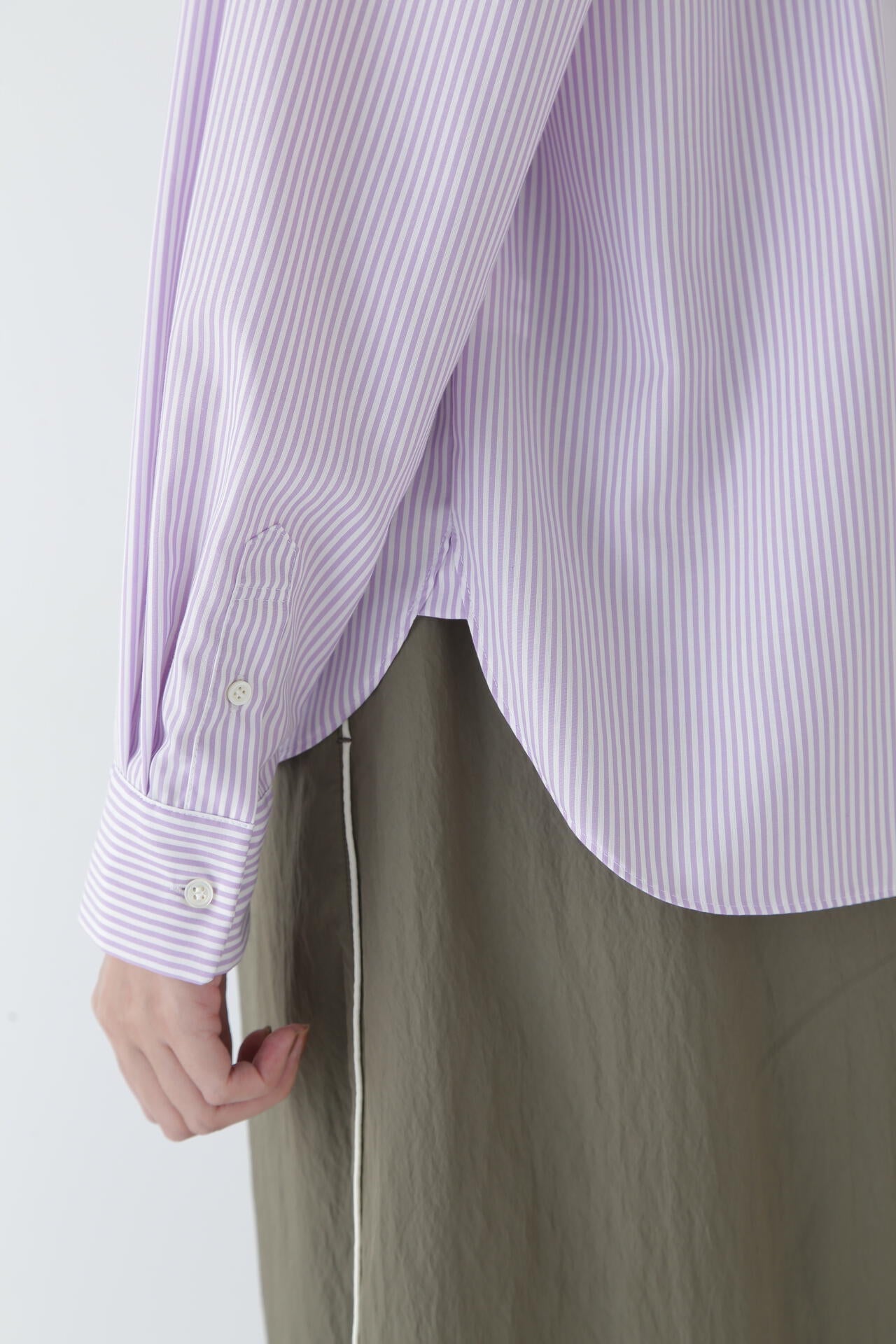 打ち込みの良い上質なストライプシャツ地を使用。着やすいライトグレーと、ポイントカラーのラベンダーの2色展開です。