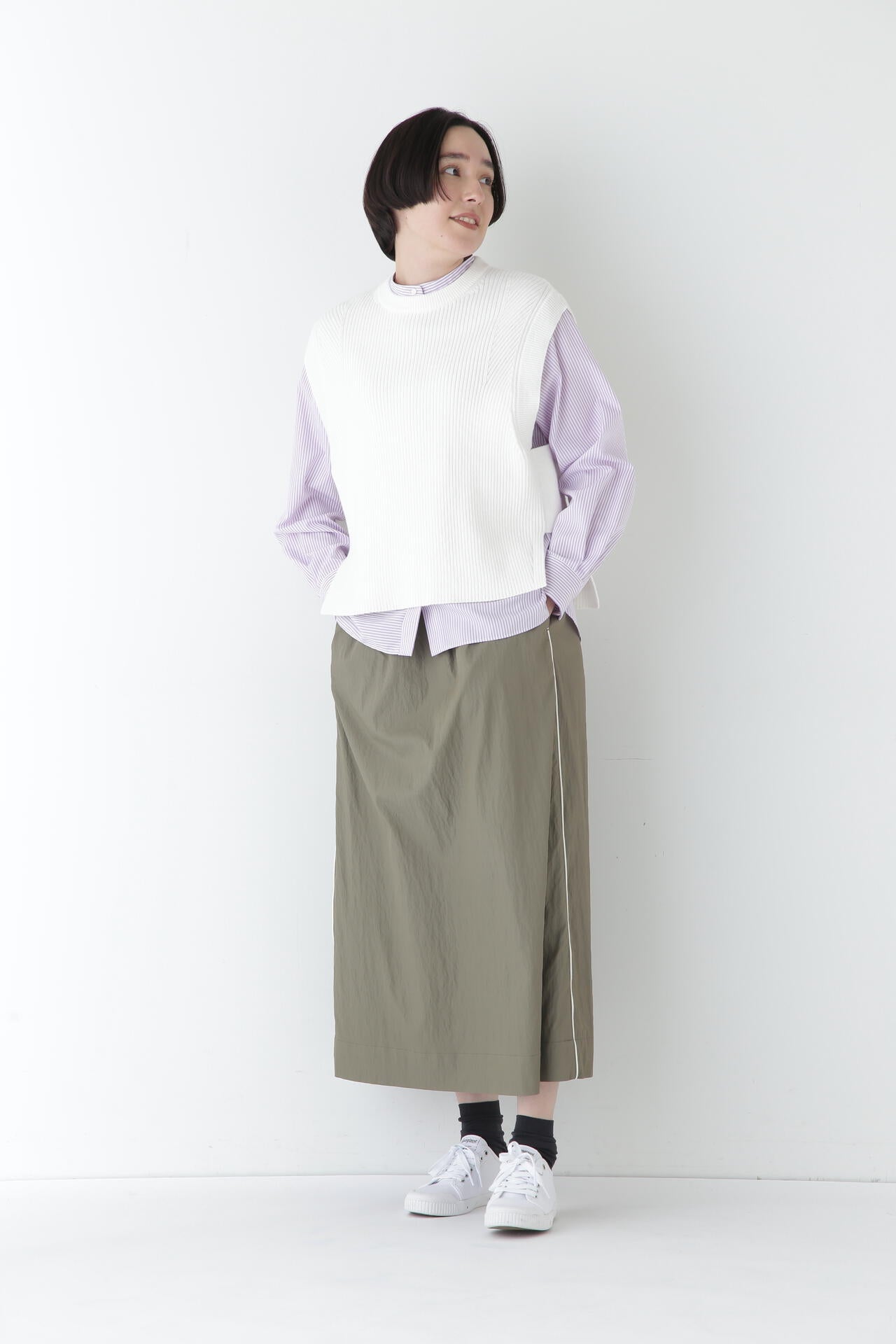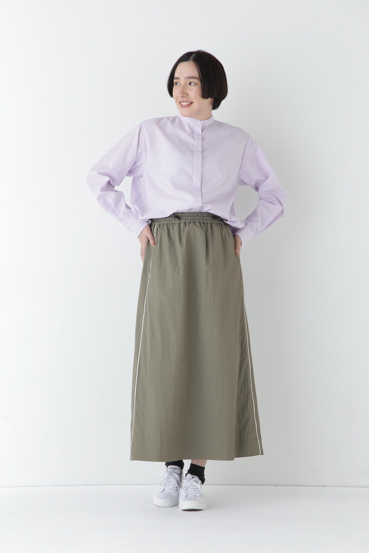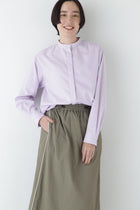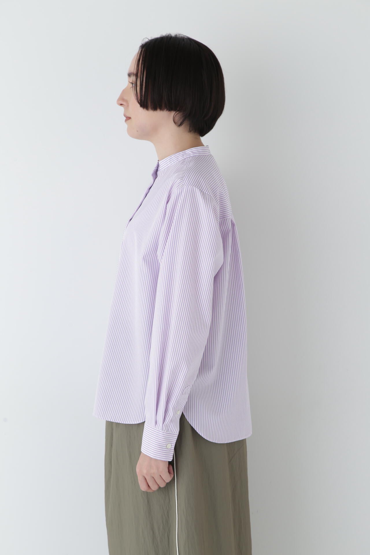 打ち込みの良い上質なストライプシャツ地を使用。着やすいライトグレーと、ポイントカラーのラベンダーの2色展開です。