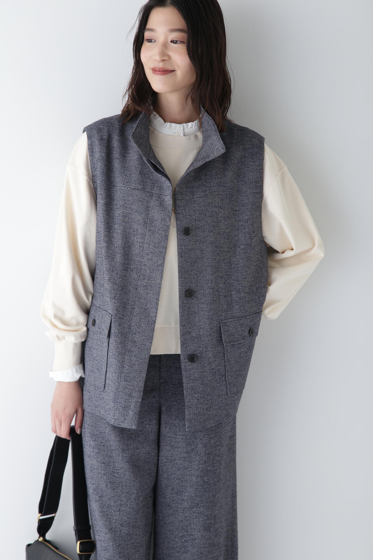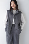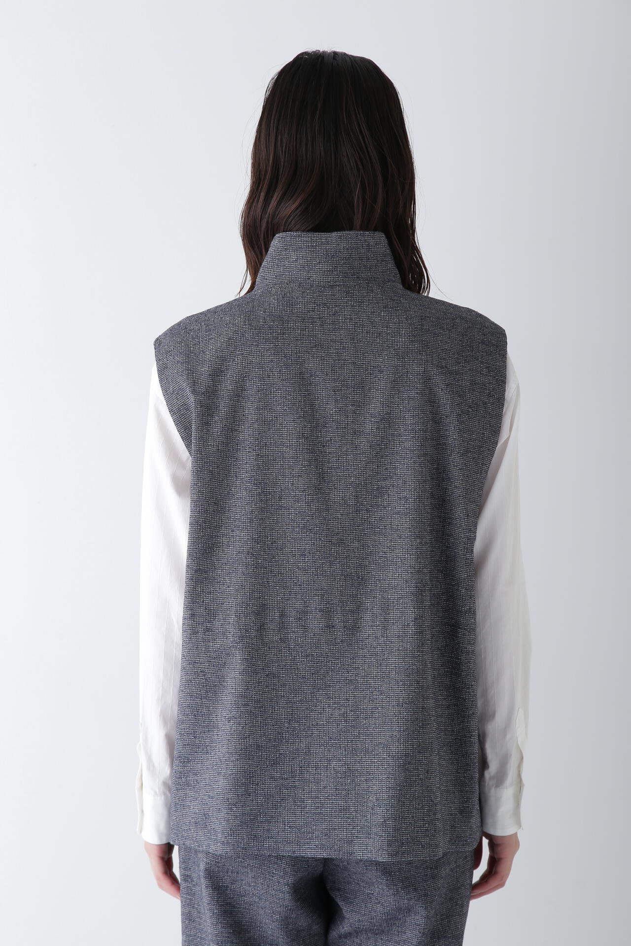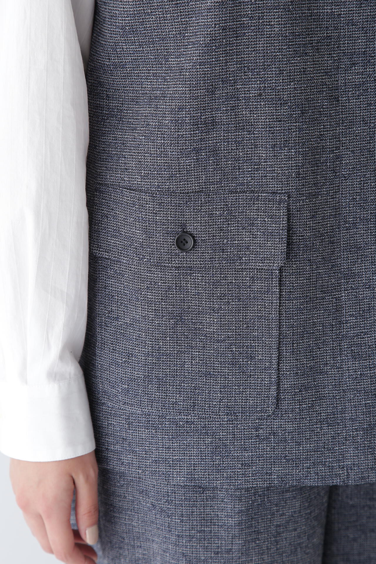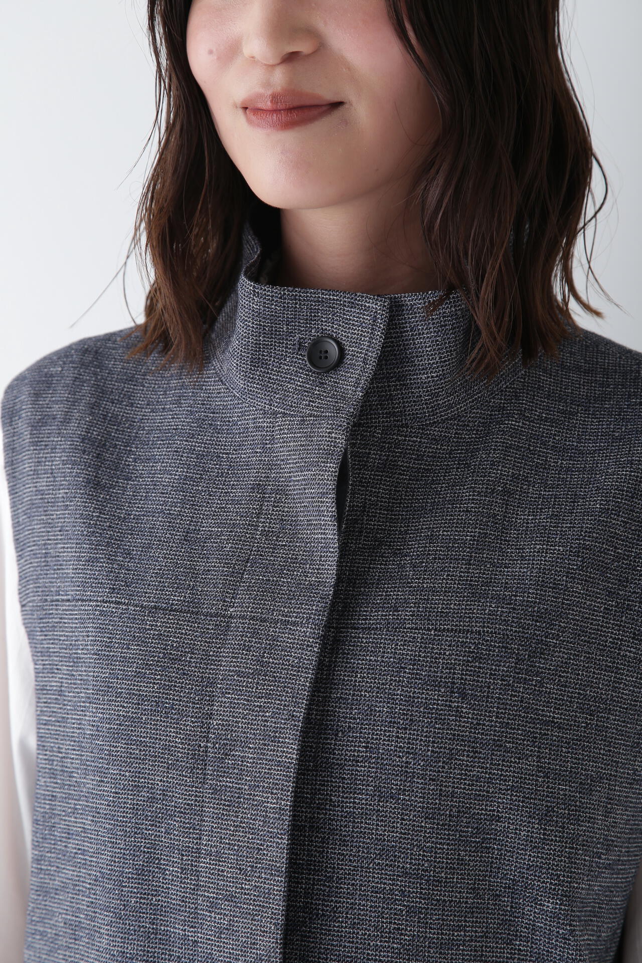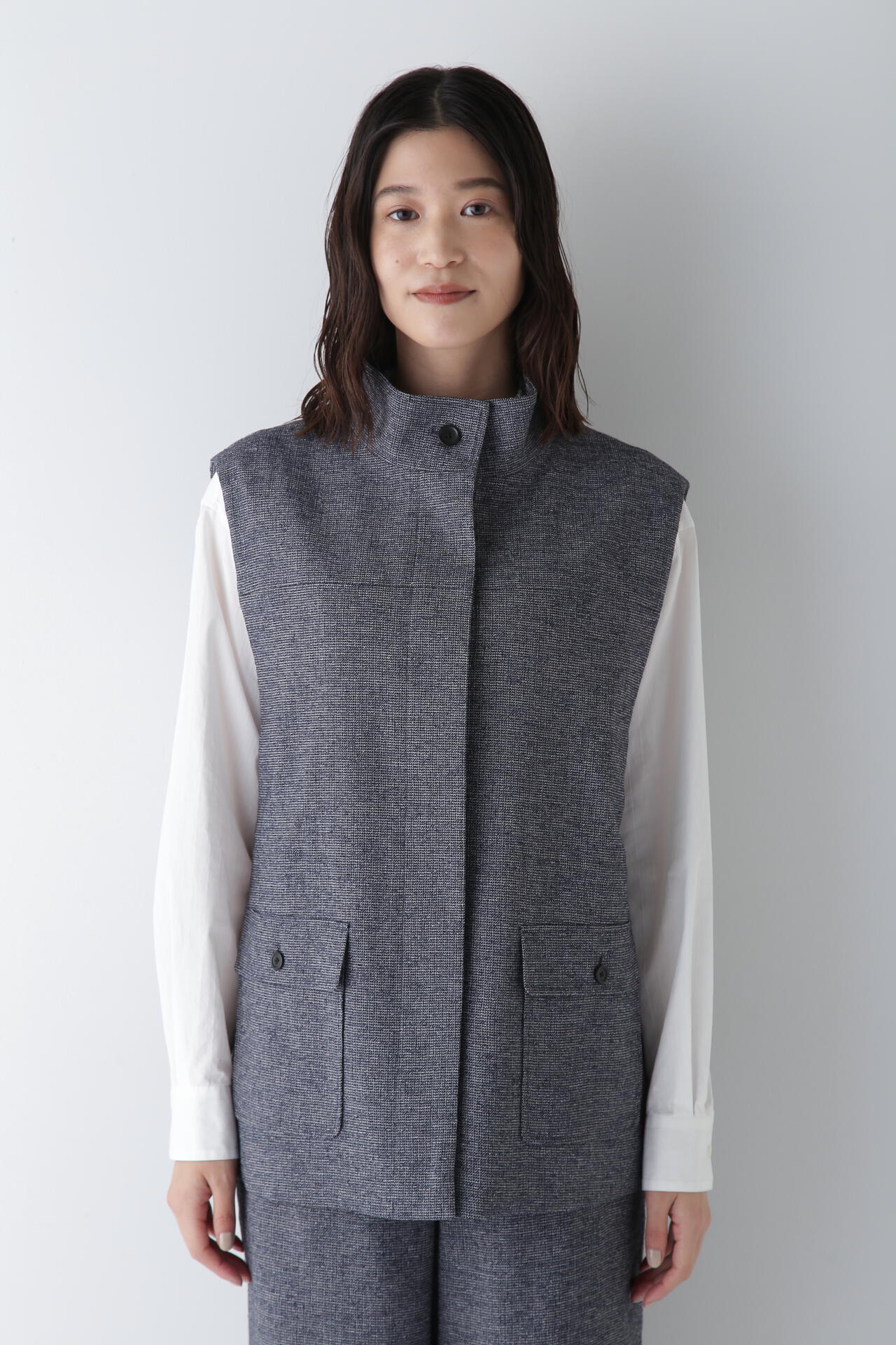 スポーティーなアノラックディテールのツィードジレです。身頃ウエスト裏の杉綾テープをドロストすることで、シルエット変化も楽しめます。