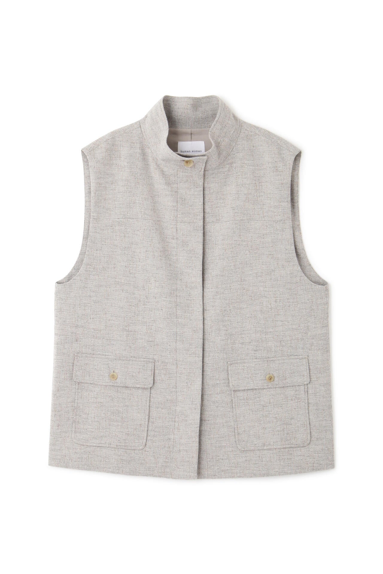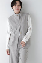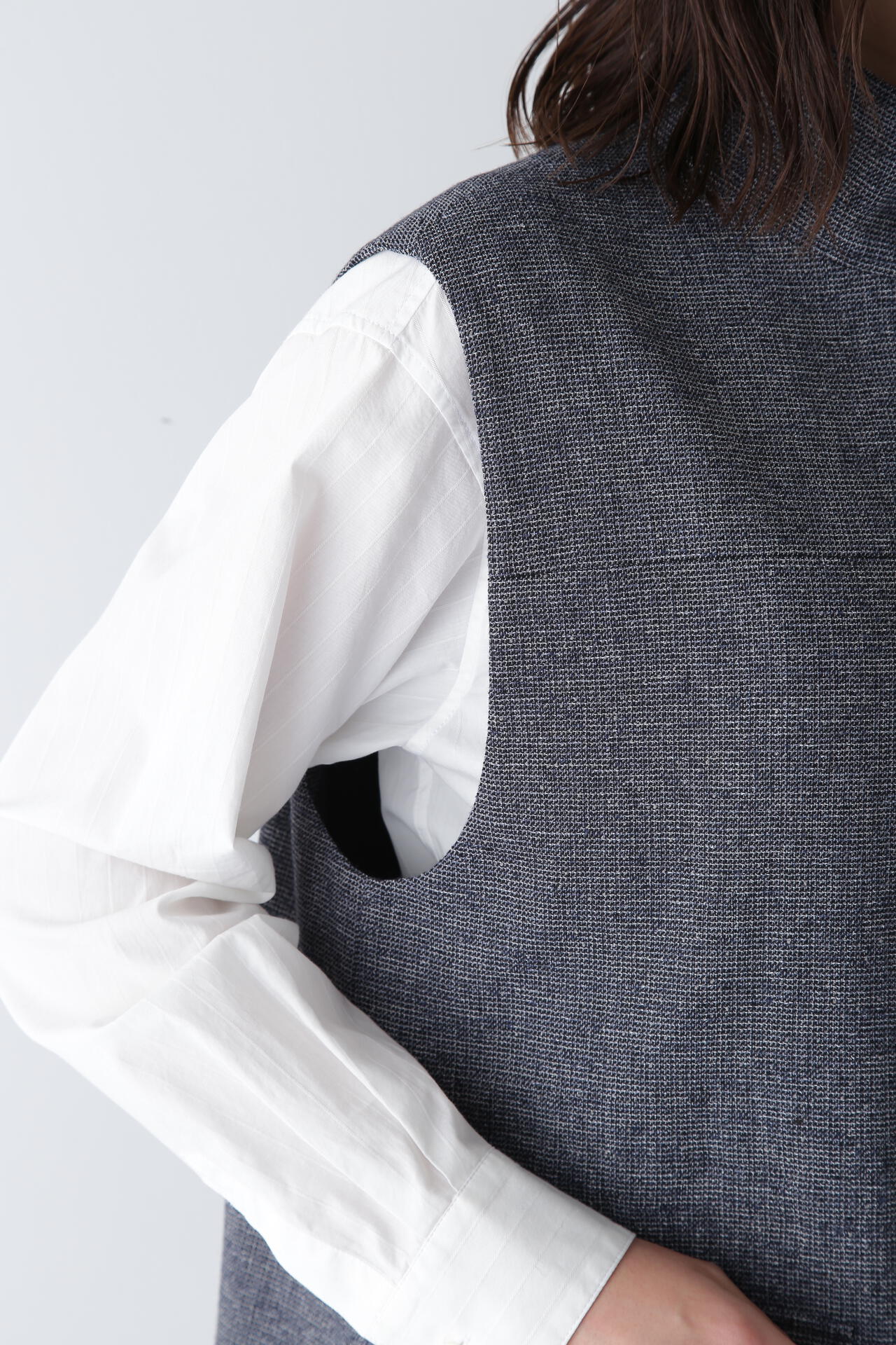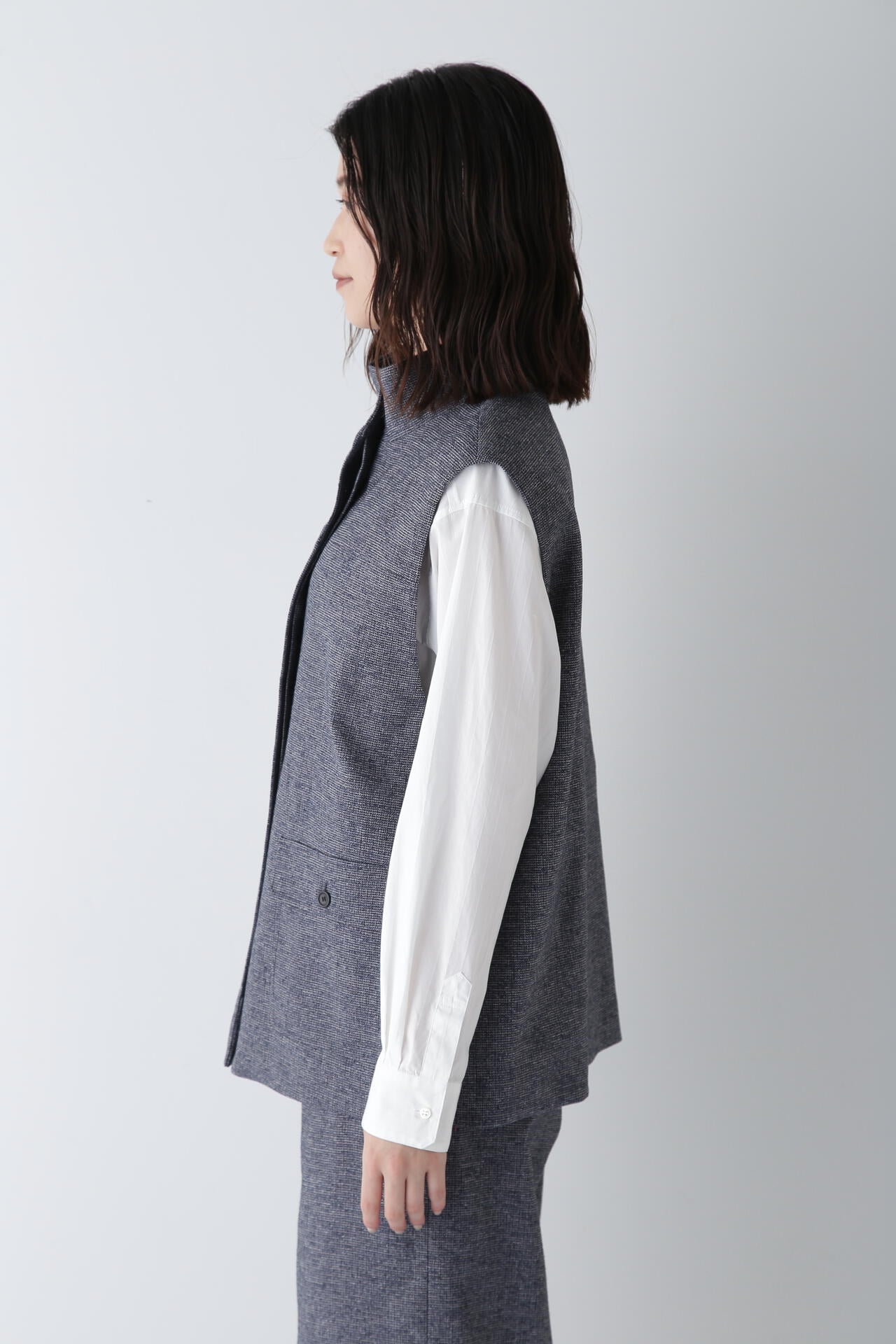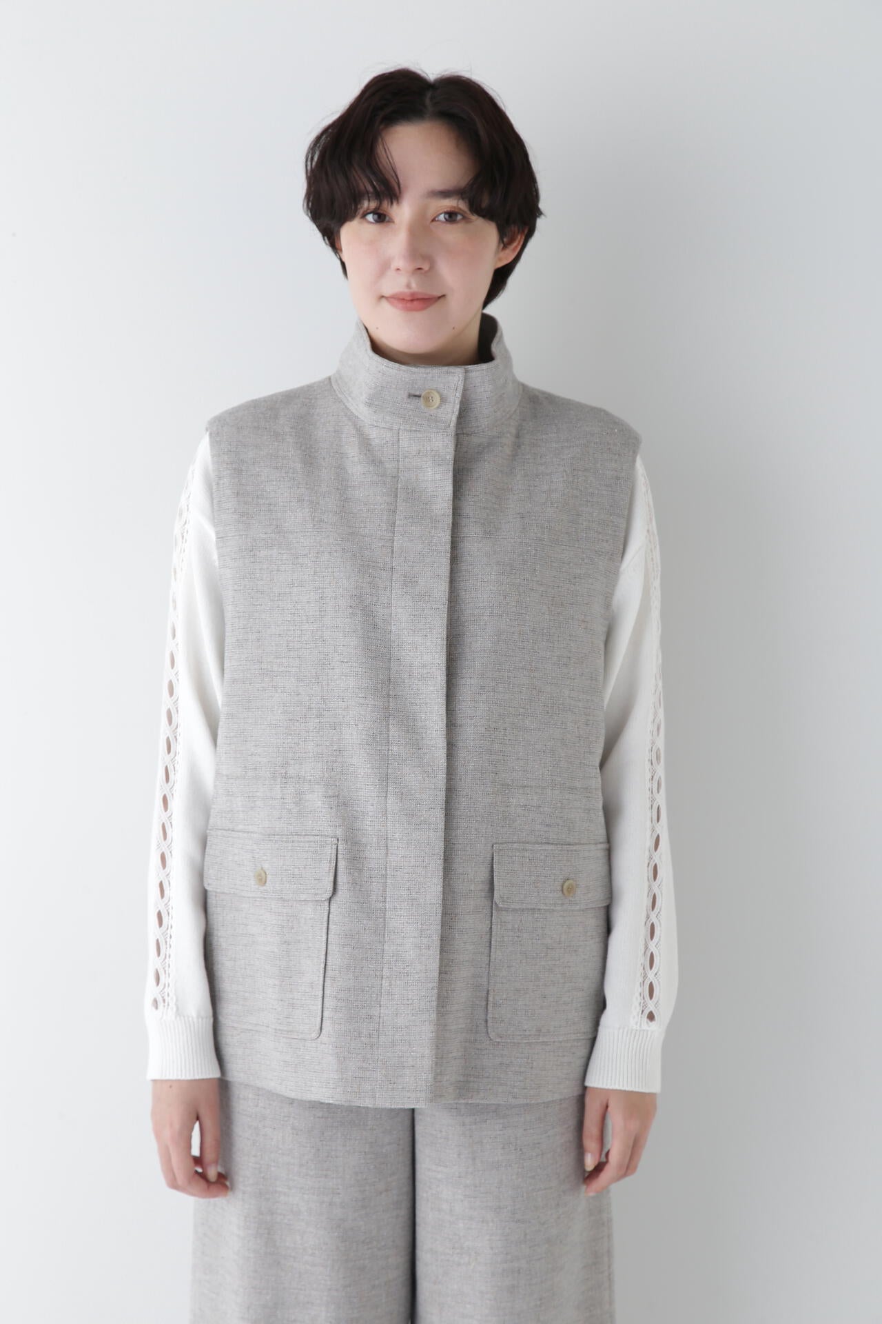 スポーティーなアノラックディテールのツィードジレです。身頃ウエスト裏の杉綾テープをドロストすることで、シルエット変化も楽しめます。