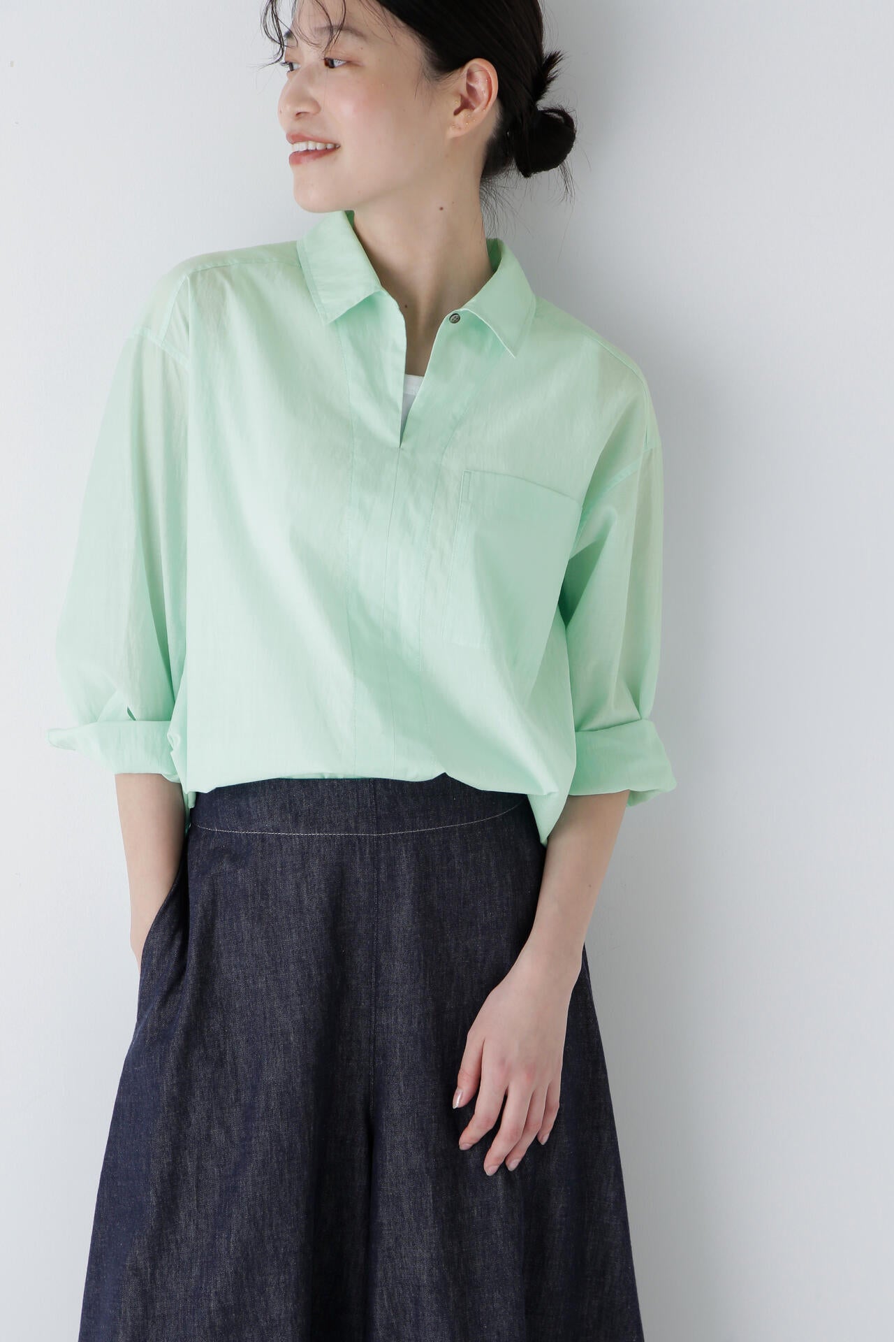 爽やかな抜け感を持つスキッパーブラウス