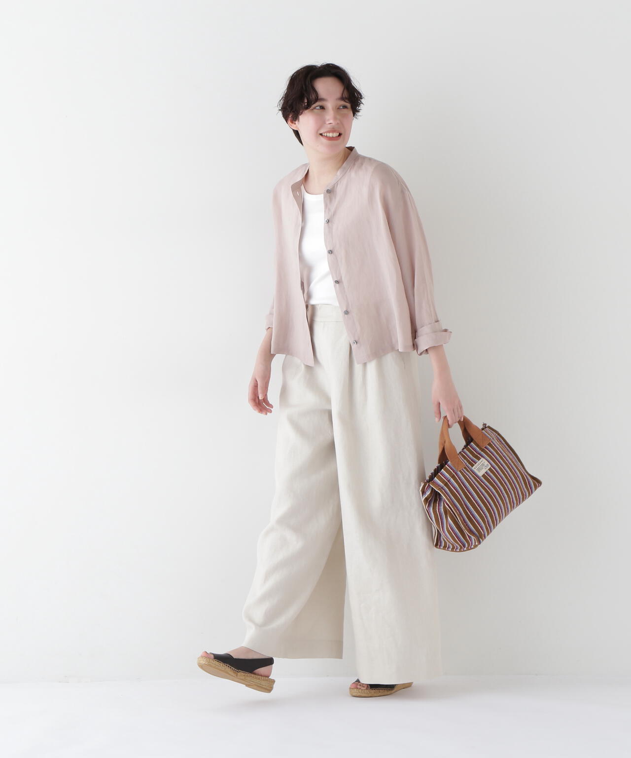 繊細な表面感と涼しげなシャリ感を併せ持つ細番手のラミー素材を100%使用しています。