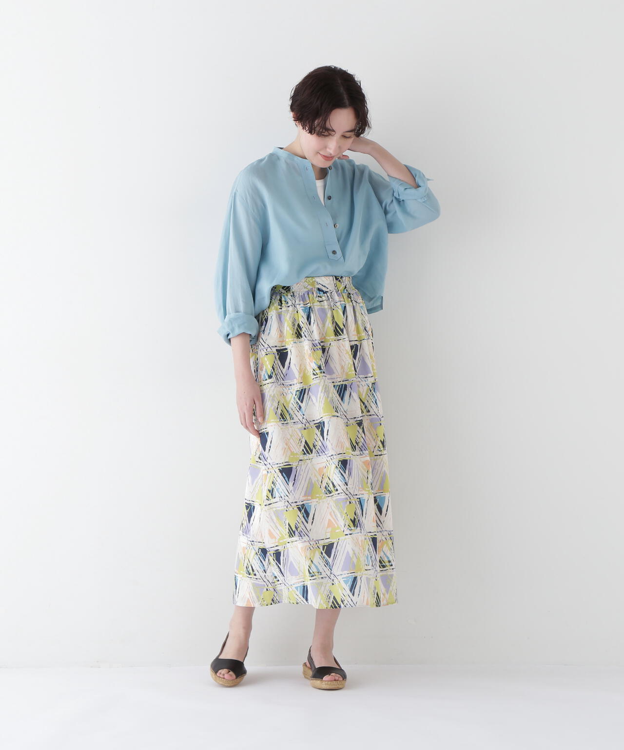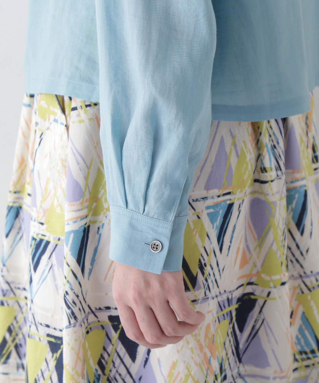 一枚着としても羽織りとしても着回しのしやすいブラウスです。上から3つほどボタンを開けた抜け感のある着こなしもおすすめです。