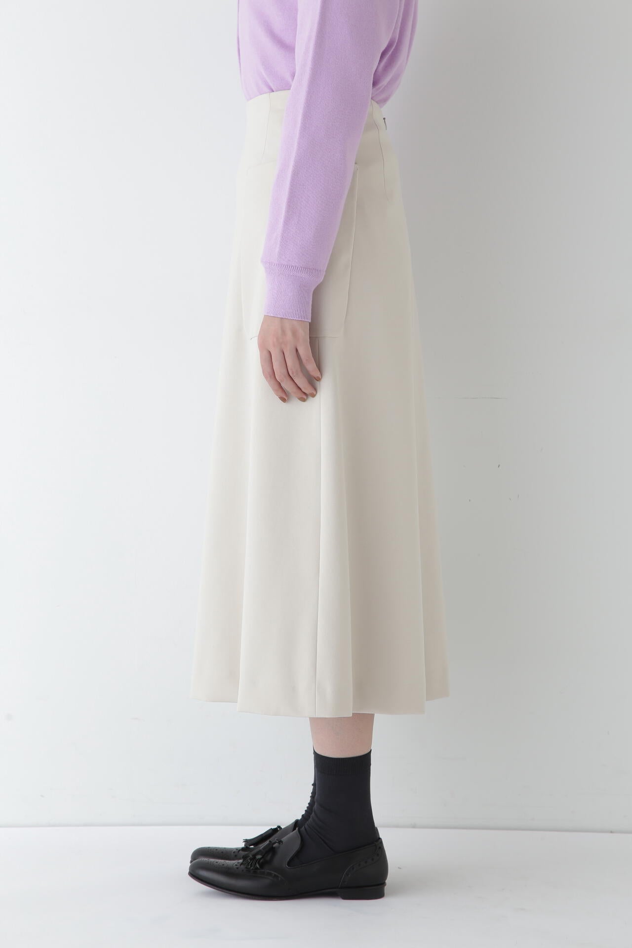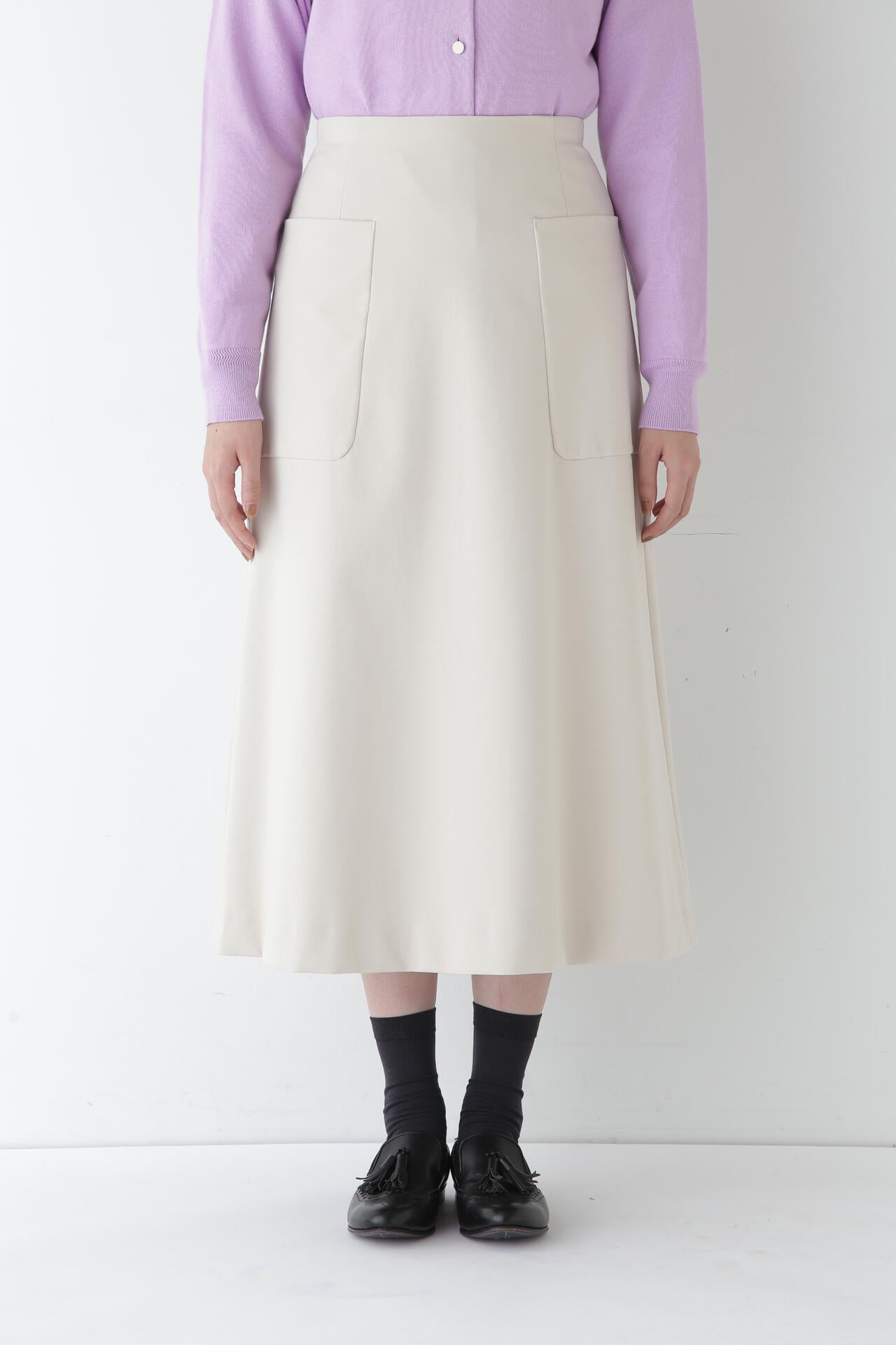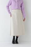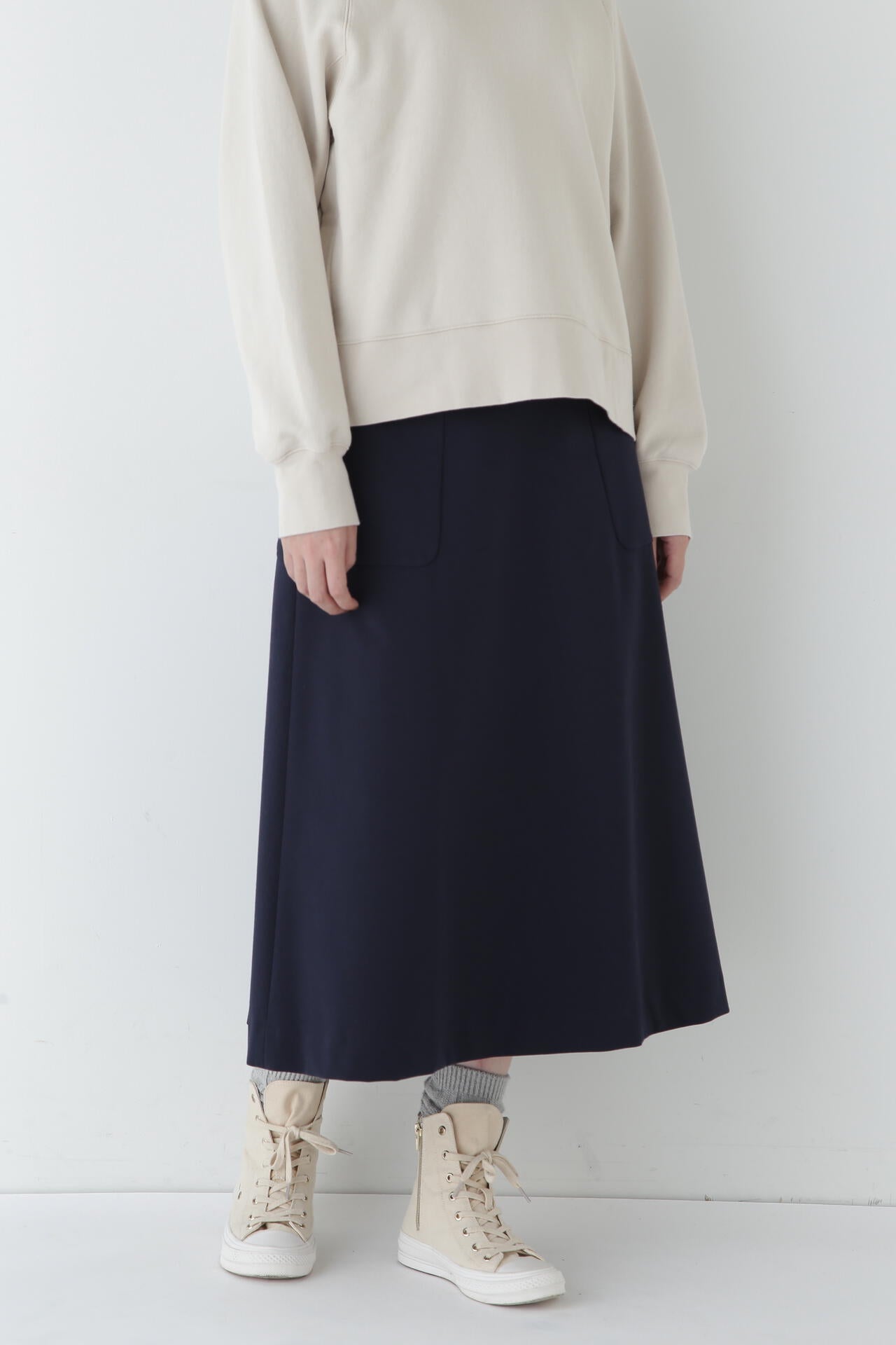 シャツなどきれいめなトップスと合わせて通勤やオケージョンにもおすすめです。またスウエットやTシャツなどカジュアルなアイテムとも相性がよくオンオフ問わず活躍するスカートです。