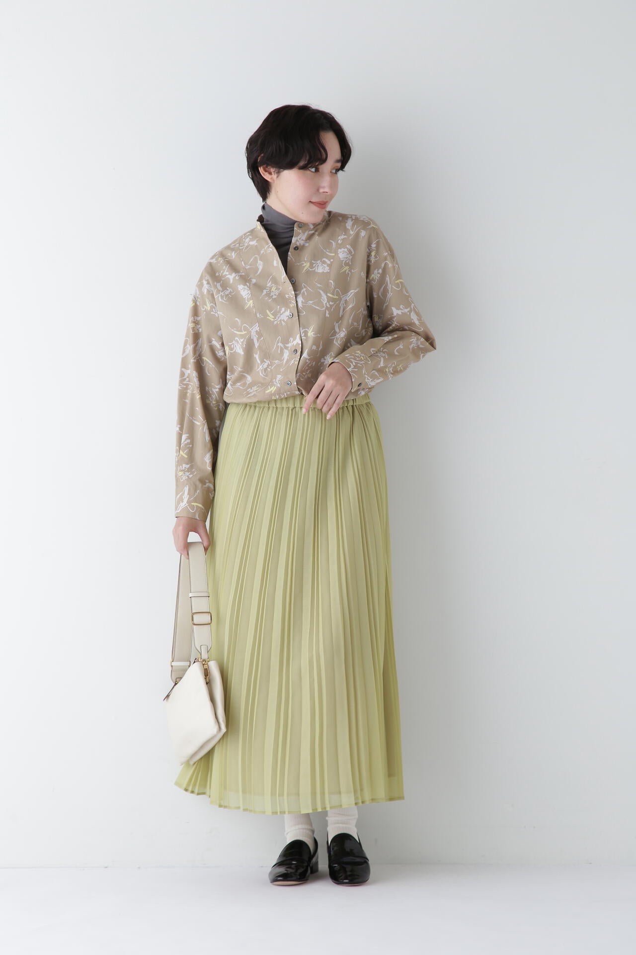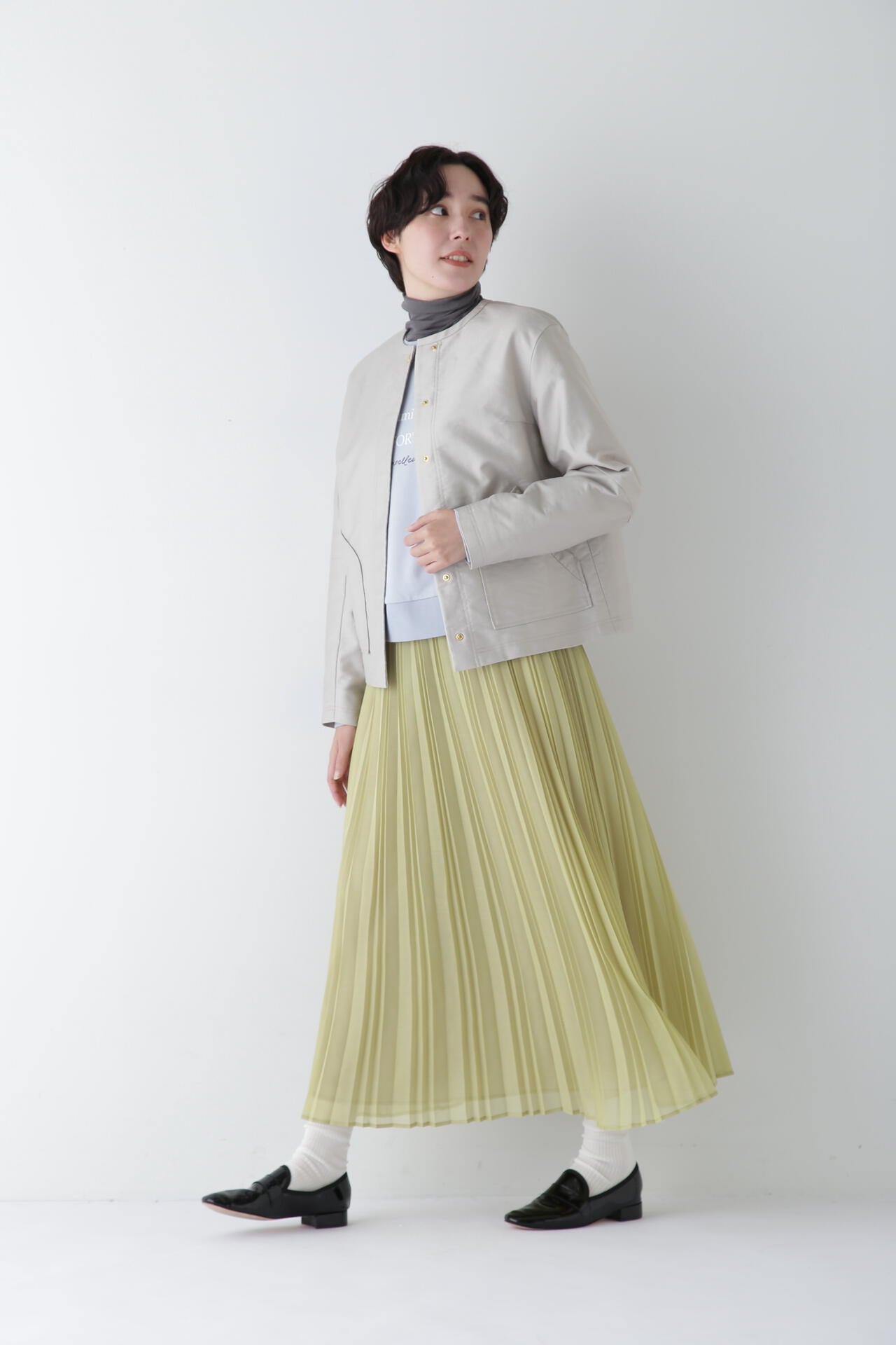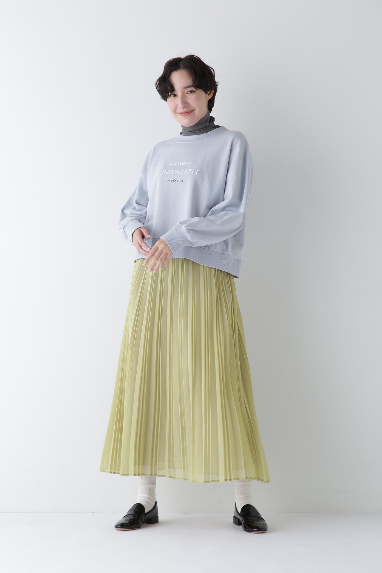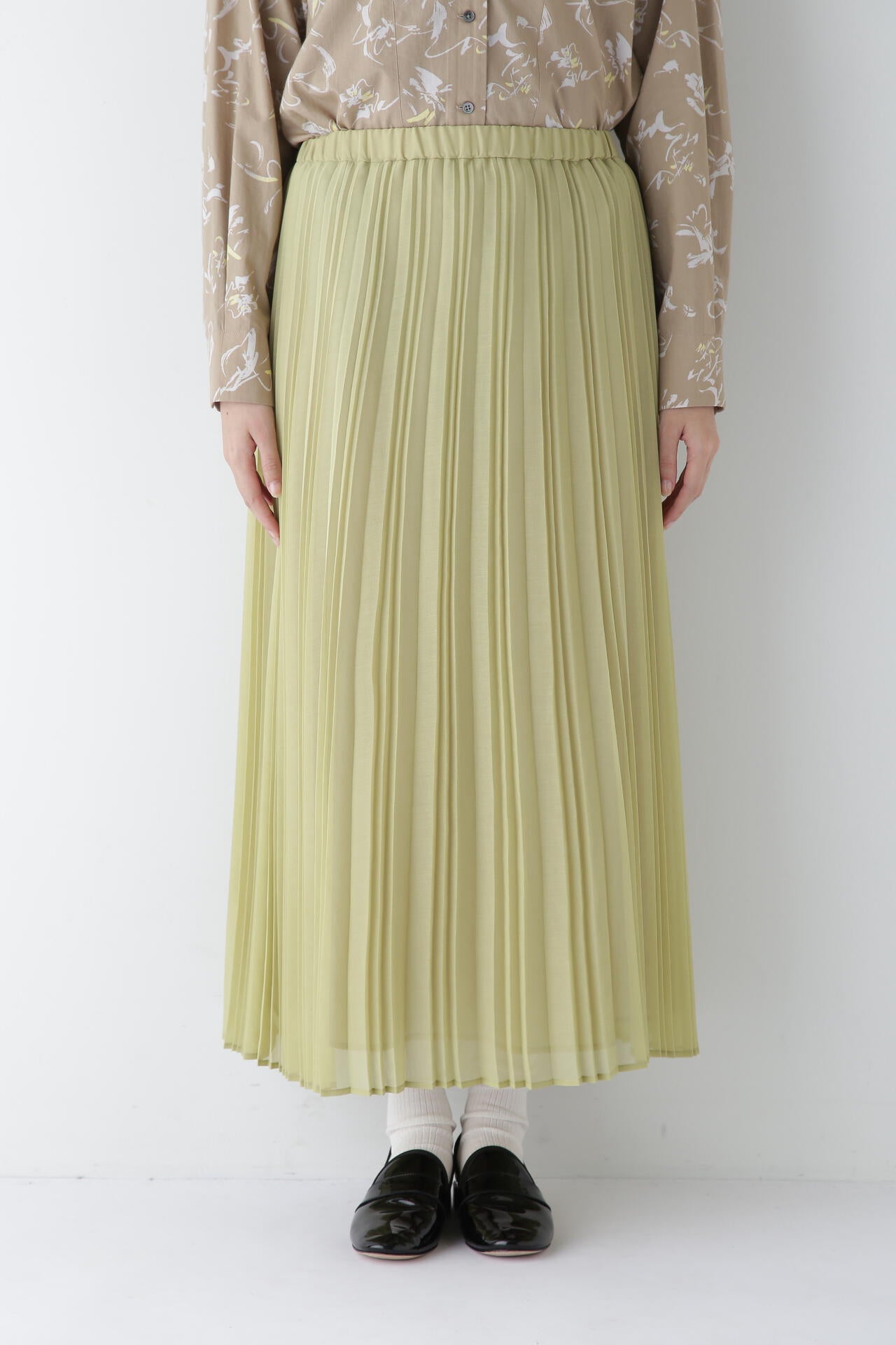 裾に向かって程よく広がる軽やかなイレギュラーピッチのアコーディオンプリーツスカートです。