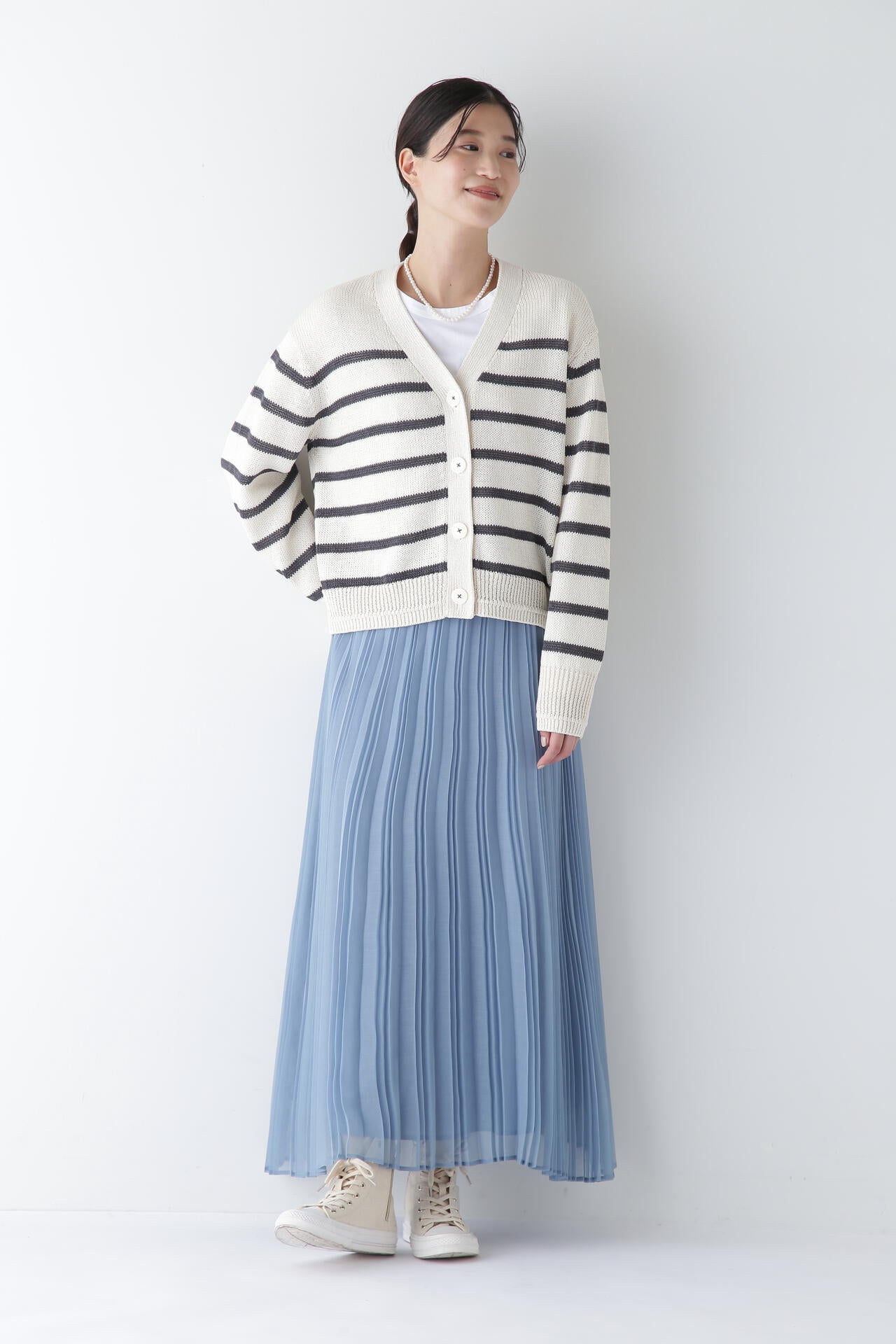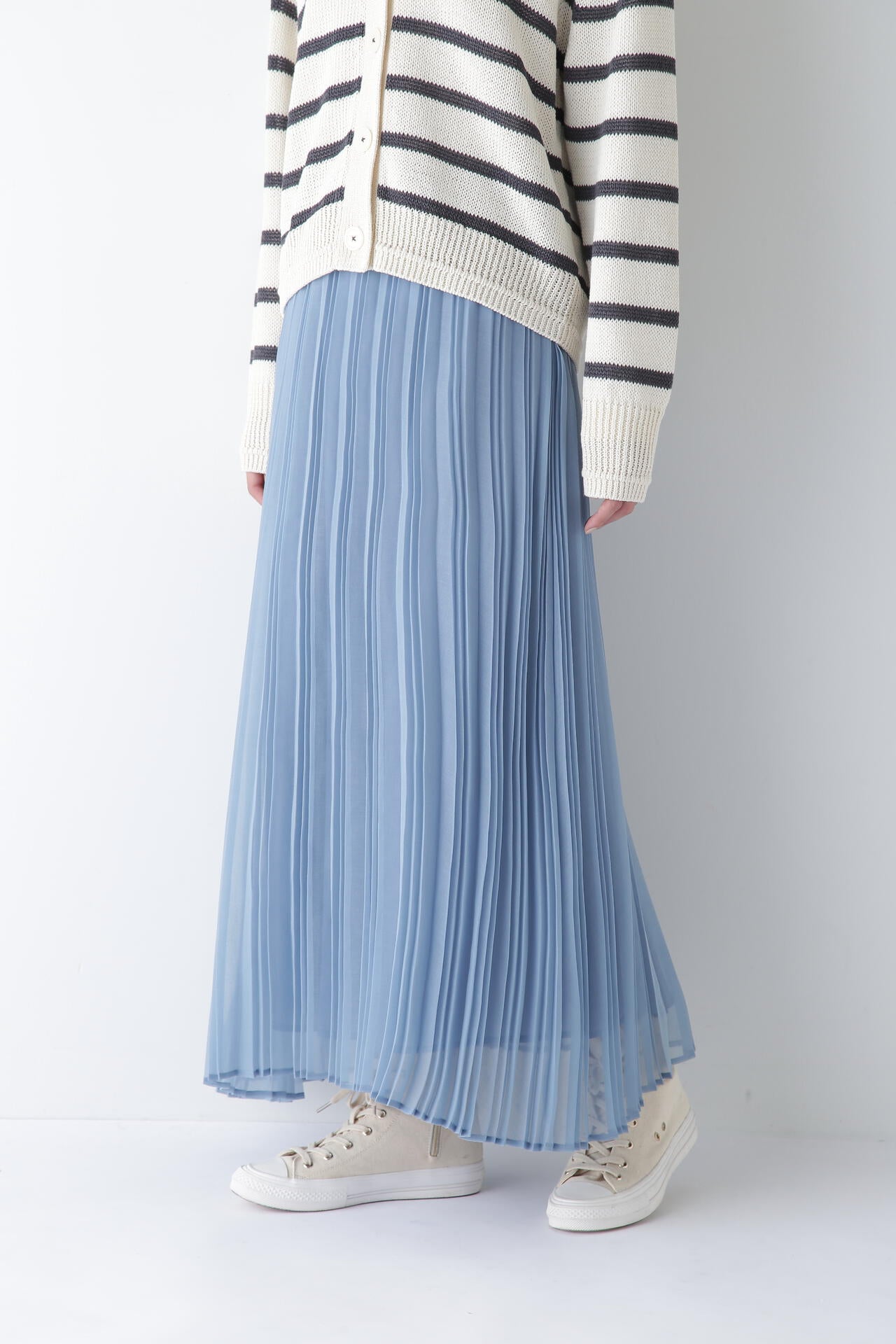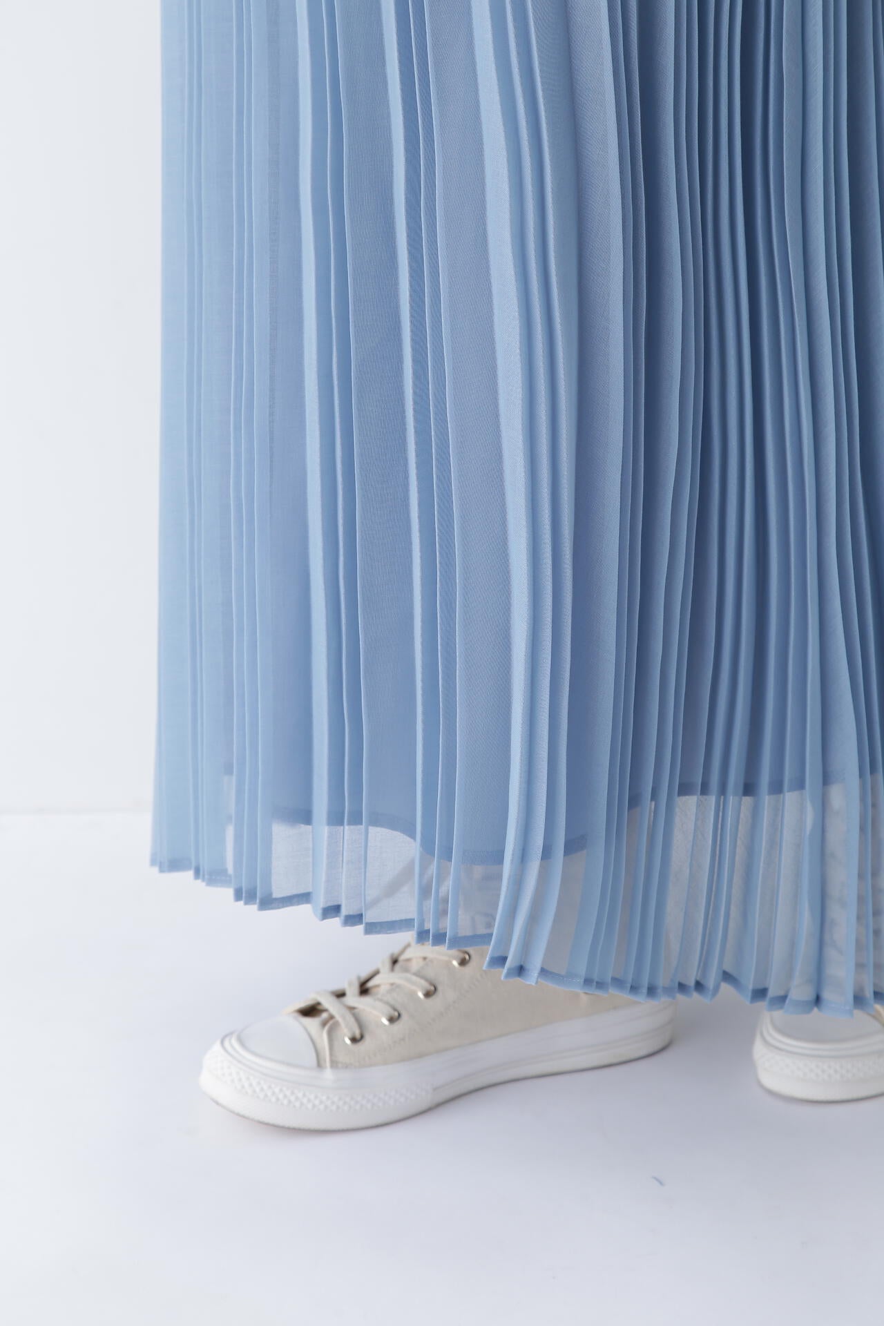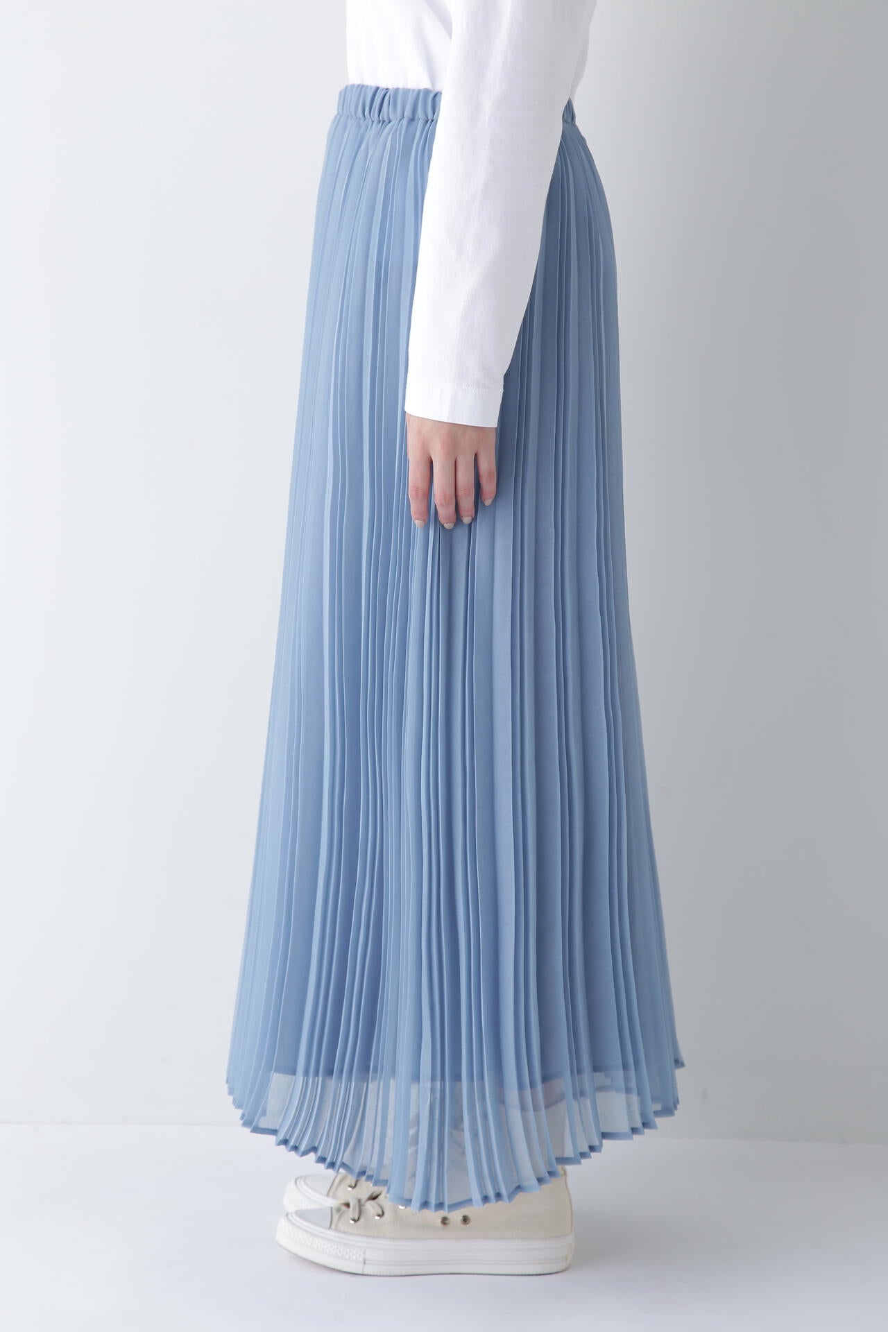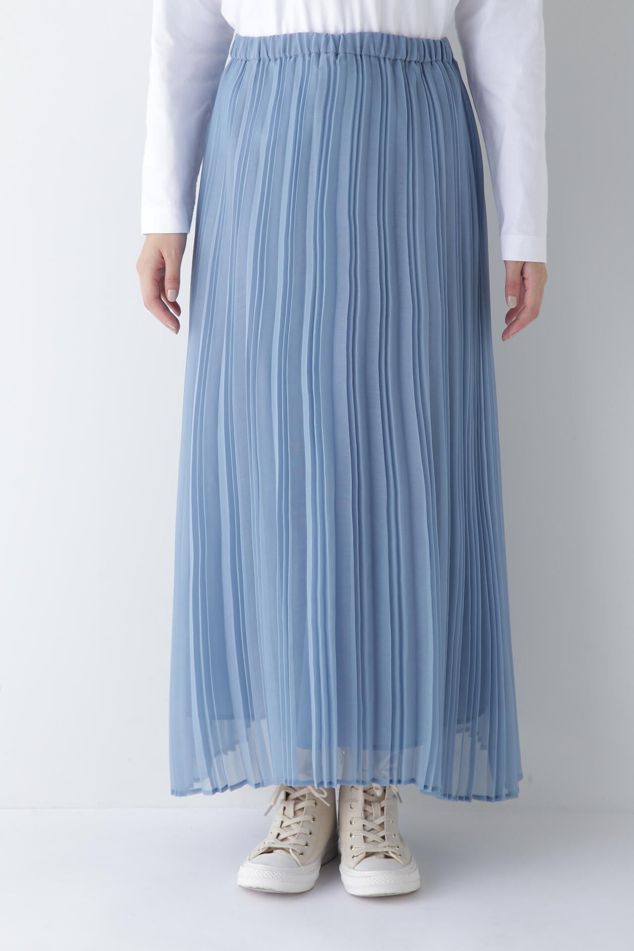 エアリーな素材が女性らしさを演出するプリーツスカート