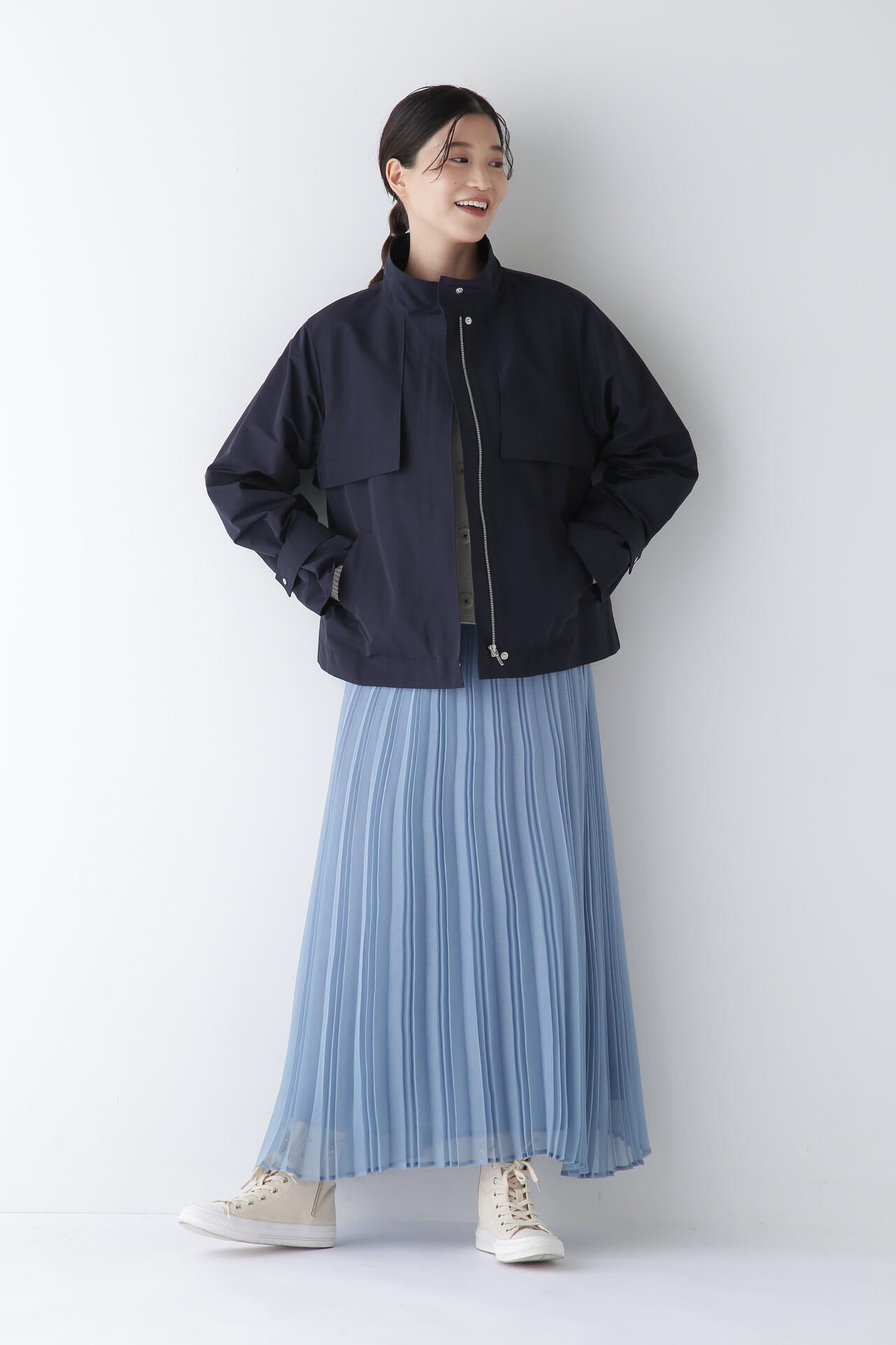 ウォーム感のある冬のニットから爽やかなTシャツまで、幅広いトップスと相性が良くロングシーズン活躍するプリーツスカートです。
