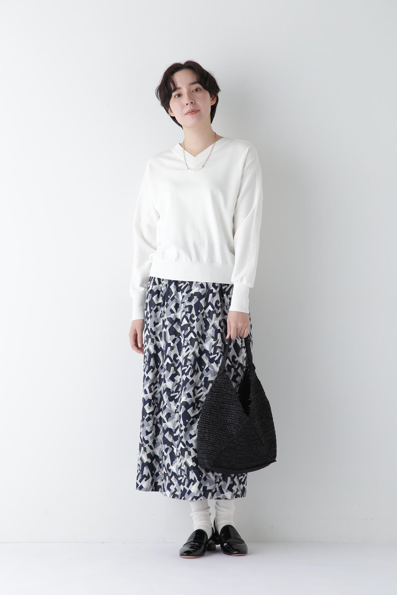 ニュアンス感のあるコクーンシルエットのプリントタックスカートです。