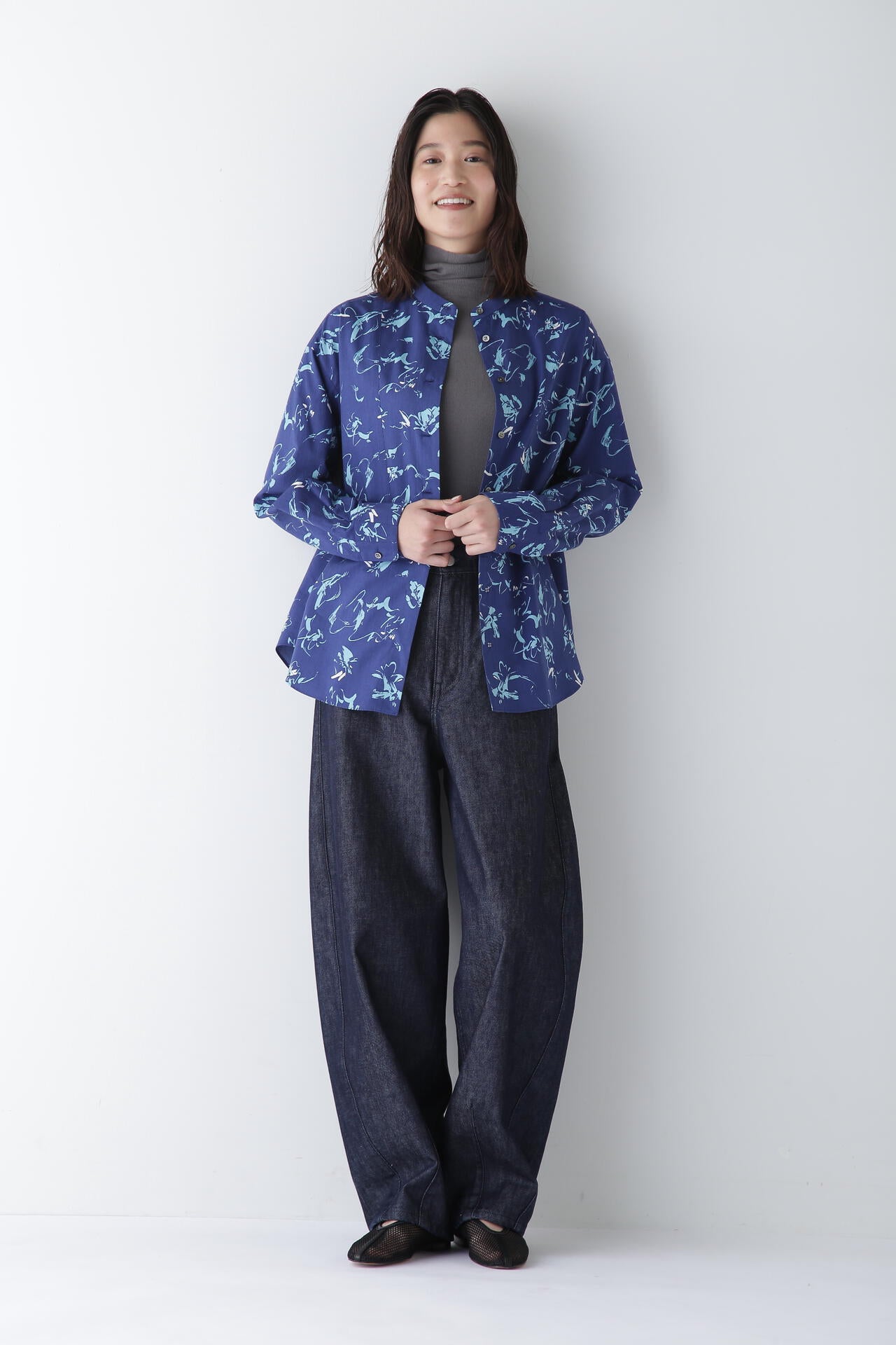 カーヴィーシルエットのシンプルなデニムです。少し前股上を浅めに作っていますが後股上は深めに作っています。