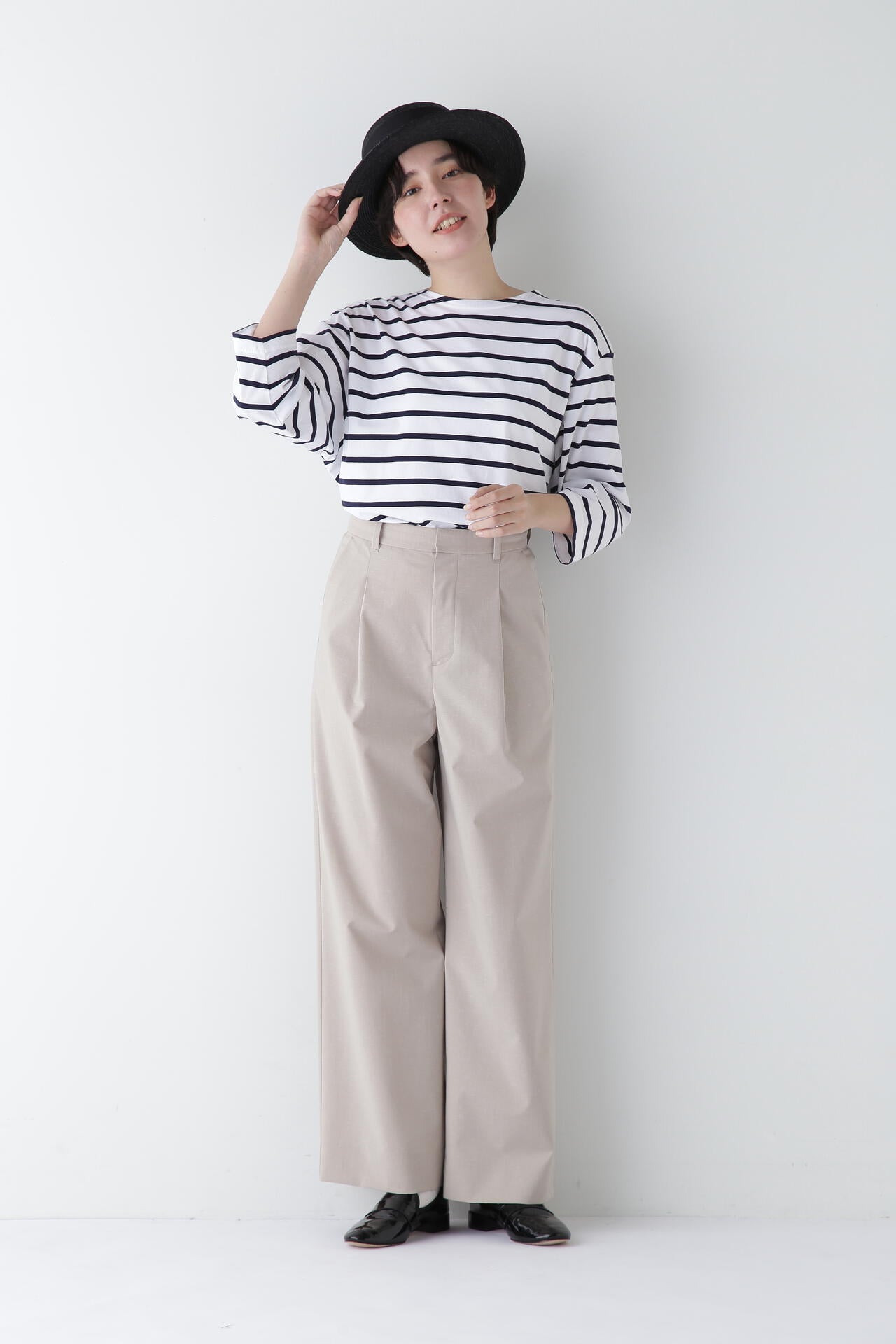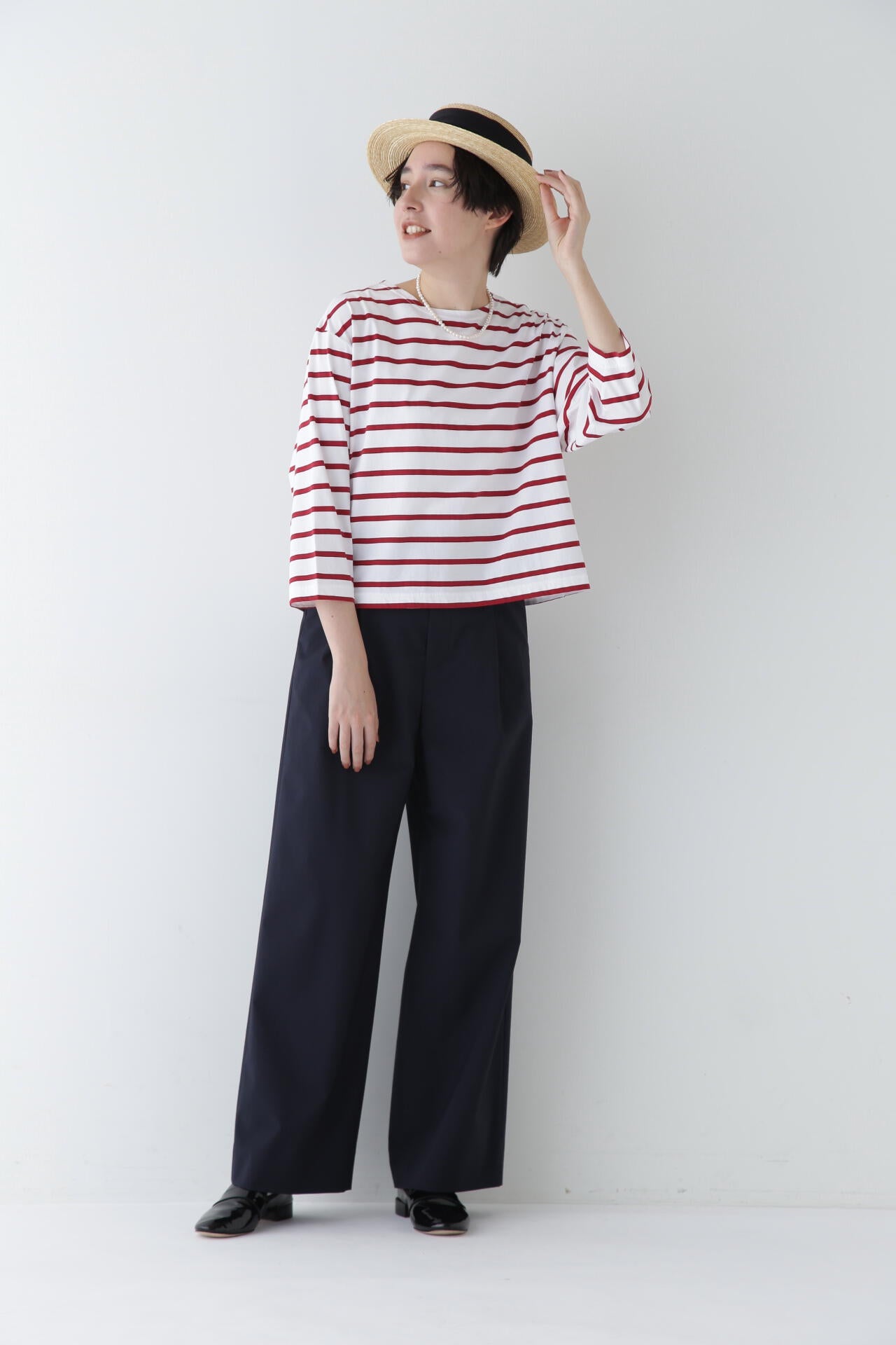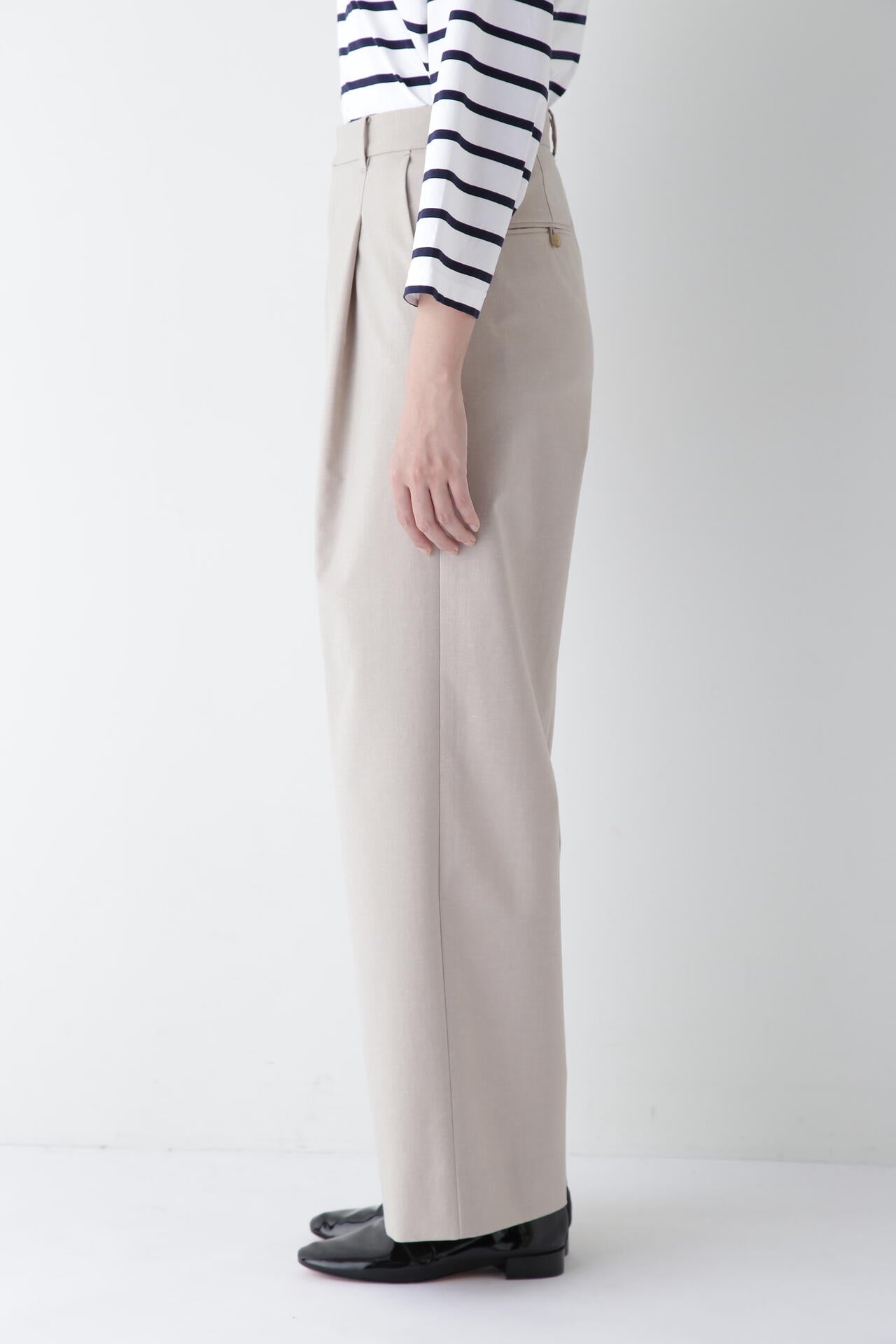 マーベルト仕様でマニッシュな着こなしも楽しめるセミワイドパンツ