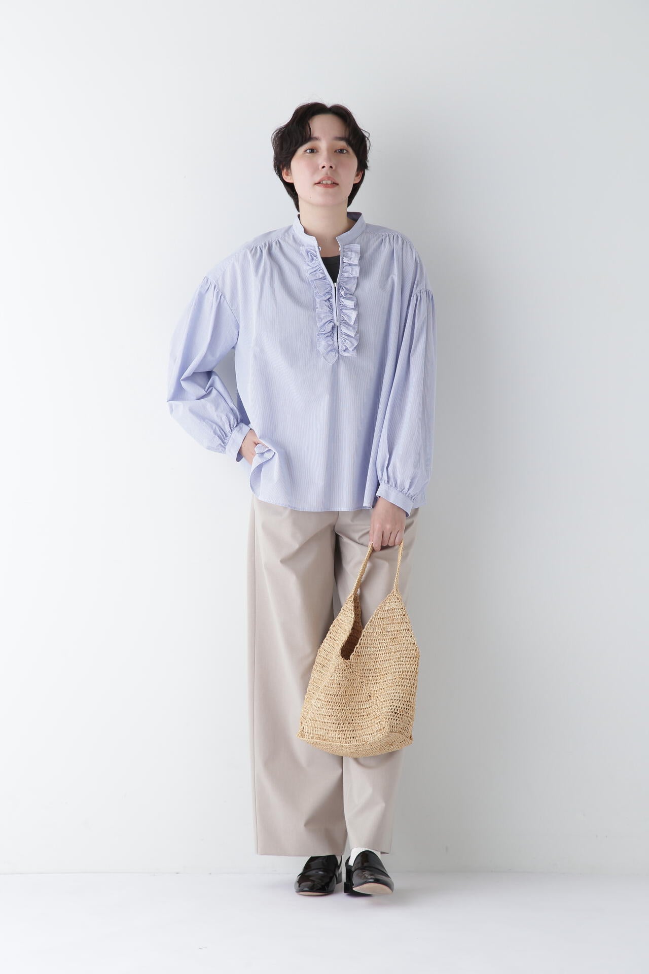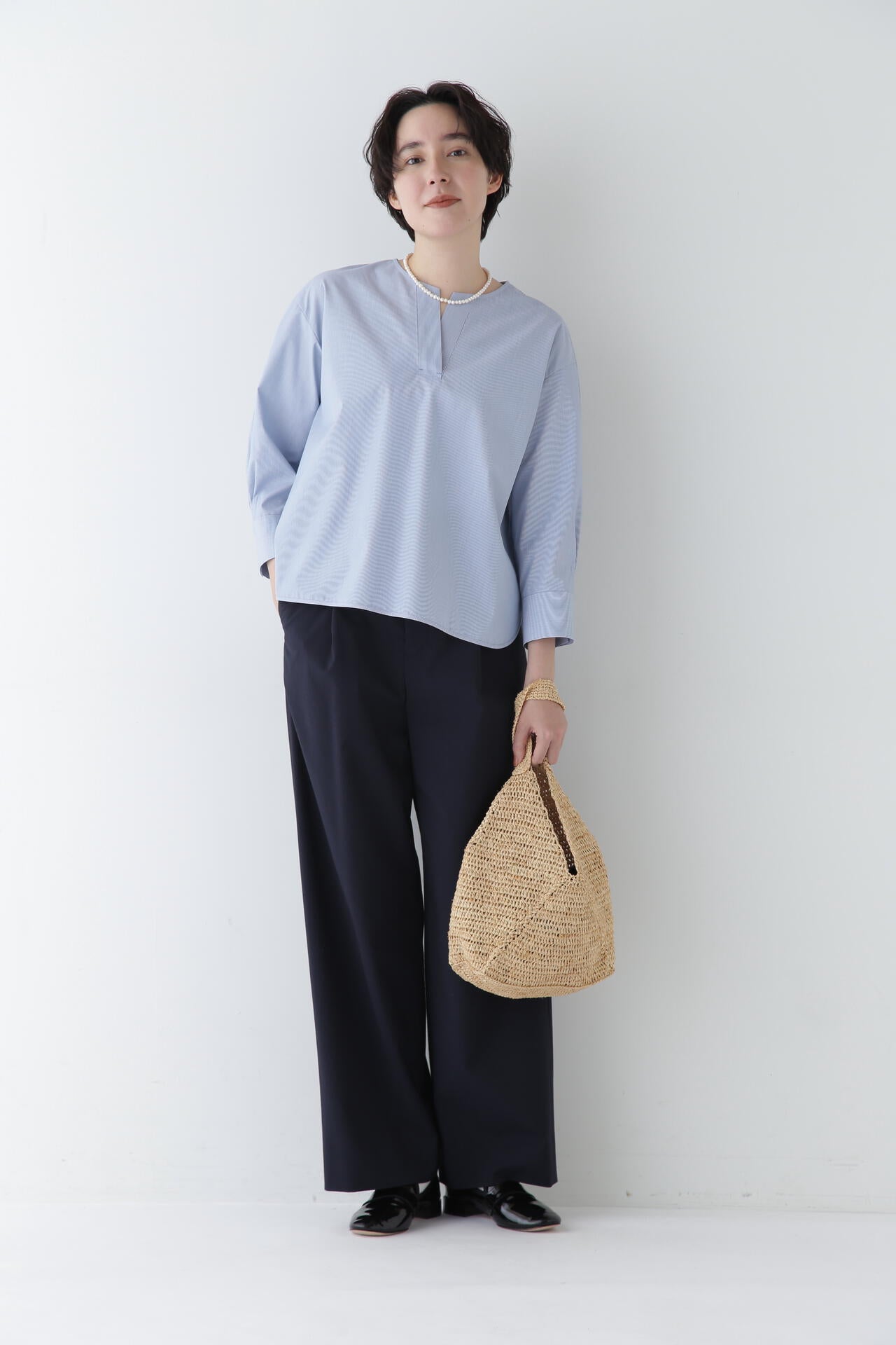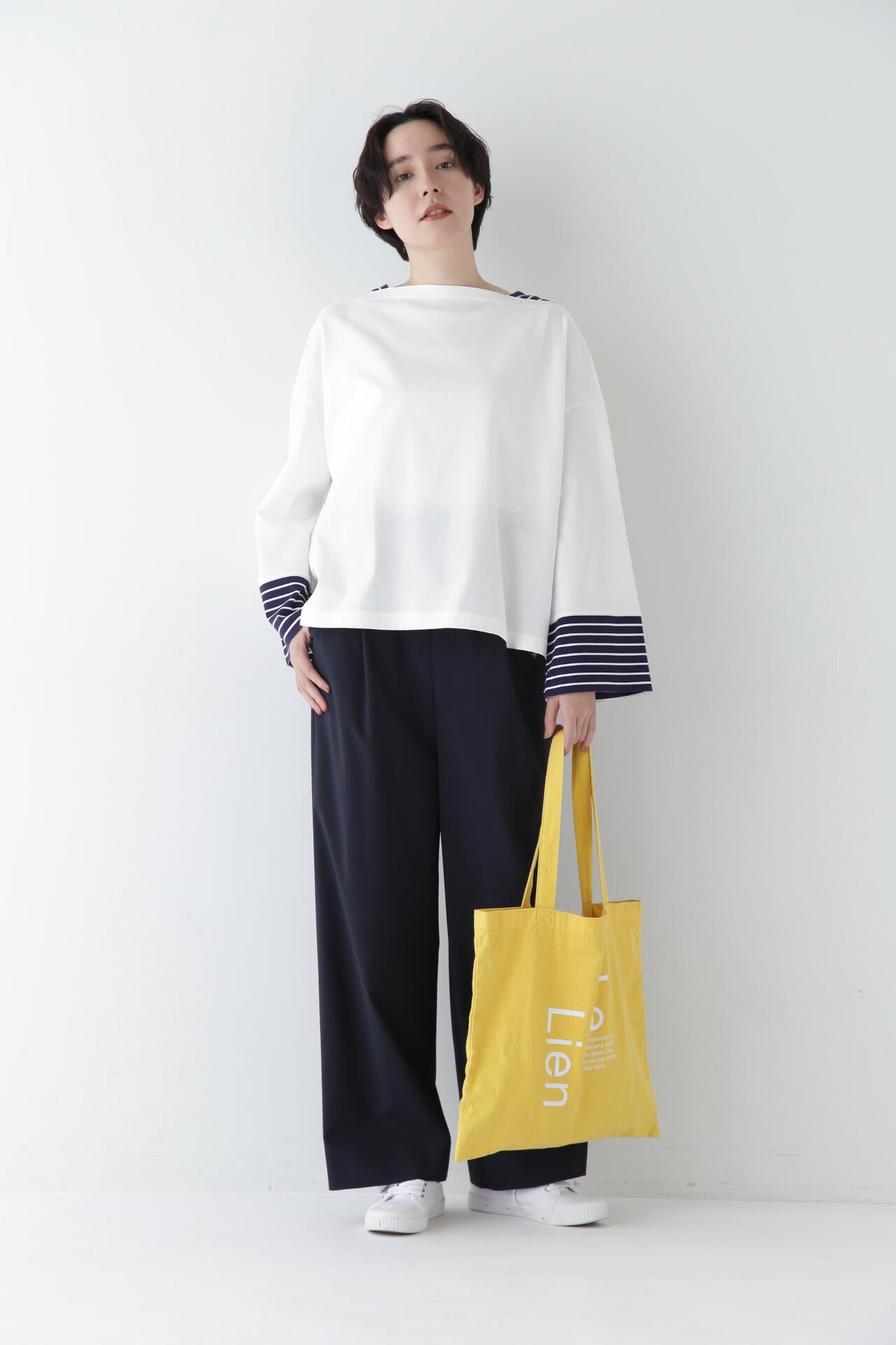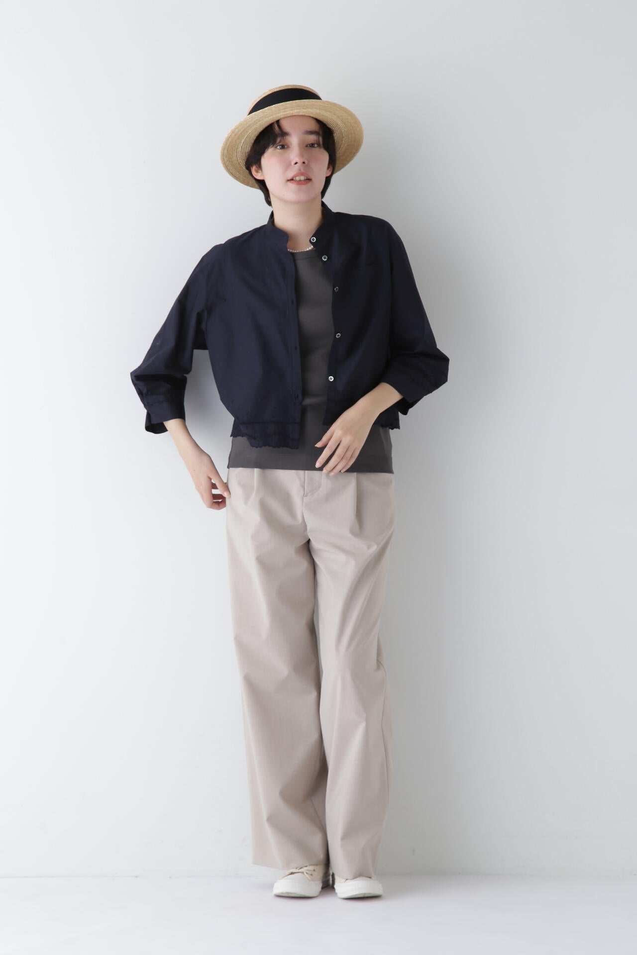 マーベルト仕様でマニッシュな着こなしも楽しめるセミワイドパンツ