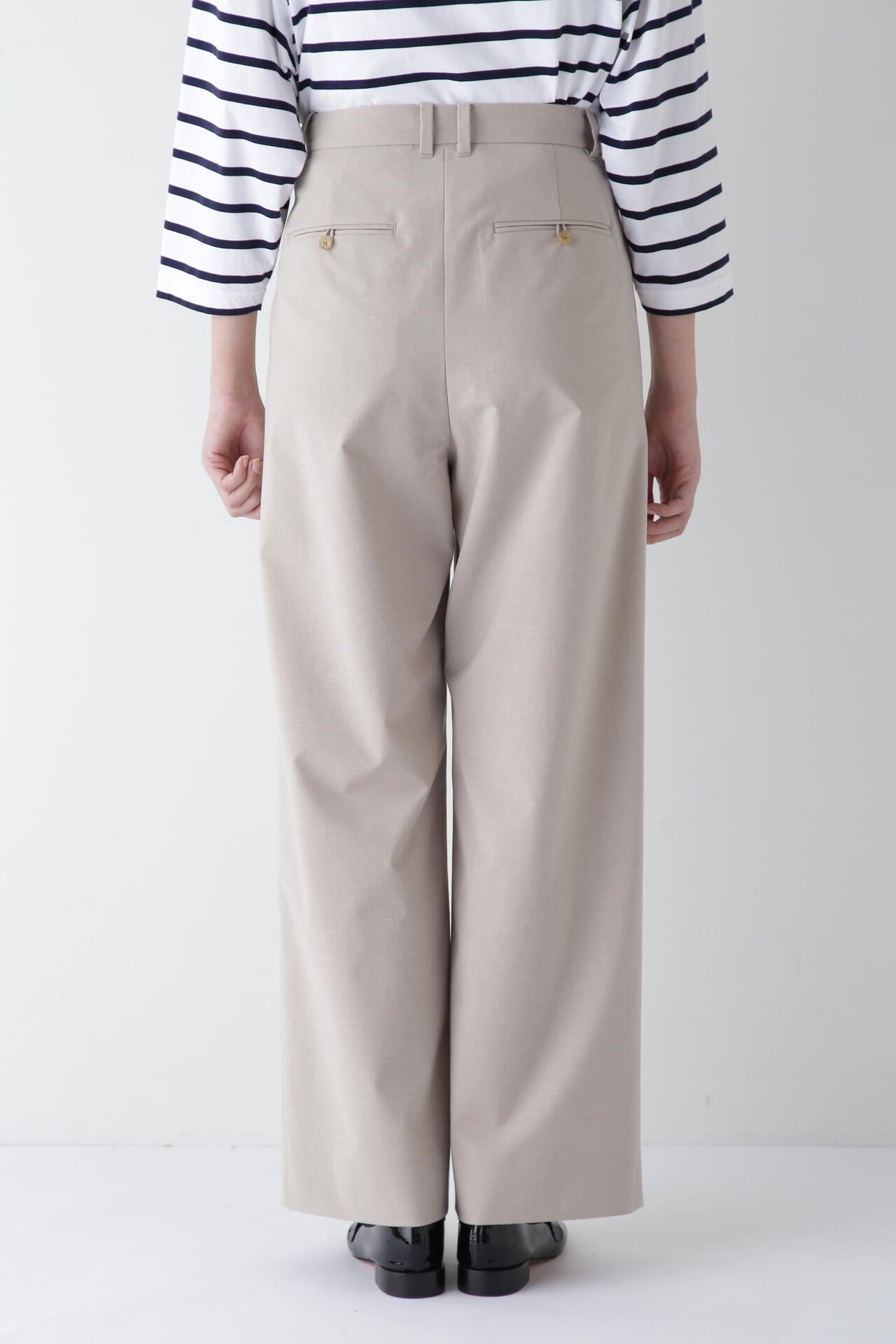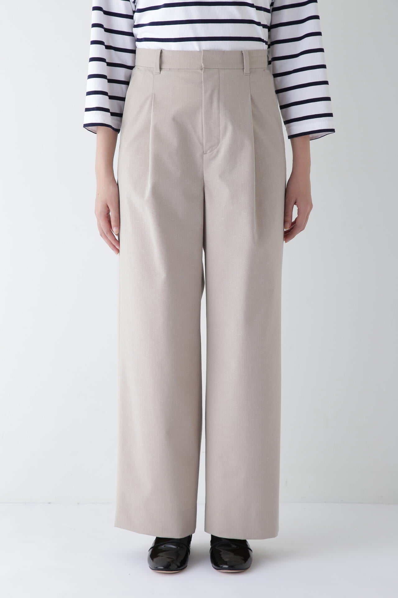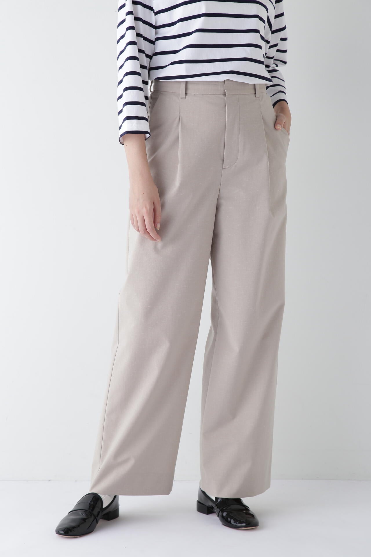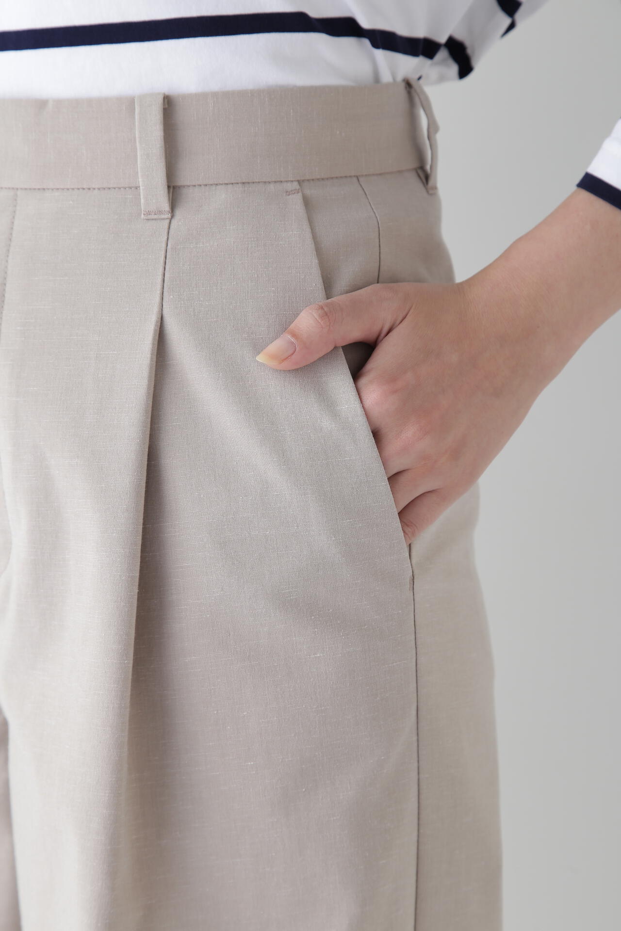 【WEB限定サイズ】Pレーヨン麻ポプリンマーベルトセミワイドパンツ