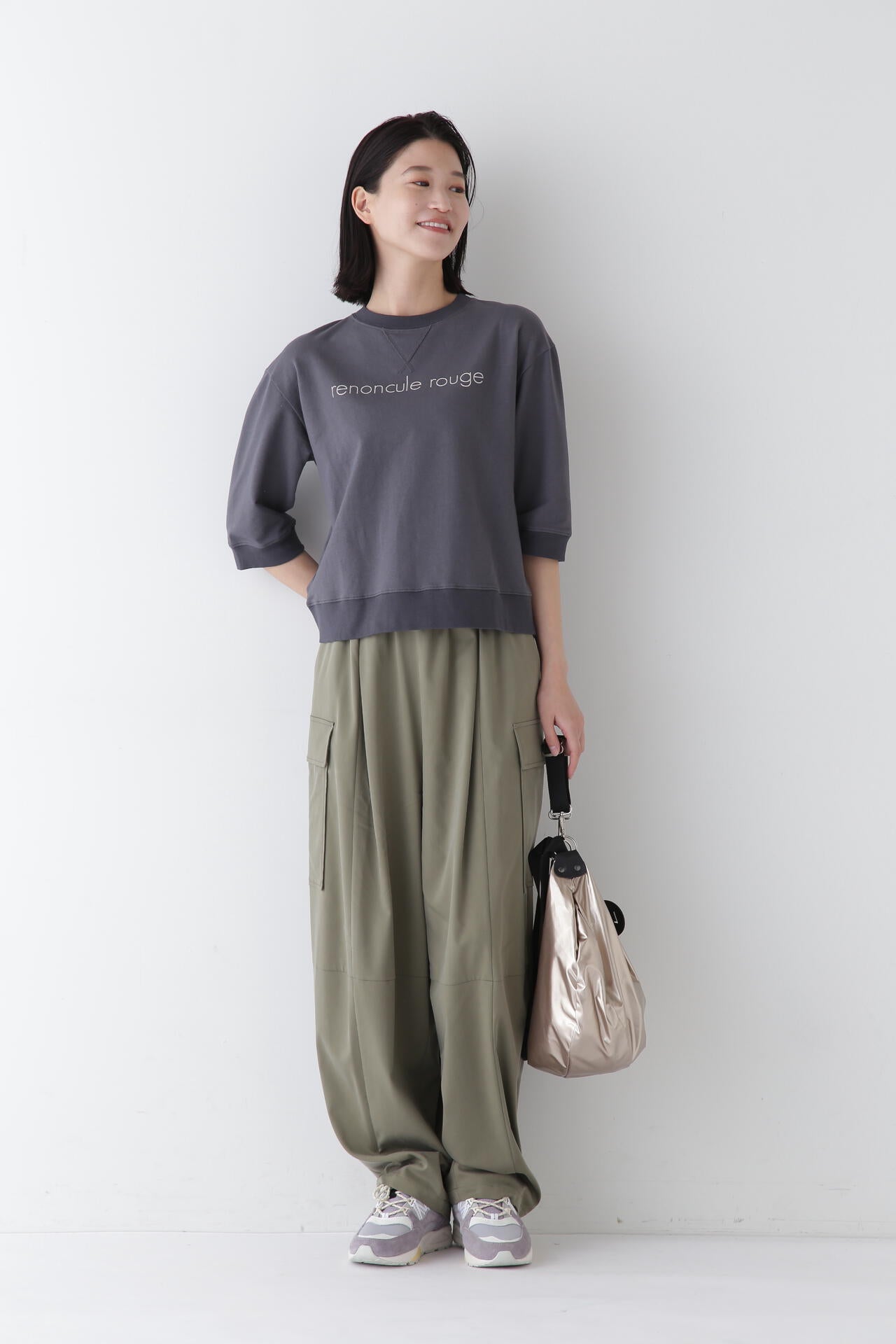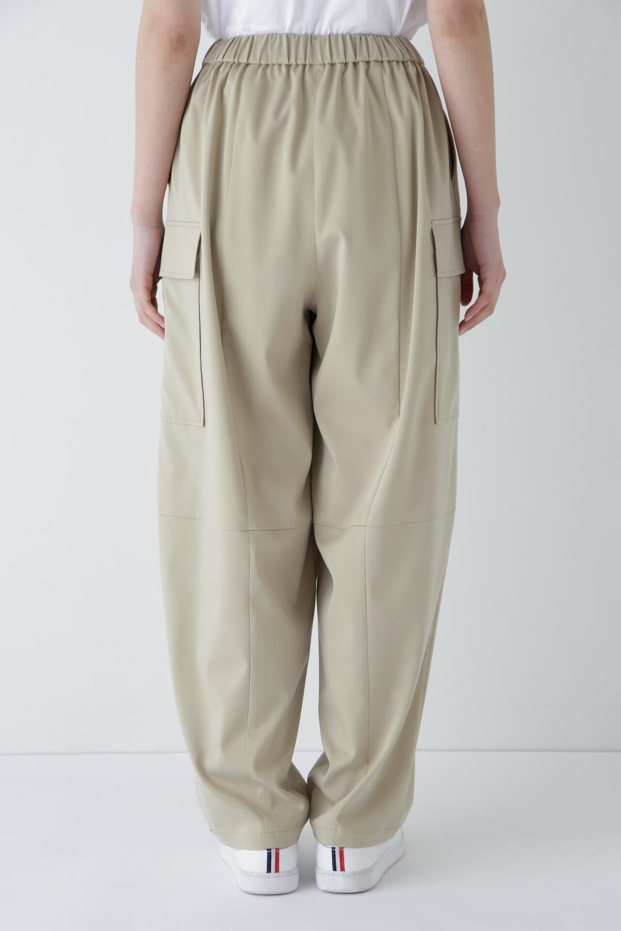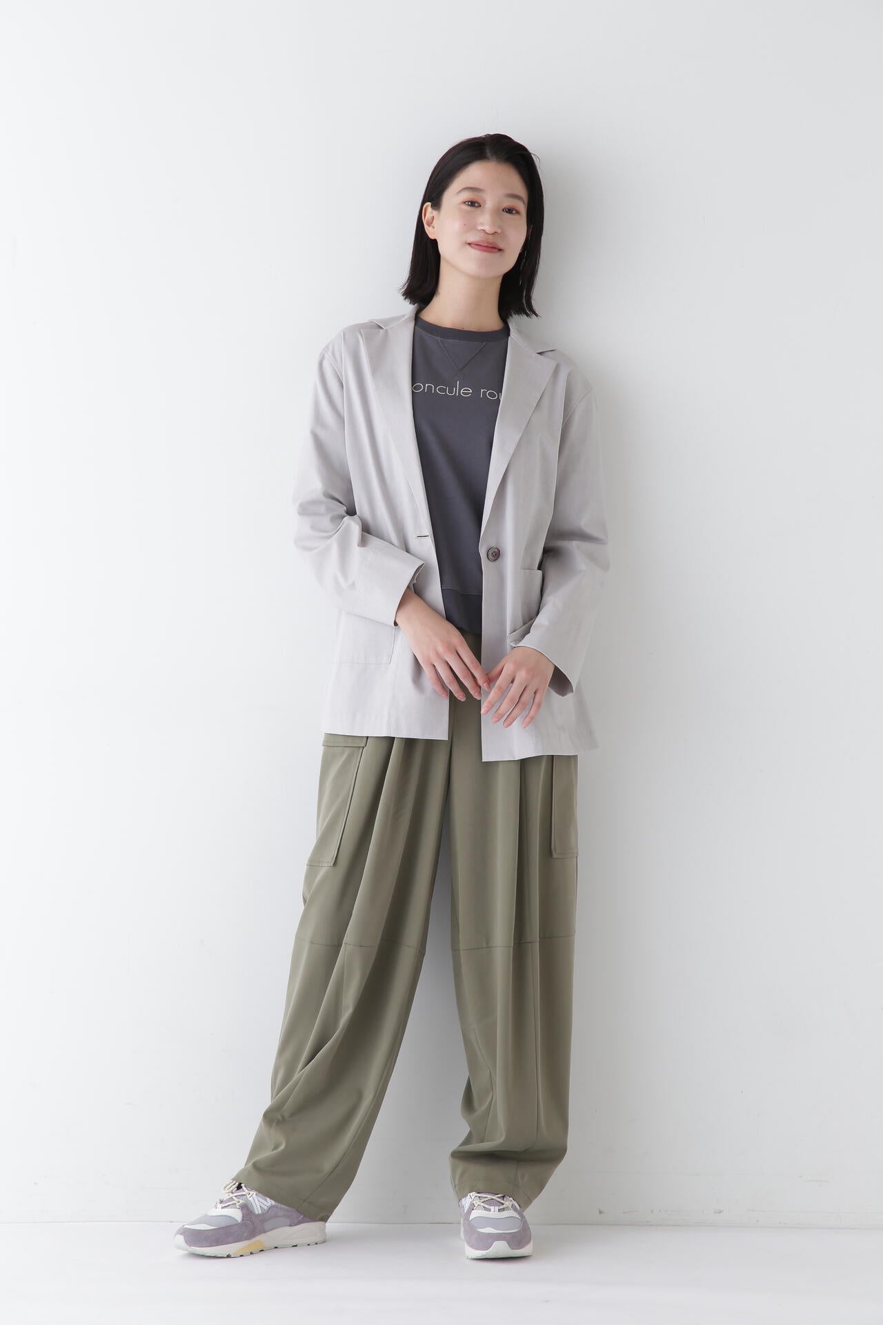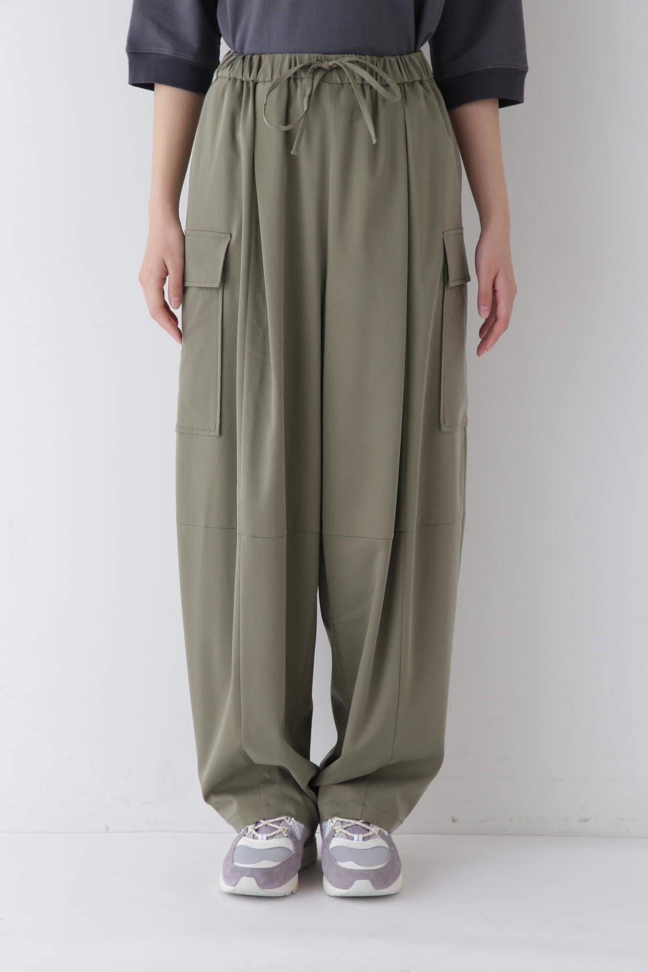 バレルシルエットにカーゴディテールを載せた新しいパンツです。素材もゆるっとしているのでイージーにこなれ感を出せる大人っぽい一枚です。